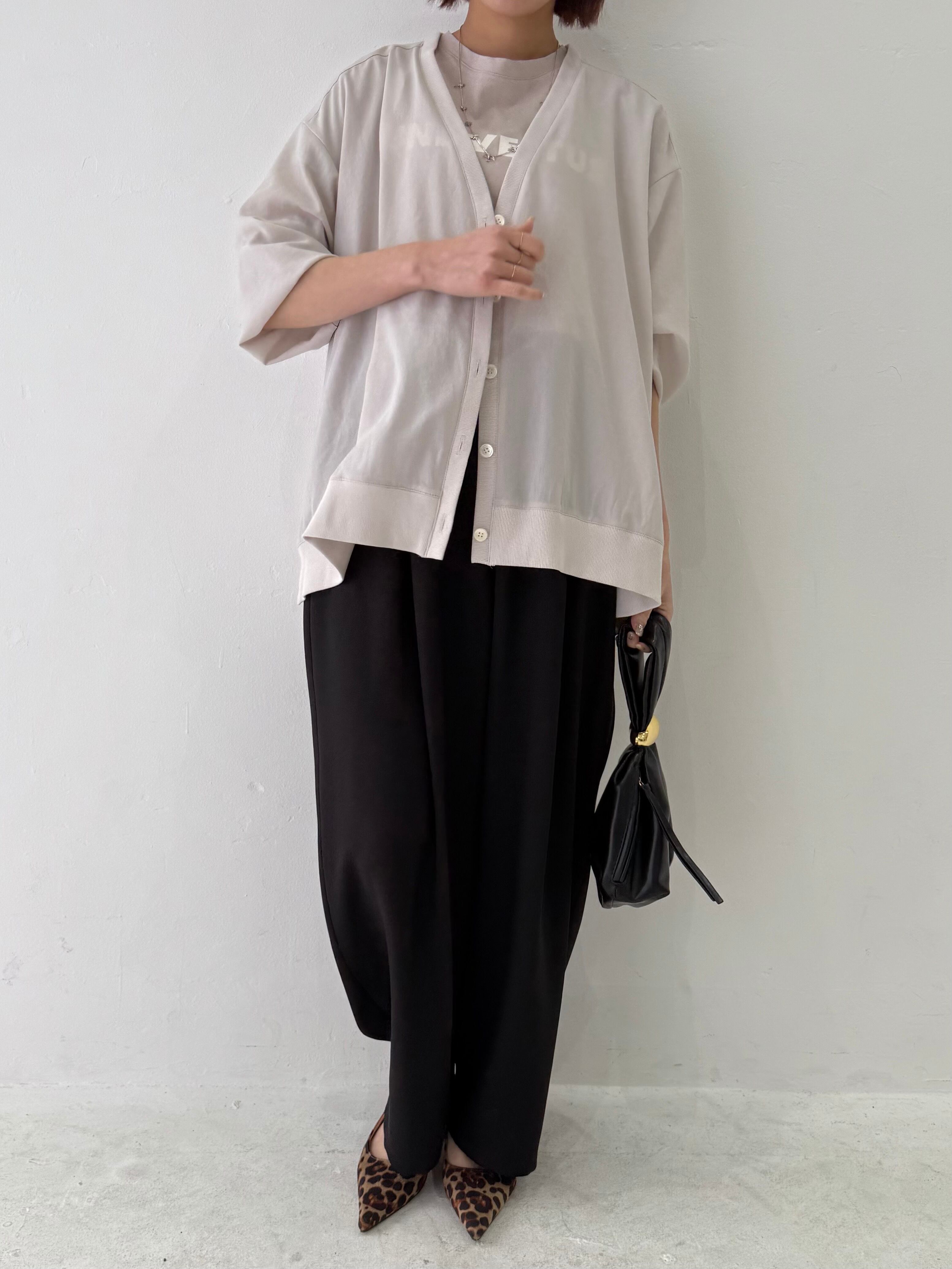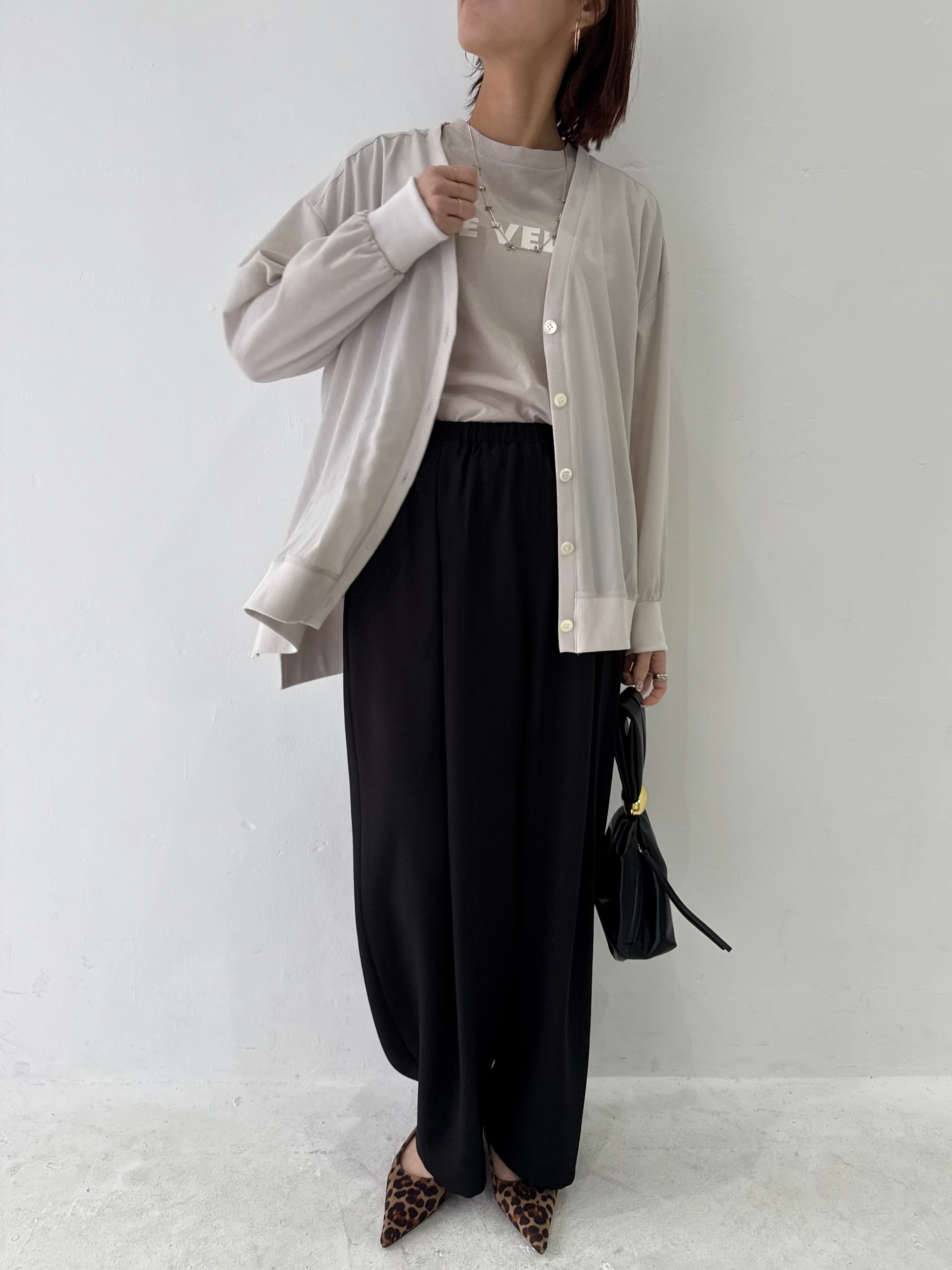 軽やかな印象のカーディガン。きめ細かな表情とソフトな⾵合いで伸縮性に優れたジョーゼット素材を使⽤。袖⼝はリブ仕様のため袖をたくし上げて着ていただくのもおすすめ!また、⻑めの着丈はヒップラインをカバーしてくれます。冷房対策にもおすすめな、ロングシーズン重宝するアイテム✨シワになりづらく持ち運びにも便利です◎