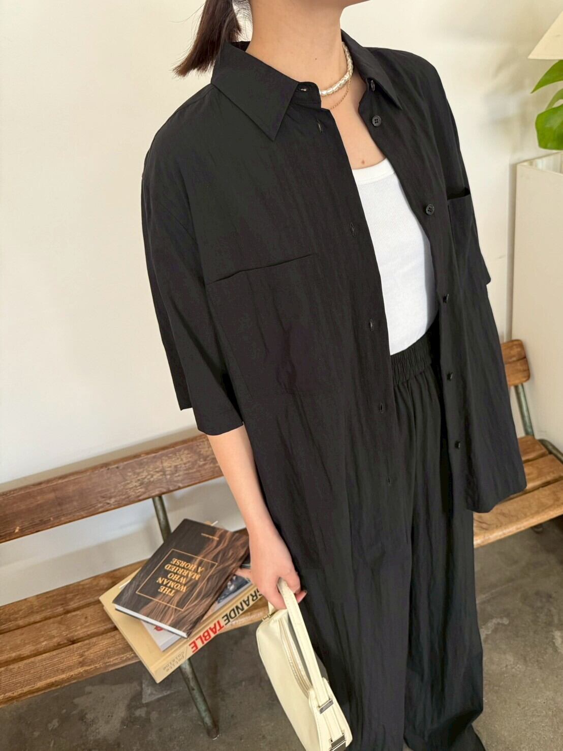 同素材のパンツと合わせれば、力を抜きながらもセンスが光る、上品なセットアップスタイルに✨一枚でサマになる、使える大人シャツです。