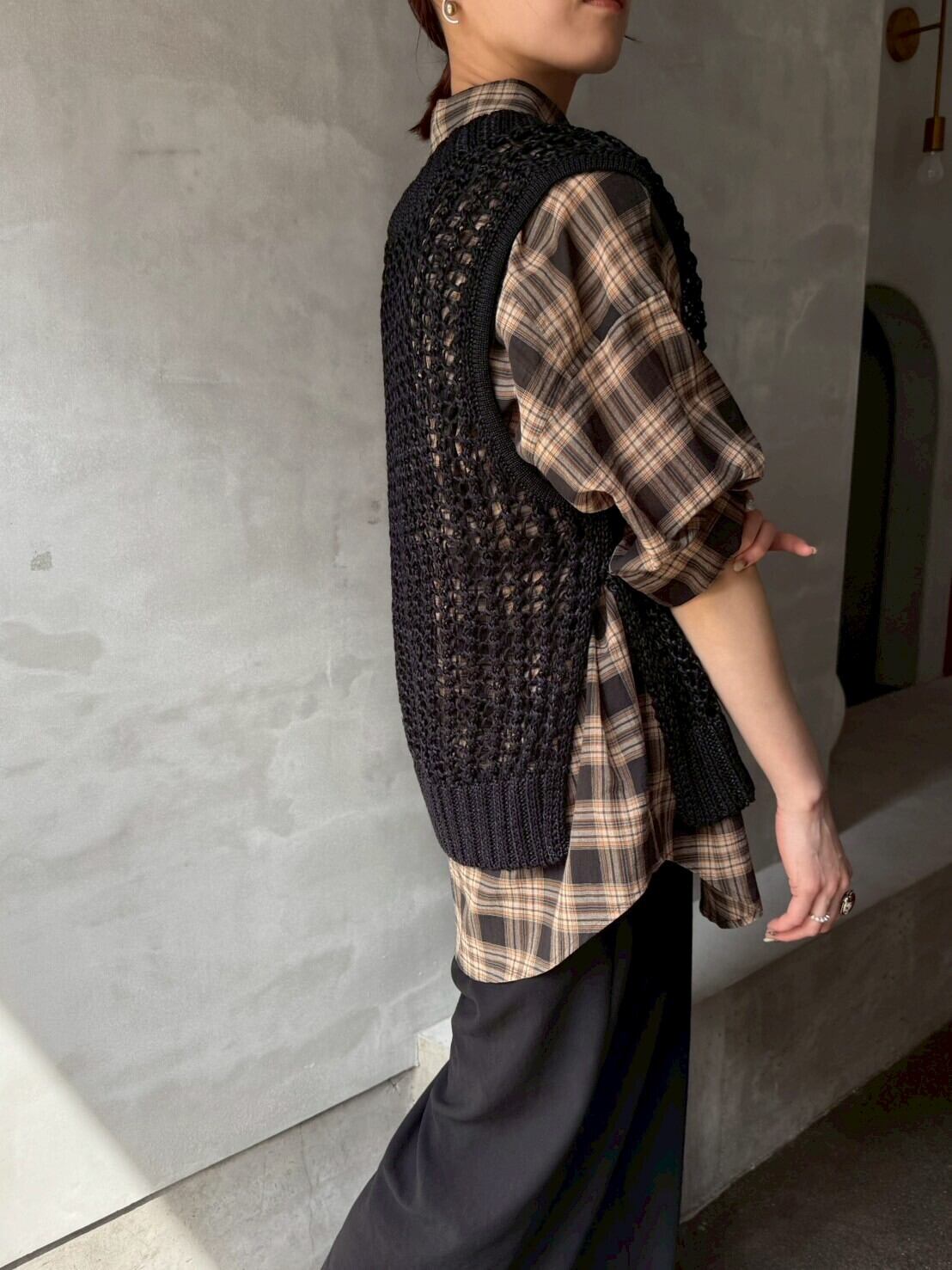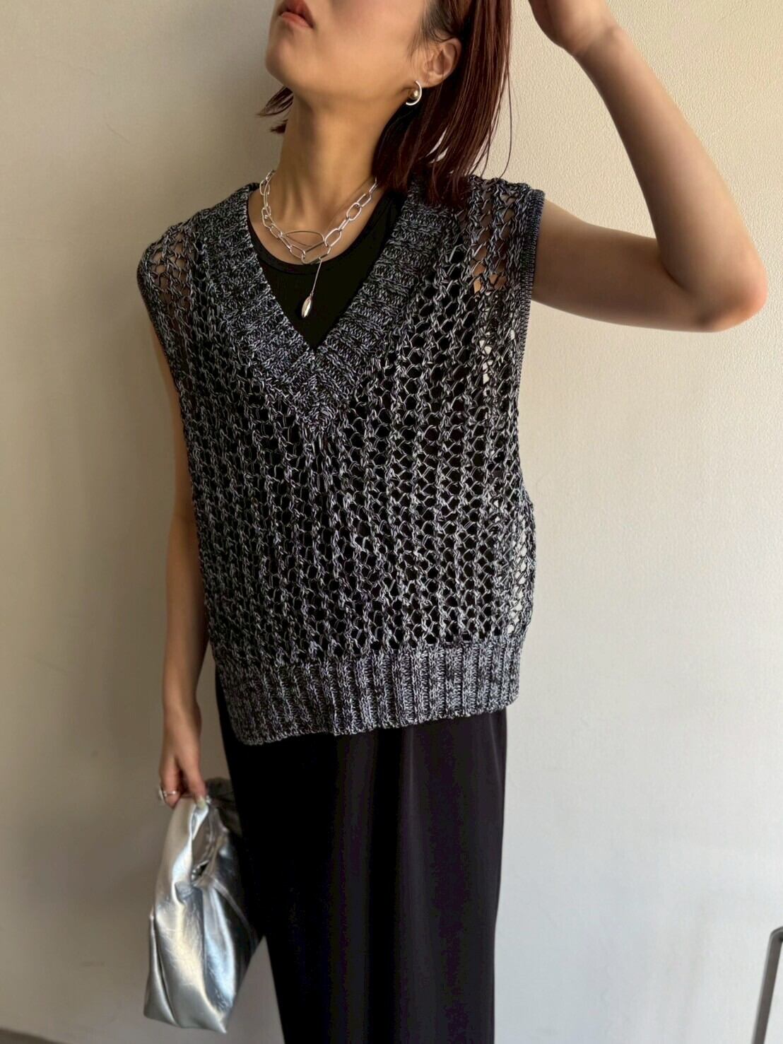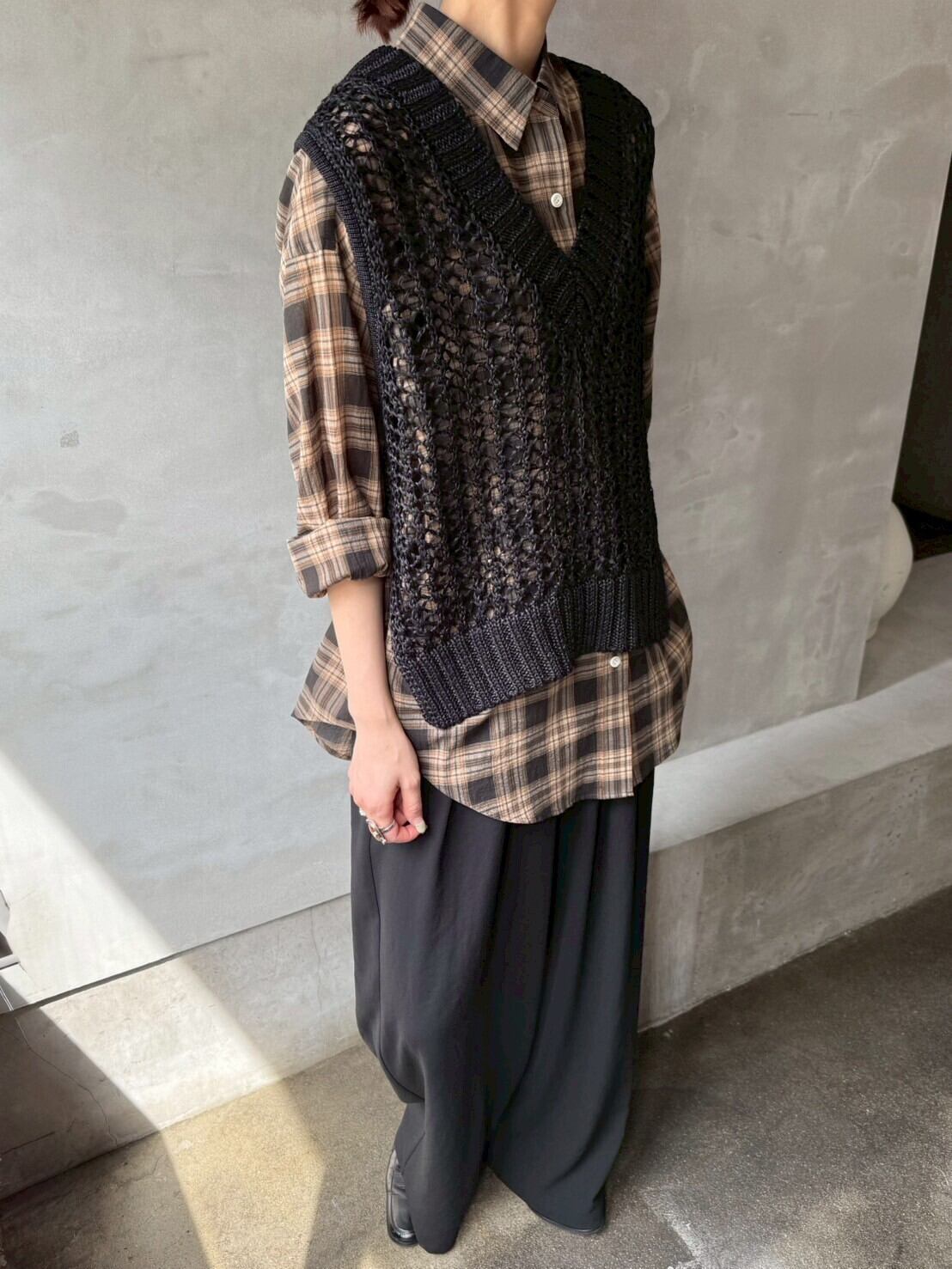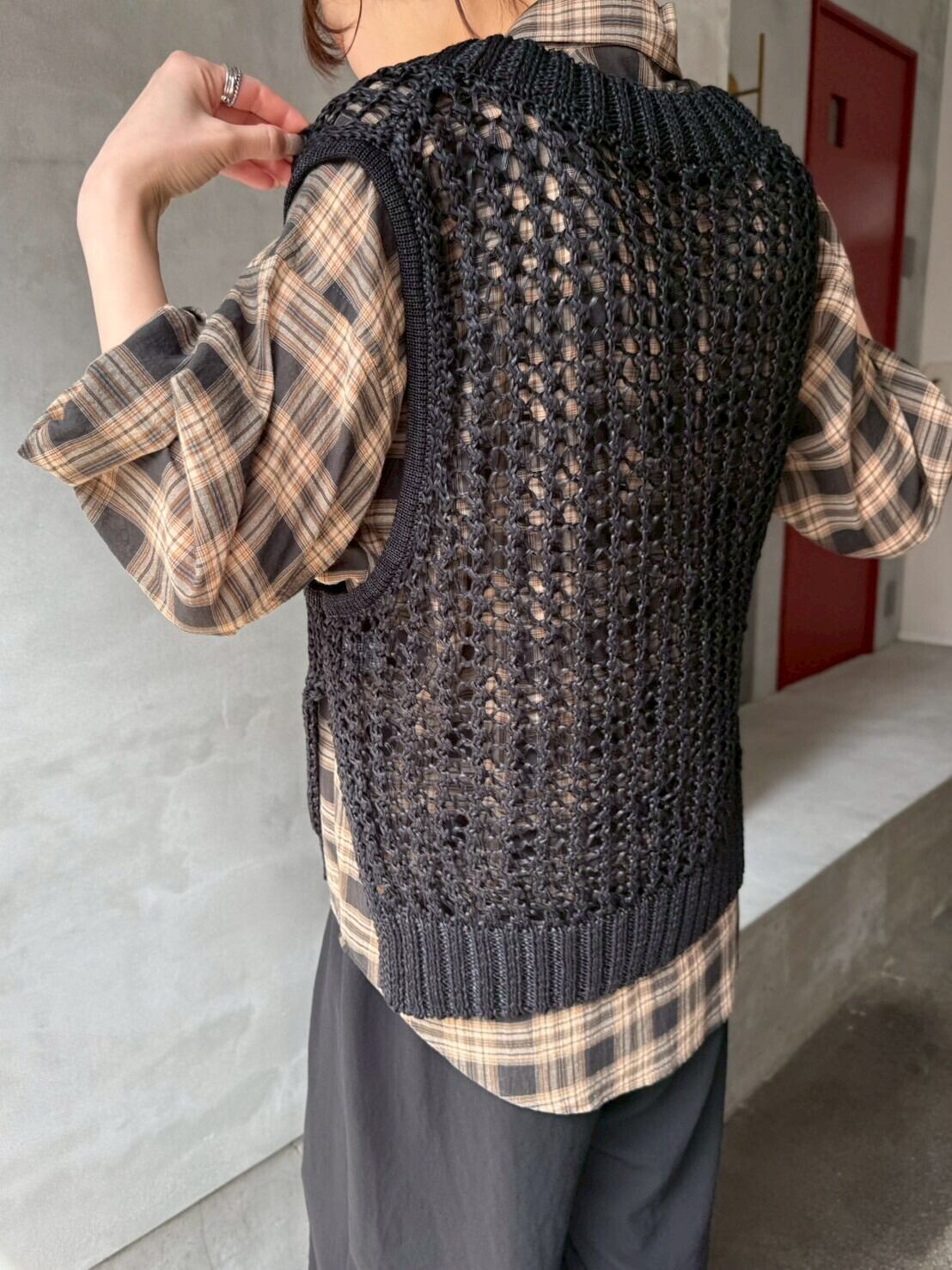 ざっくりとした風合いが魅力のアイレットニットは、単調じゃない、遊び心のある編み地でこなれた雰囲気に✧いつものシャツやワンピースにレイヤードするだけで、グッとスタイリングが引き締まる“洒落感”のある一枚。