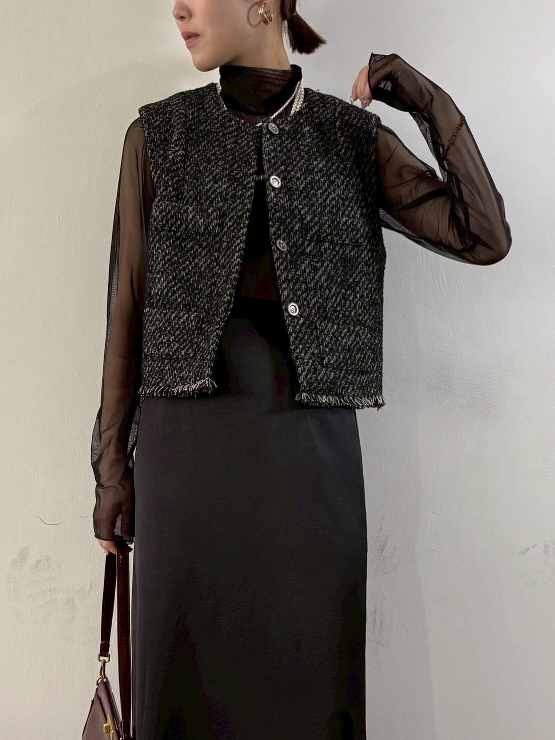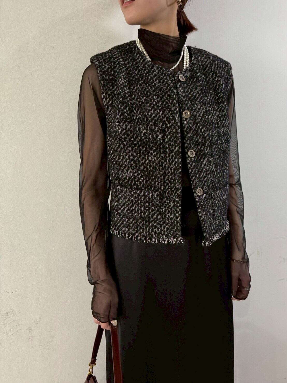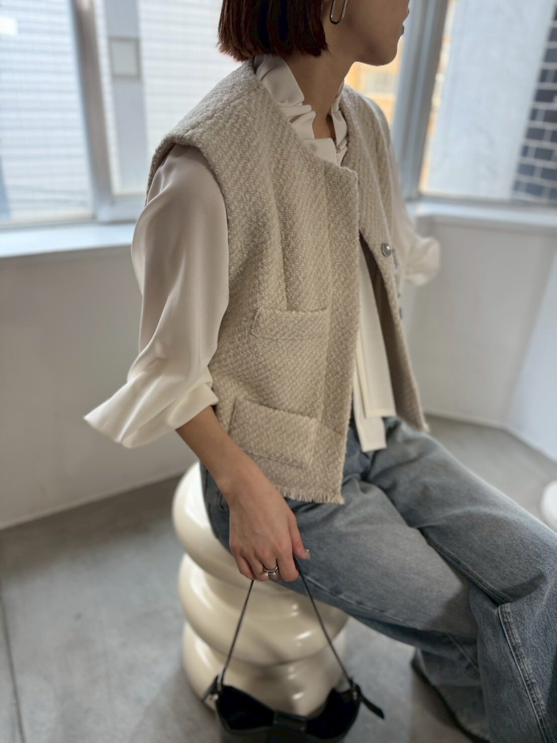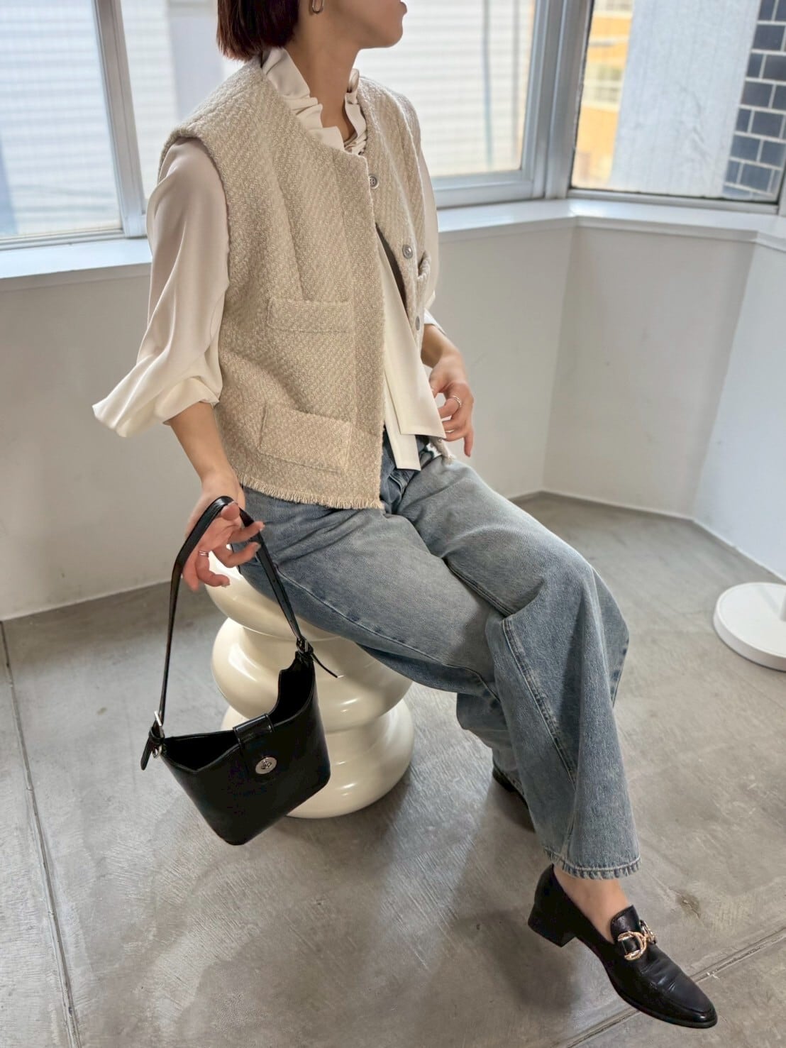 程よいサイズ感だから、ロンTやボリュームスリーブブラウスに重ねて秋のレイヤードにぴったり♪