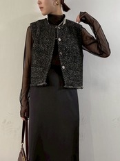 太い糸×細い糸が織りなす立体感のあるツイード素材を使用。