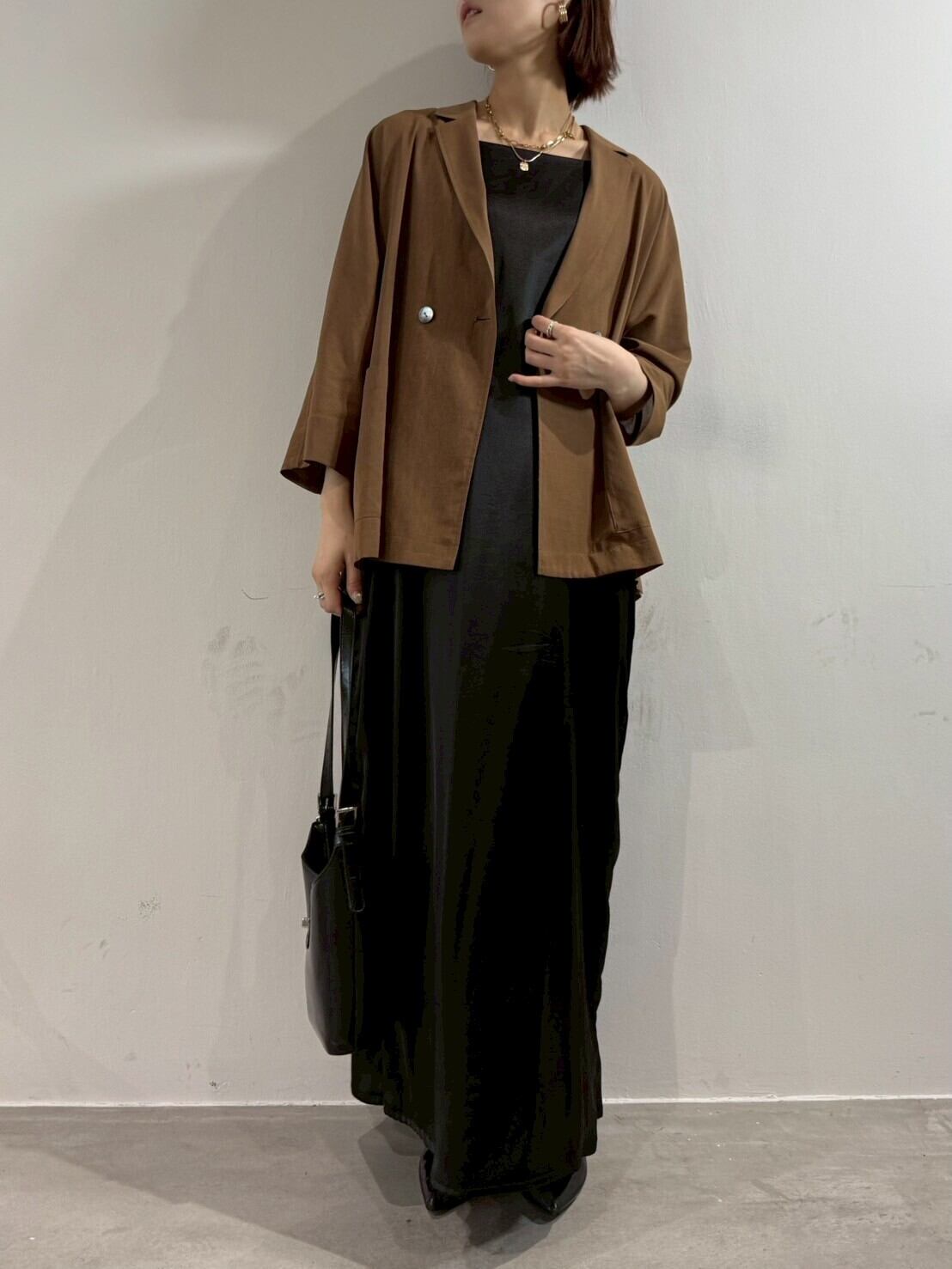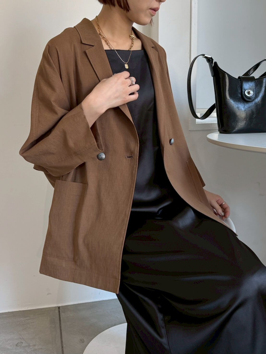 ゆったりしたシルエットなのに落ち感があるから、着るとすっきり華奢見え。ドライタッチのさらっとした肌触りで、長時間着ても快適です◎