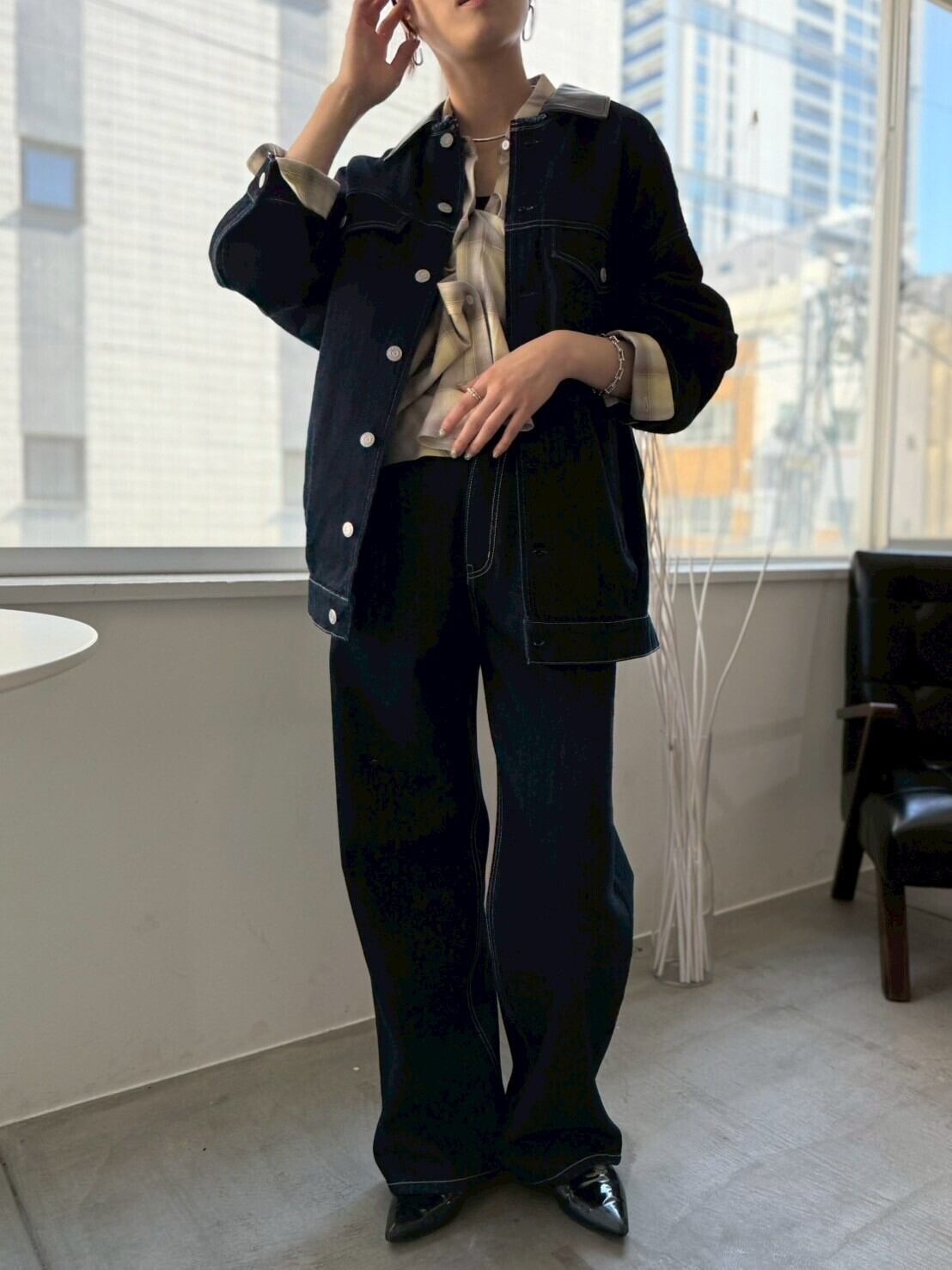 肩の力を抜いた大人カジュアルスタイルにも、ちょっとモードにシンプルにまとめたい日にもマッチ。デニムジャケットはカジュアルになりがち…と思いきや大人っぽく着こなせる、万能ジャケットです。