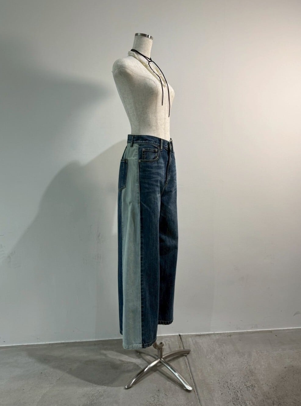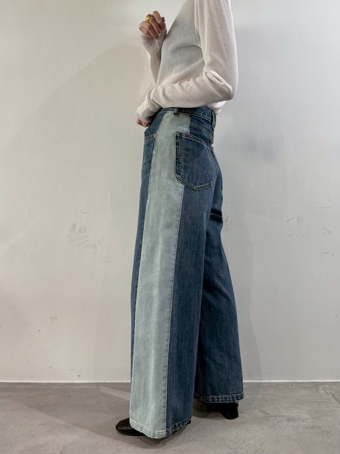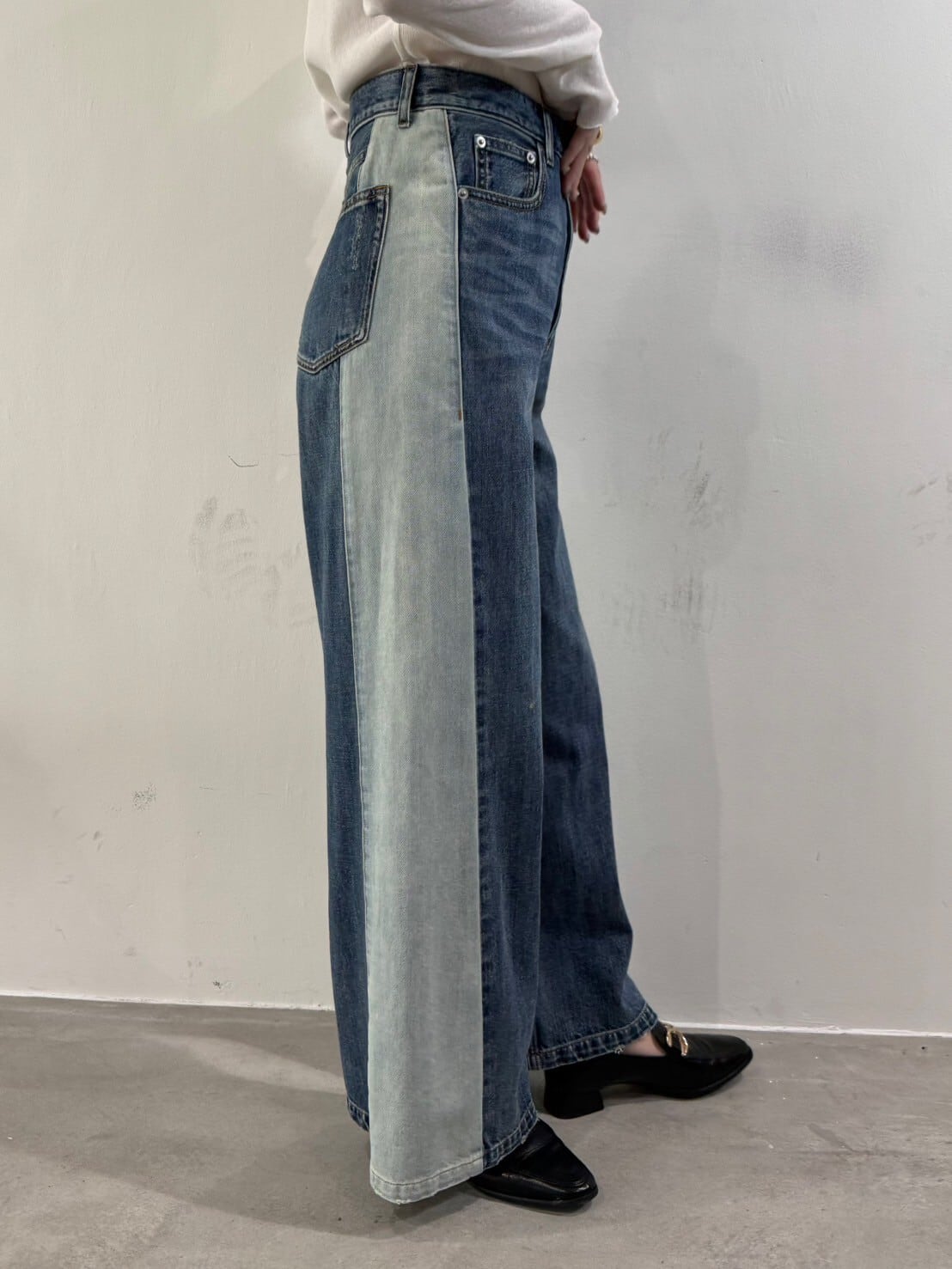 ヴィンテージライクな風合いと、一点物のような存在感が魅力のワイドデニムパンツ。腰まわりはすっきり、裾に向かって広がるシルエットで、履くだけでこなれた印象に。