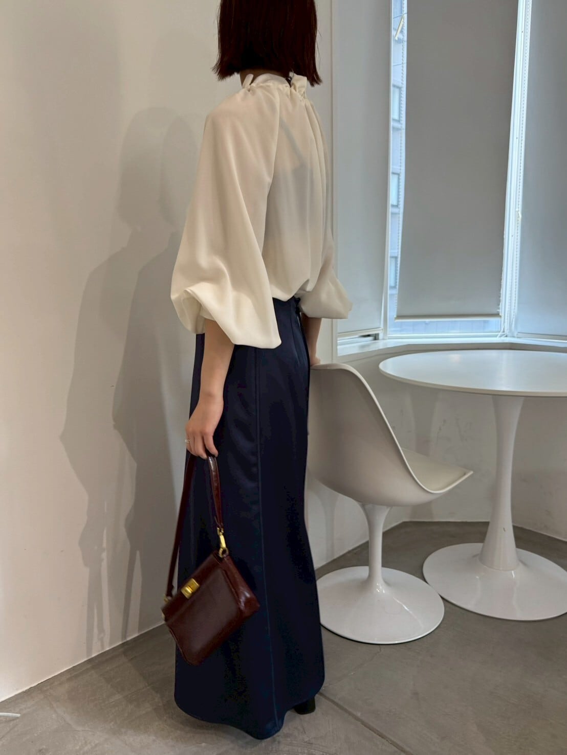 ドライタッチでドレープ性に優れた上質なアセテートオーガンジー素材は、シワになりにくくイージーケアなのも嬉しいポイント◎