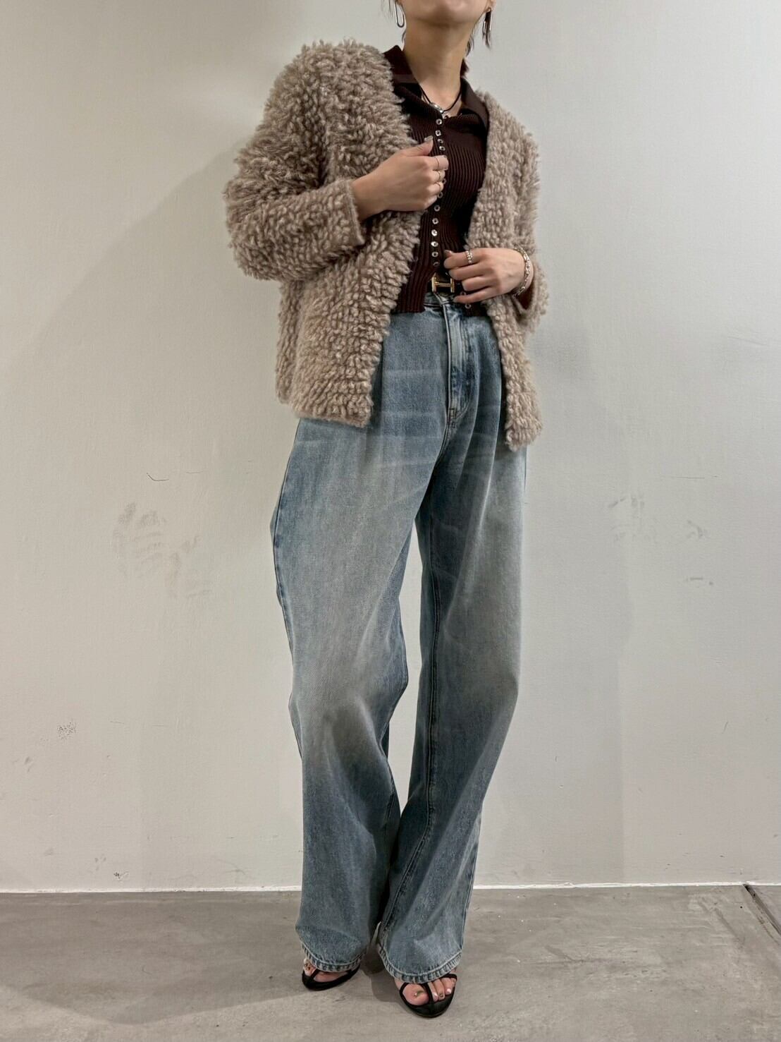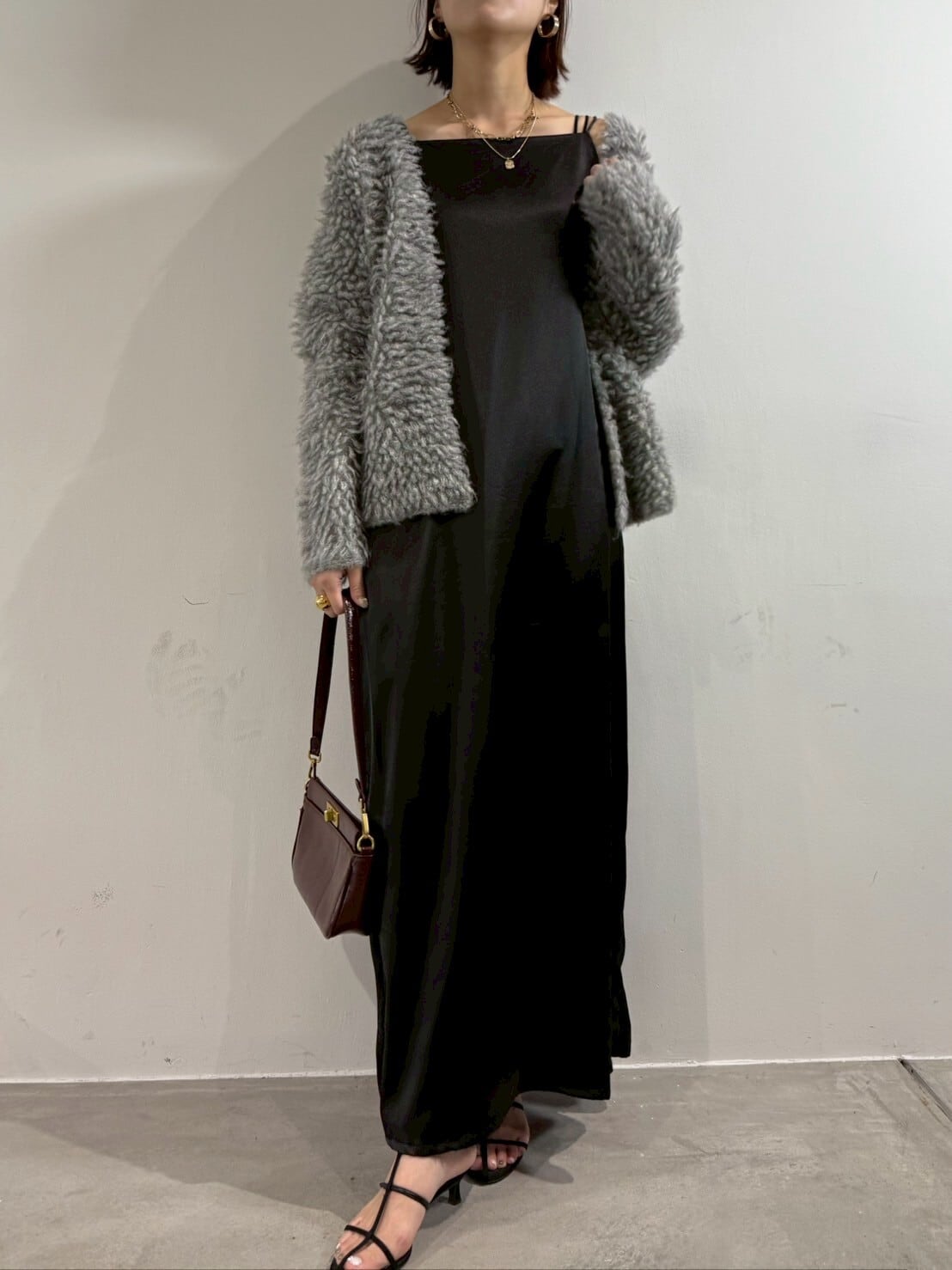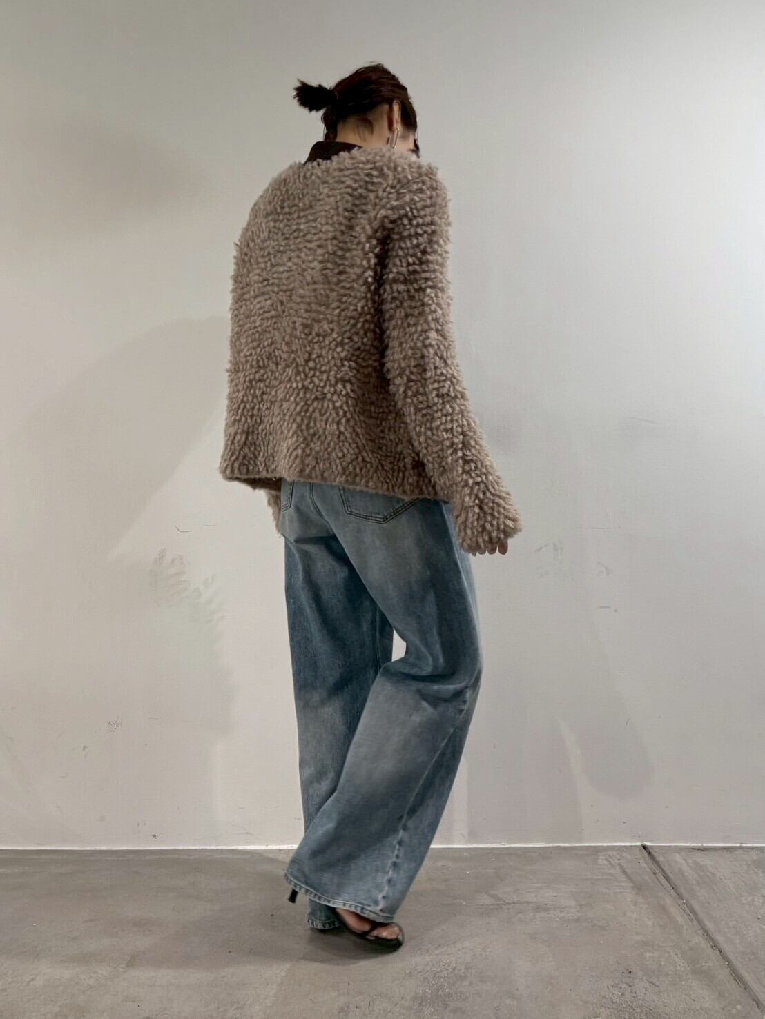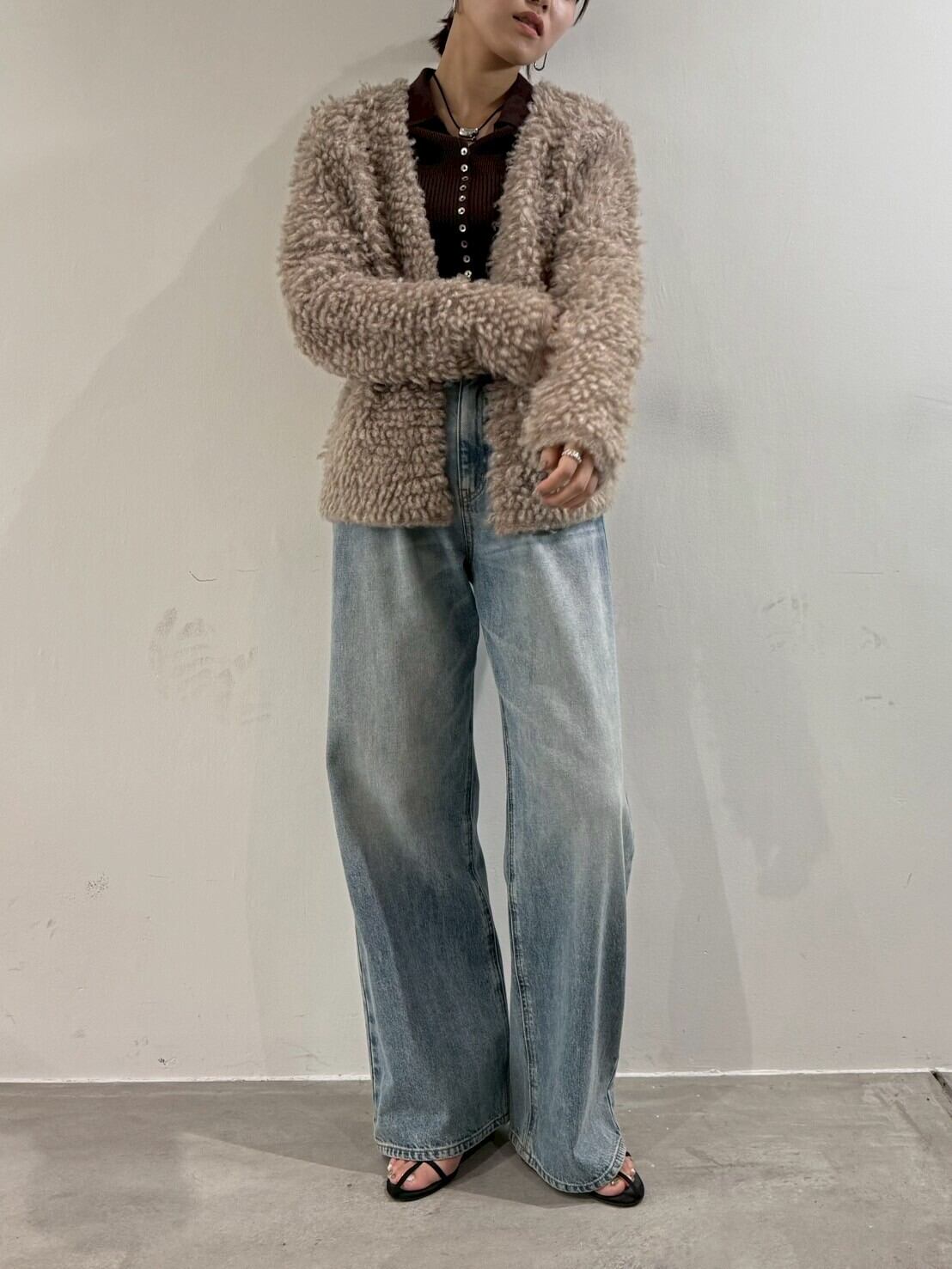 柔らかな糸をループ状に編み立てた、軽やかでふんわりしたタッチのカーディガン。さっと羽織るだけで存在感があり、着こなしのアクセントになる一枚です。