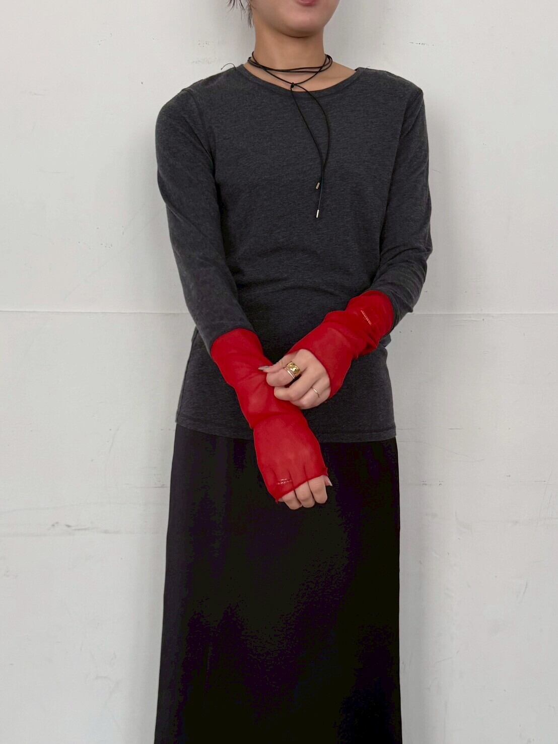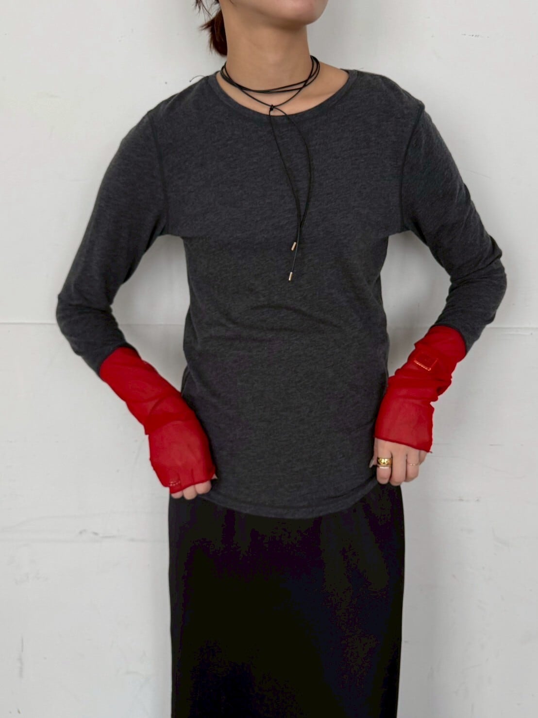 ⻑めの配色チュールがくしゅくしゅとたまるのもポイント。袖口だけをスウェットなどの下から出すレイヤードもオススメ!