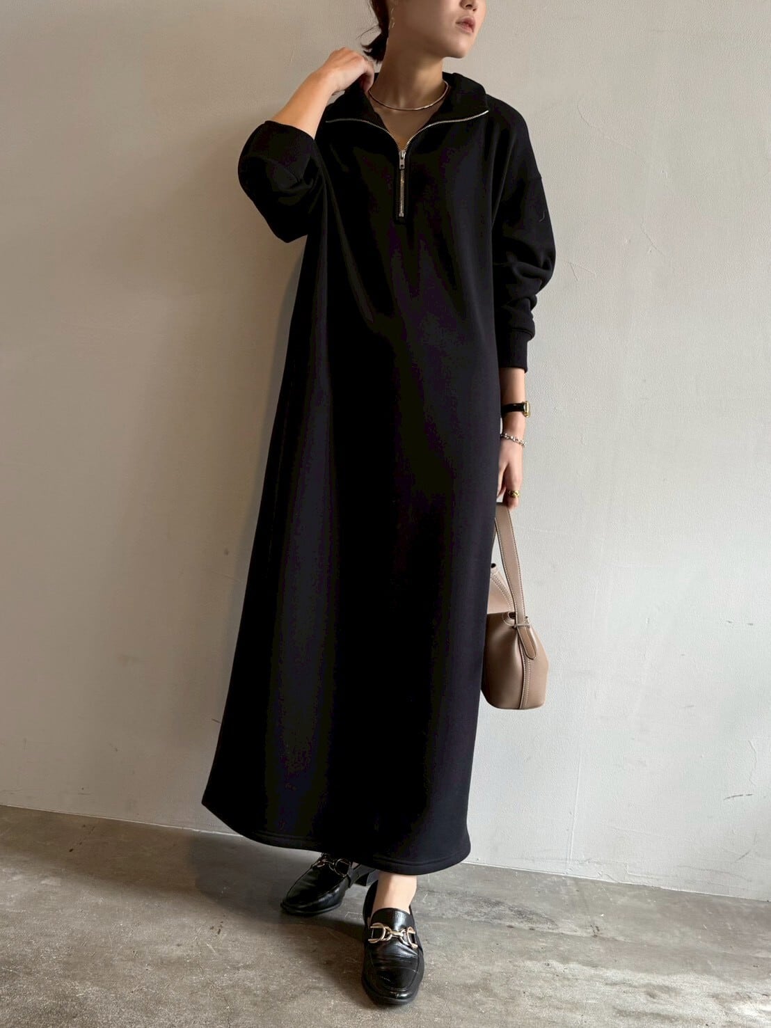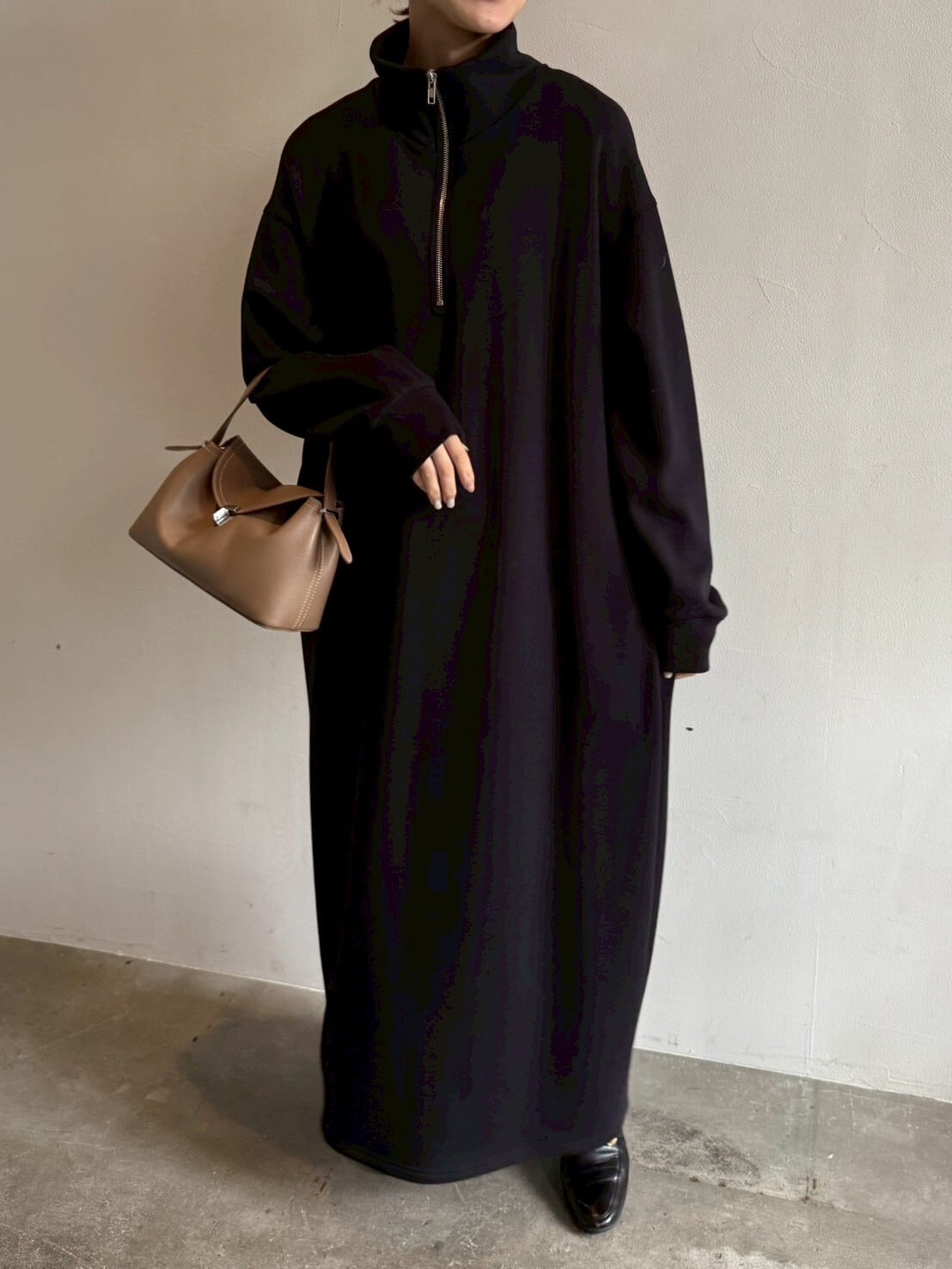 毛布みたいにやさしい裏面と、心までほどける軽さ。そんなFAMMETを使用した ハーフジップワンピース は、シンプルなのにさりげなく雰囲気があって、袖を通すだけで “整う” 一枚。