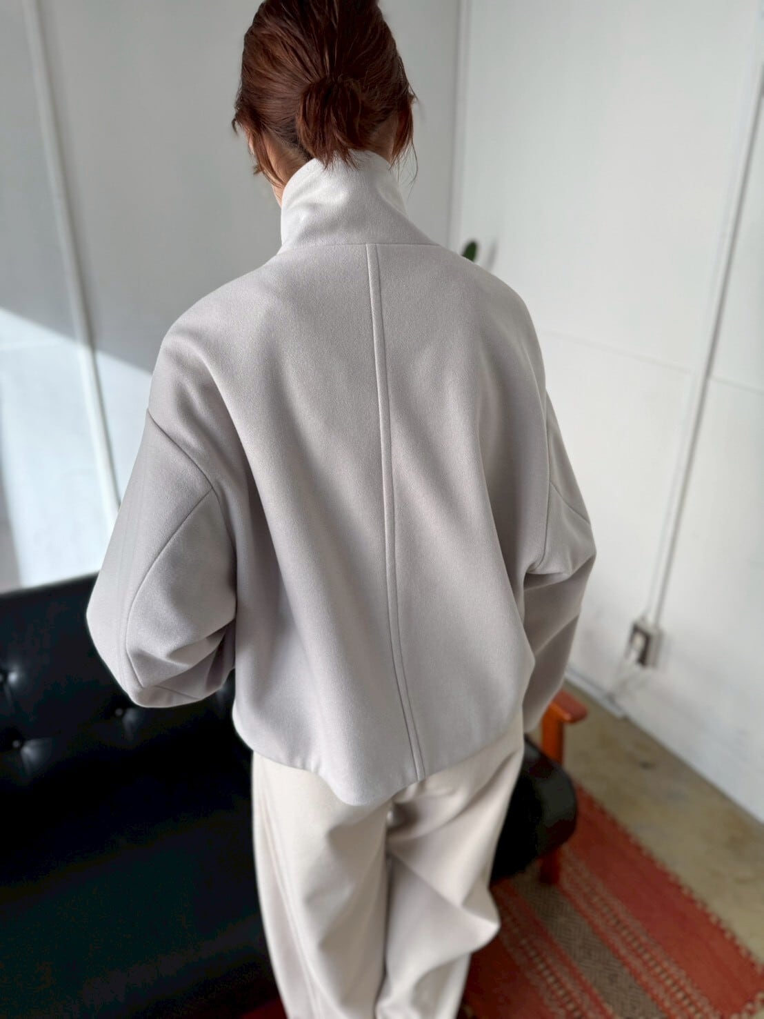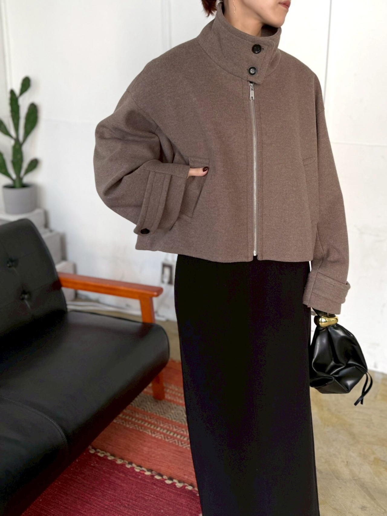 ウールのような あたたかい表面感 とジャージならではの 伸びる素材感 を両立。ゆったりサイズで リラックスした着心地 なのに、短め丈で 自然に女性らしいシルエット に✨柔らかく軽量だから 長時間でもストレスフリー!スタンドカラーで 首元まで暖かく 冬でも快適です。