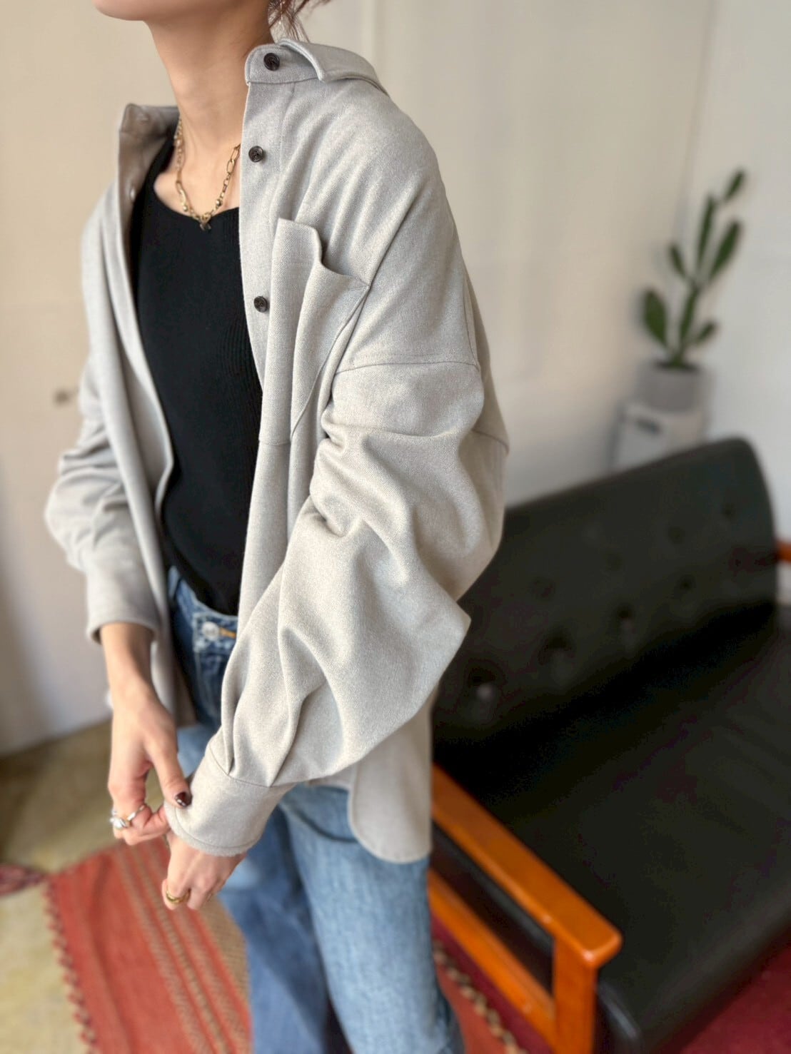 シンプルなデザインながら、 長めのスリーブで抜け感のあるシルエット に。ゆったり感が程よく、 ラフに羽織ってもこなれ感 が出る一枚です。羽織としてもオススメのため長く使えるアイテムです˗ˏˋ♡ˎˊ˗