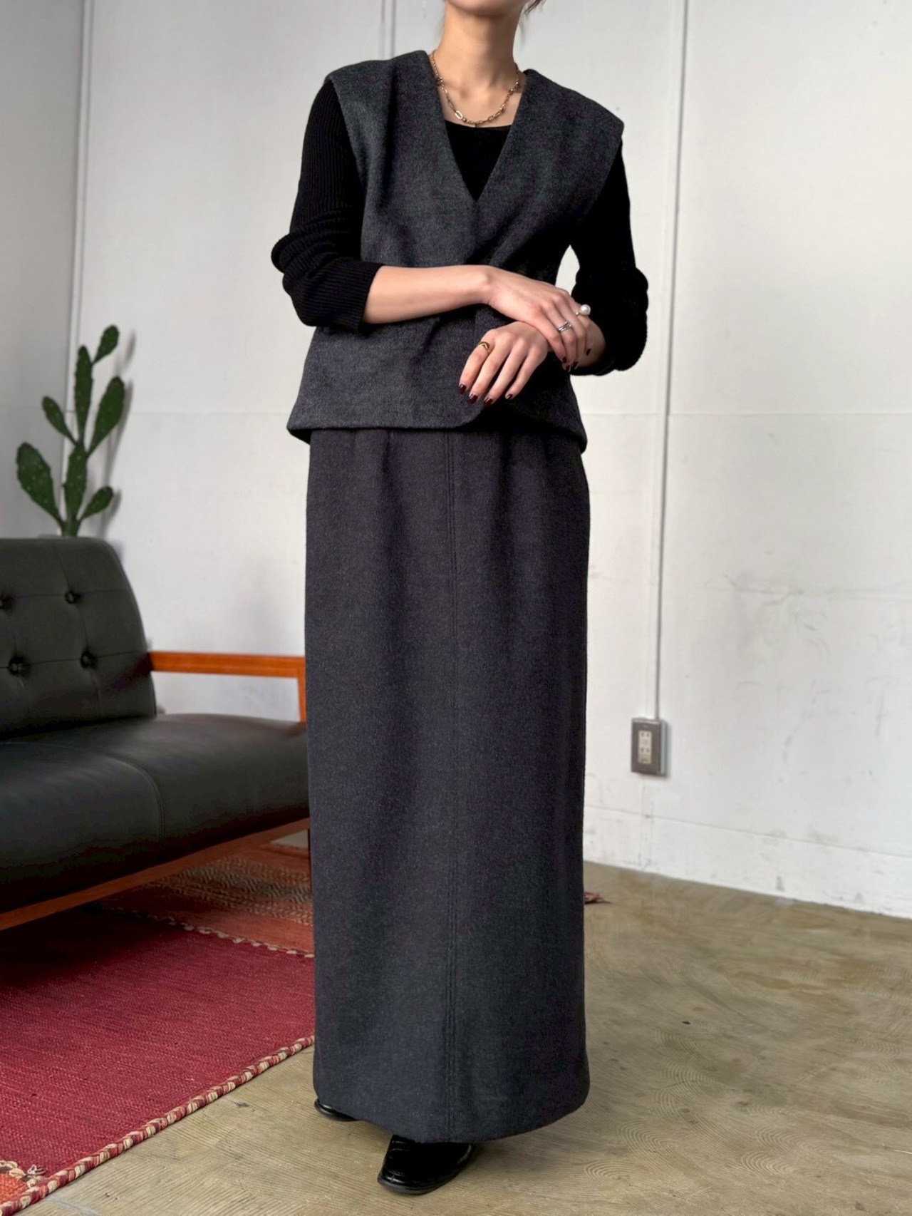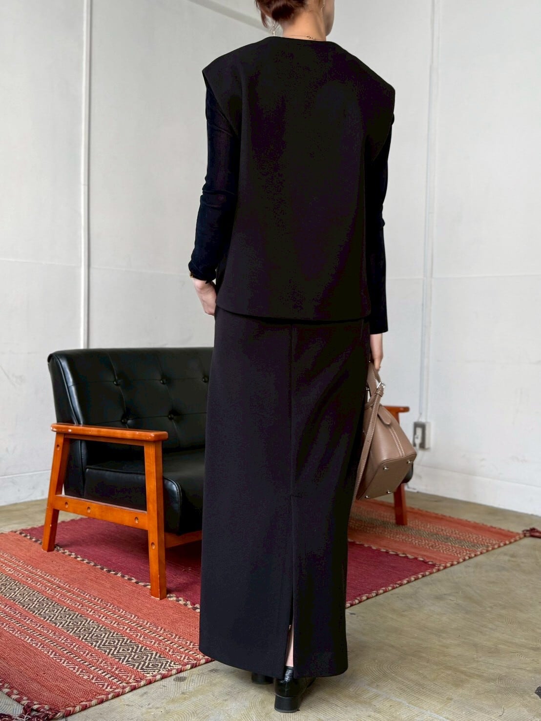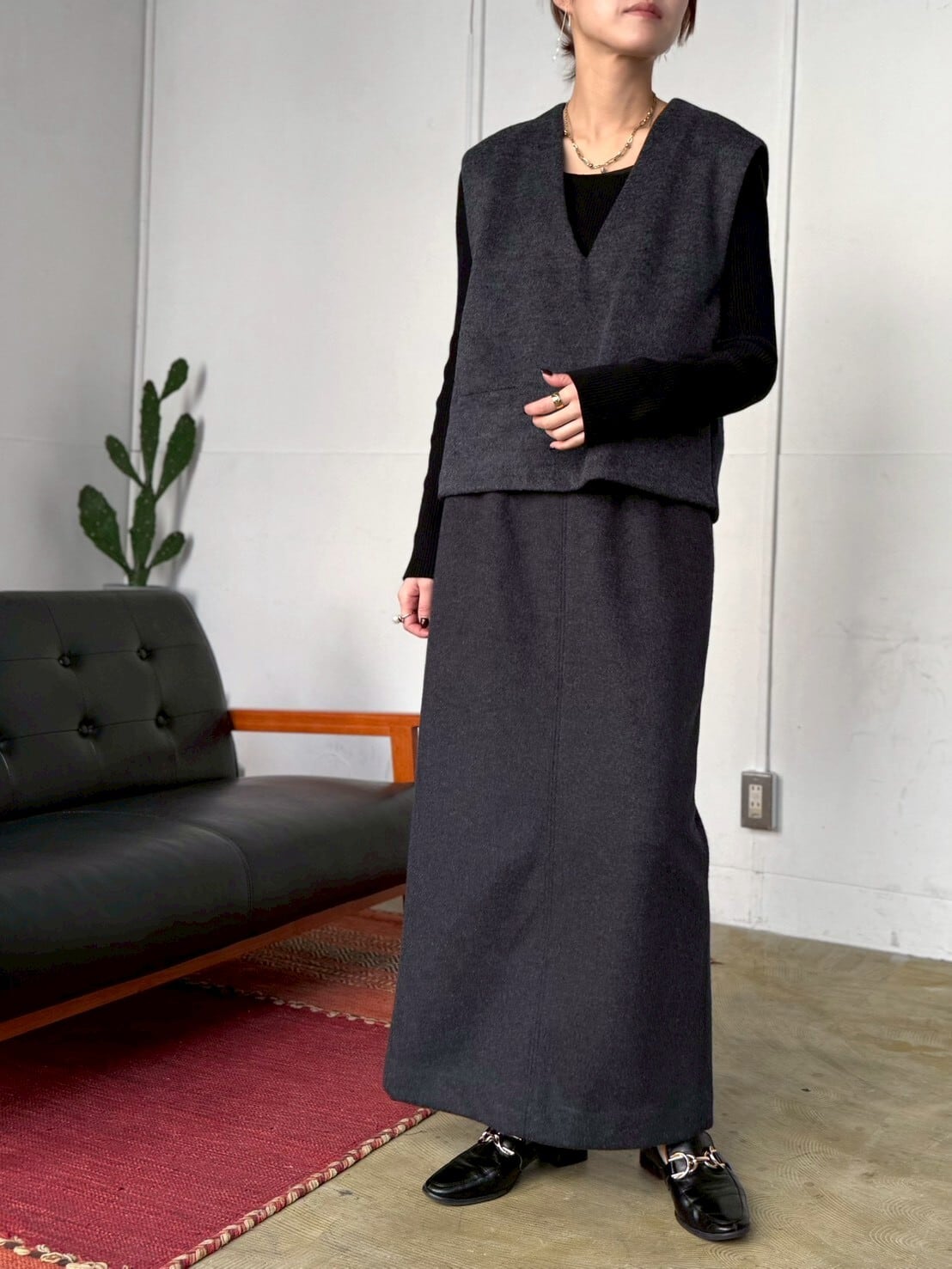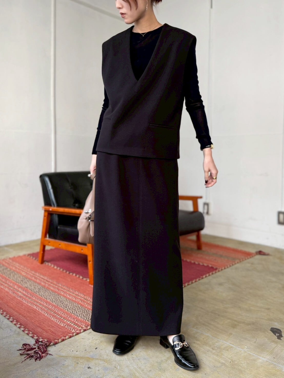 ウールメルトンのような 暖かみのある表面感 とジャージならではの 驚くほど伸びるストレッチ性 を兼ね備えたVネックベスト。シンプルなデザインながら、 深めのVネックが抜け感を生み、女性らしい印象に◎