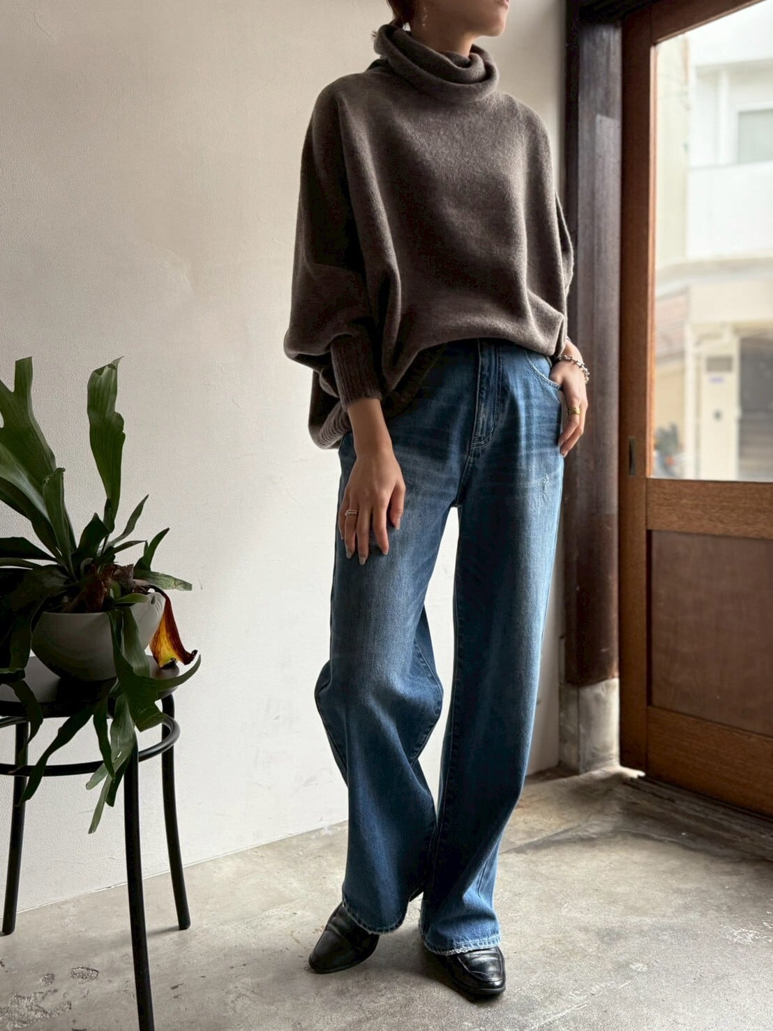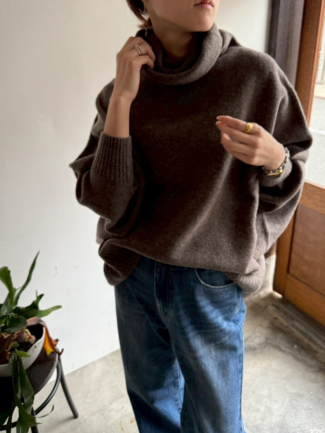 ✓ ロールネック&ドルマンスリーブで女性らしいシルエット