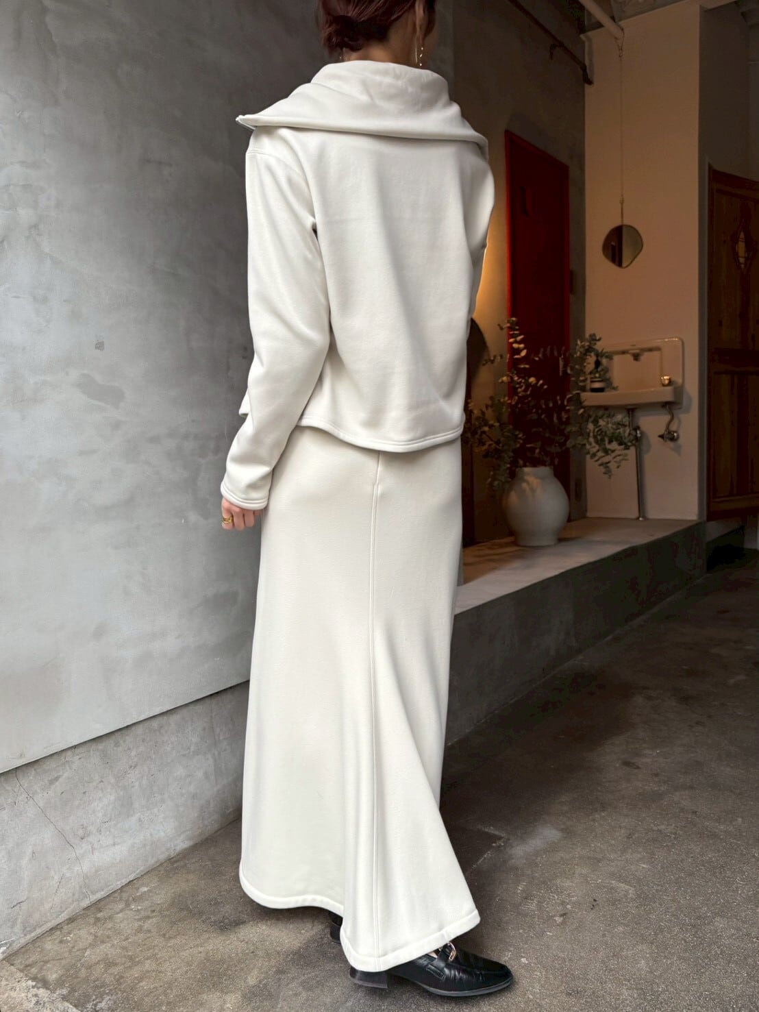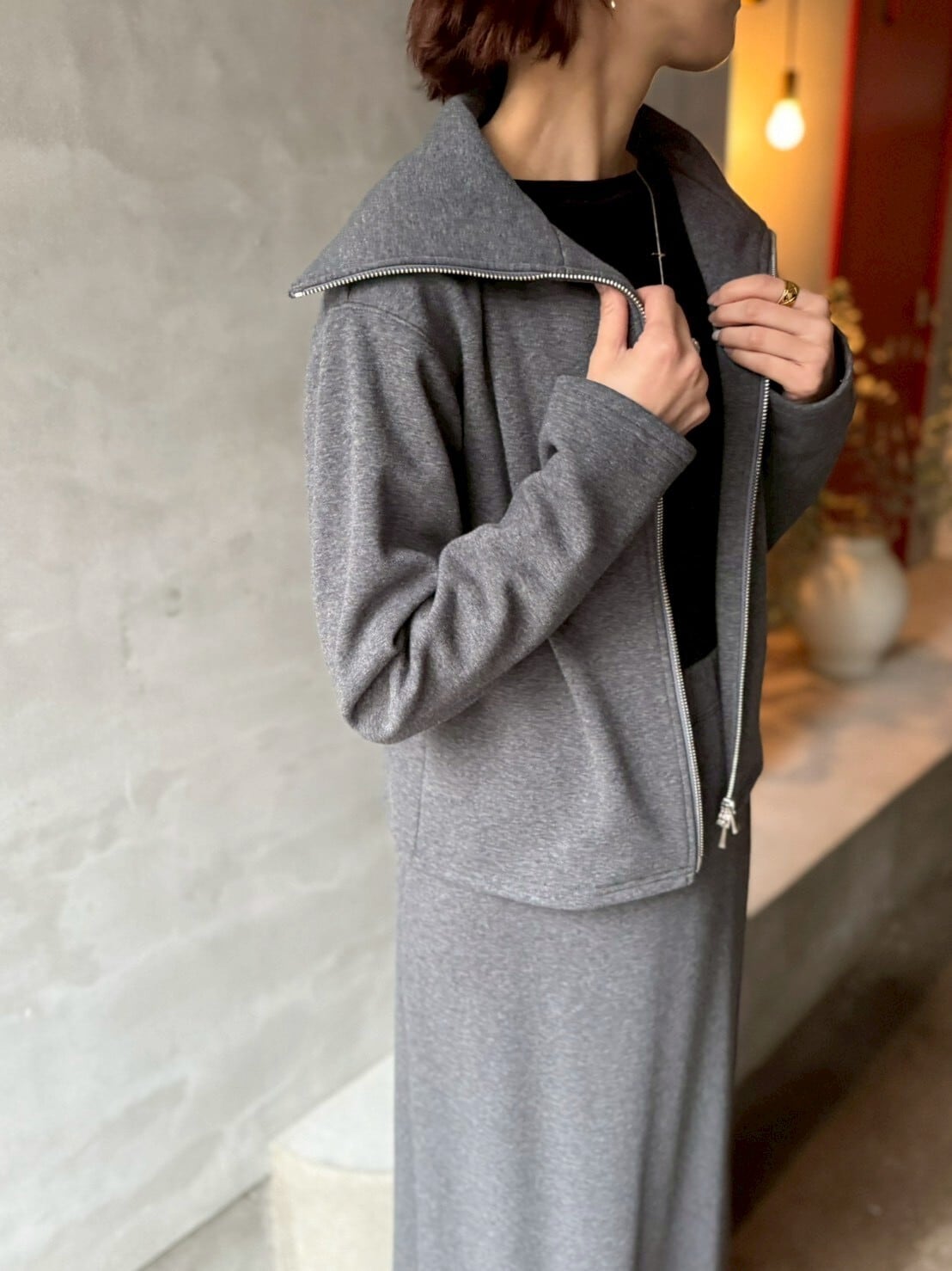 襟をあえて高くとったデザインで、ファスナーの留め位置次第でスタンドカラー風の着こなし も可能◎程よくフィットするシルエットで、ジャケットやコートのインにももたつかず、上品にレイヤード できちゃいます⋆˙⟡