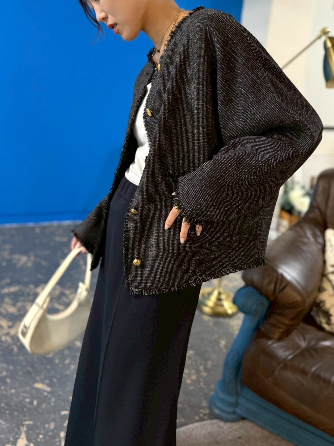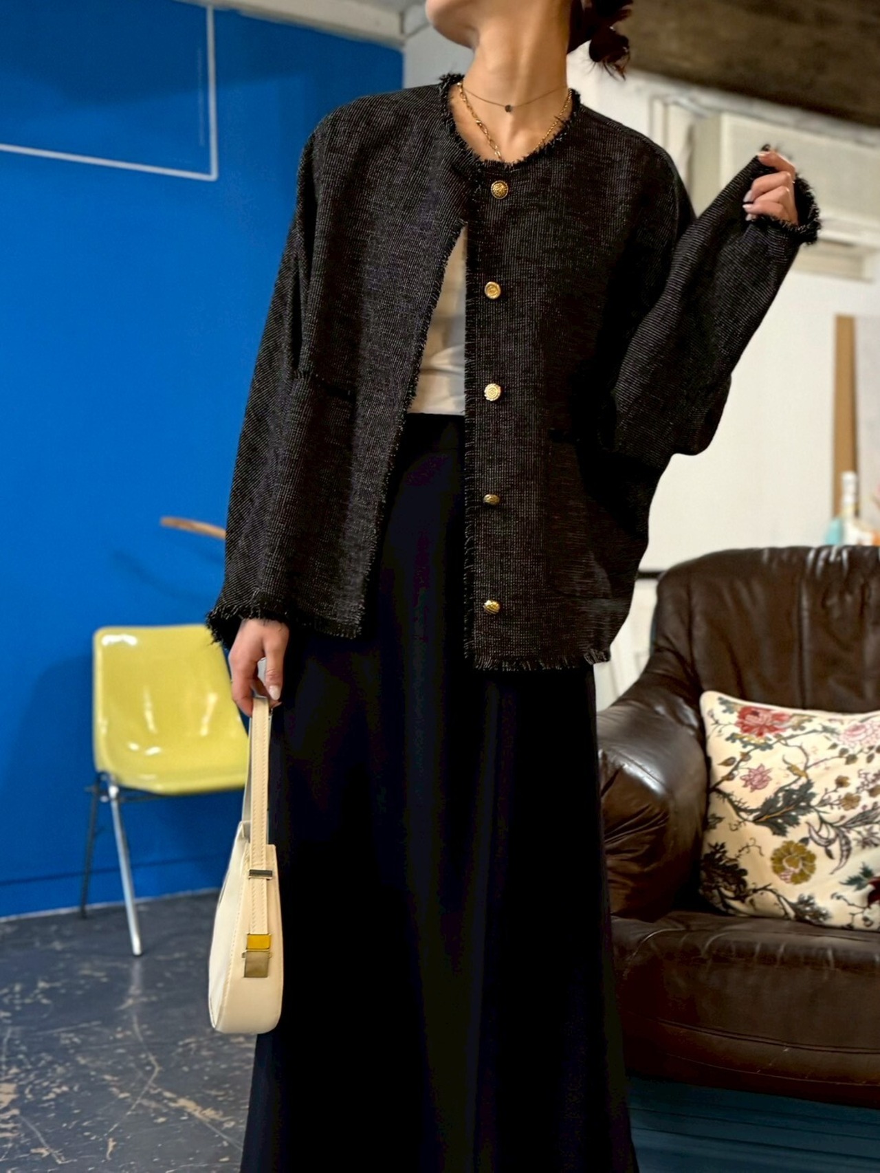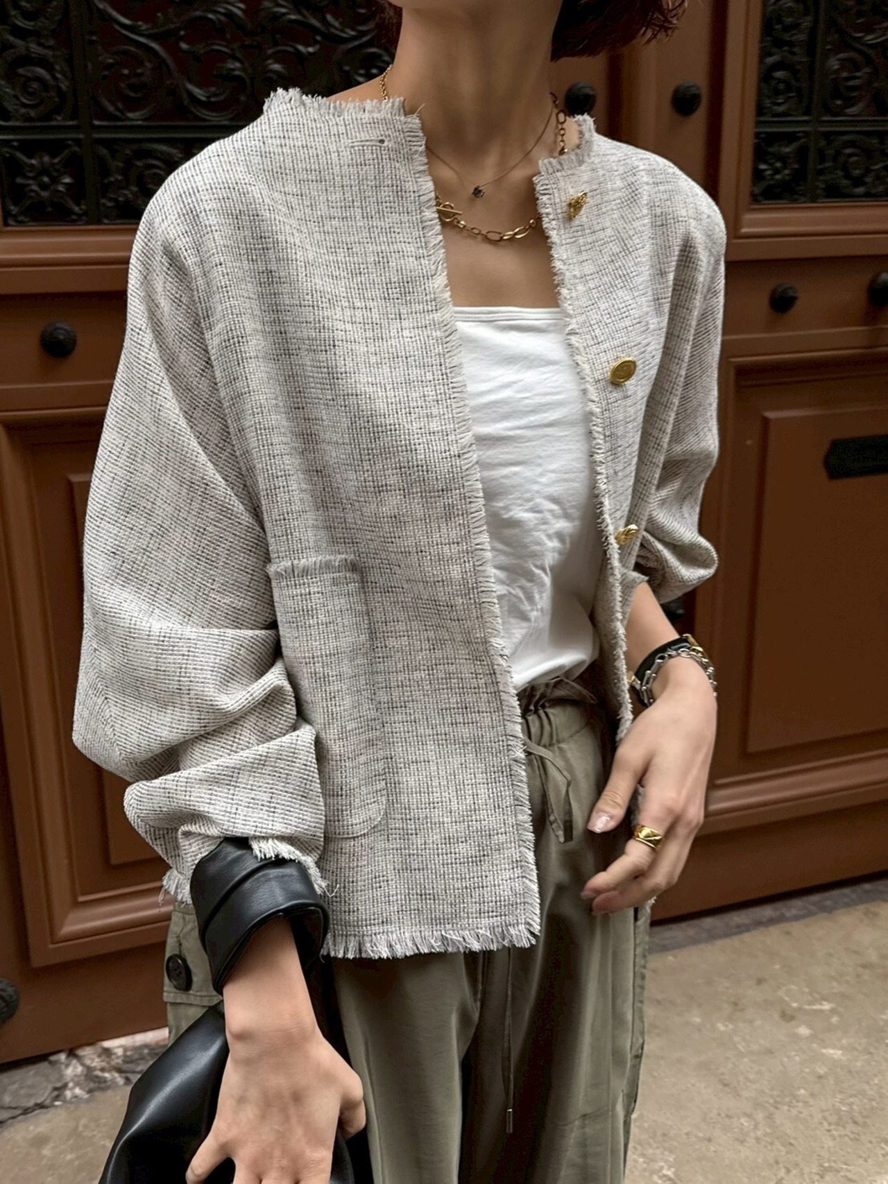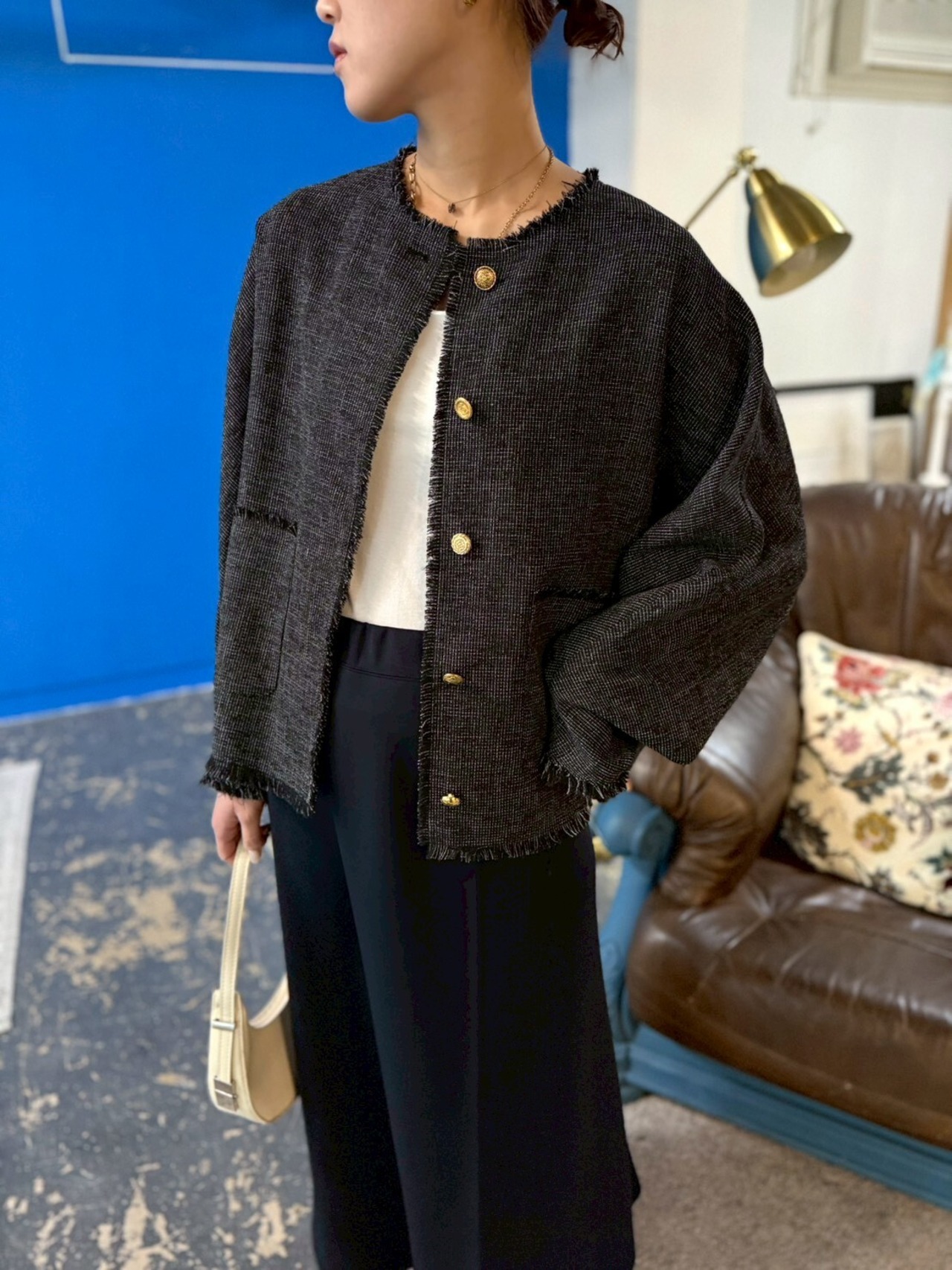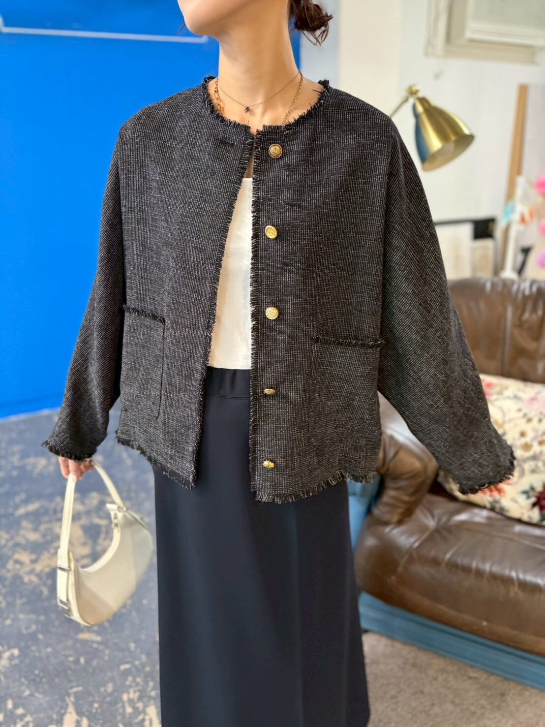 羽織るだけで、きちんと感と個性を両立。ディテールまで楽しみたい大人におすすめの一枚です✨