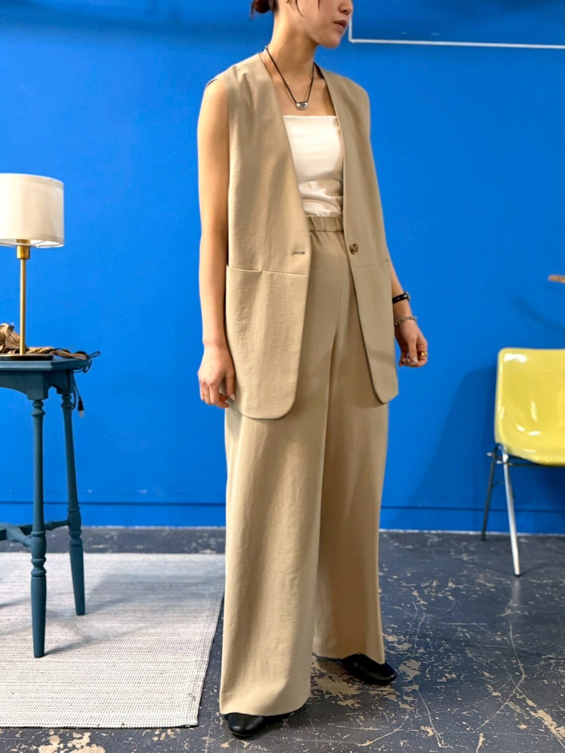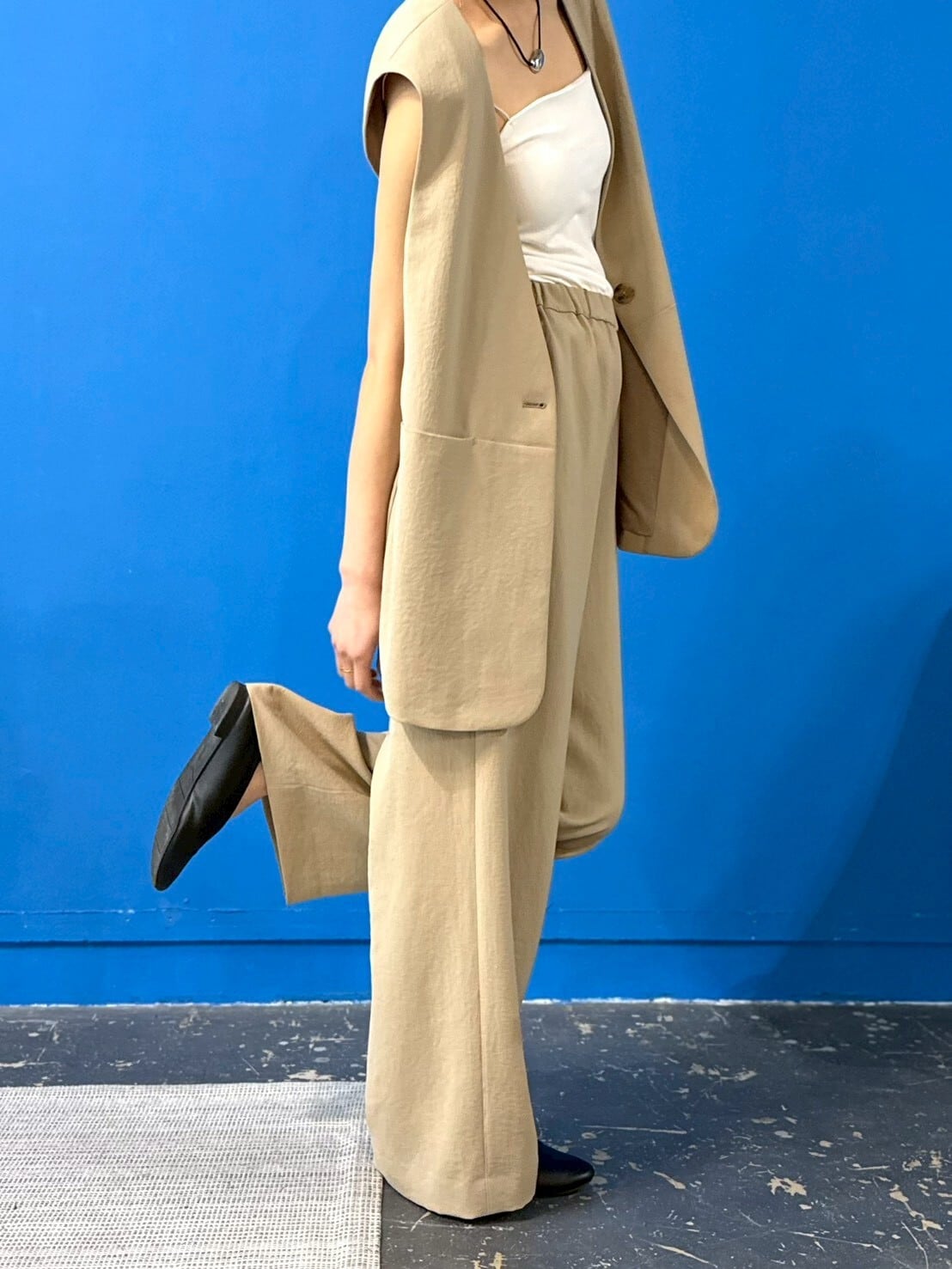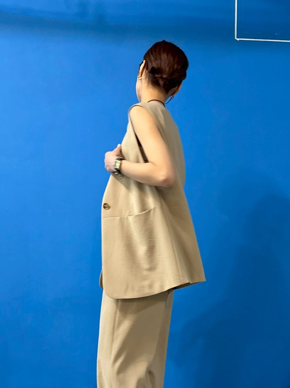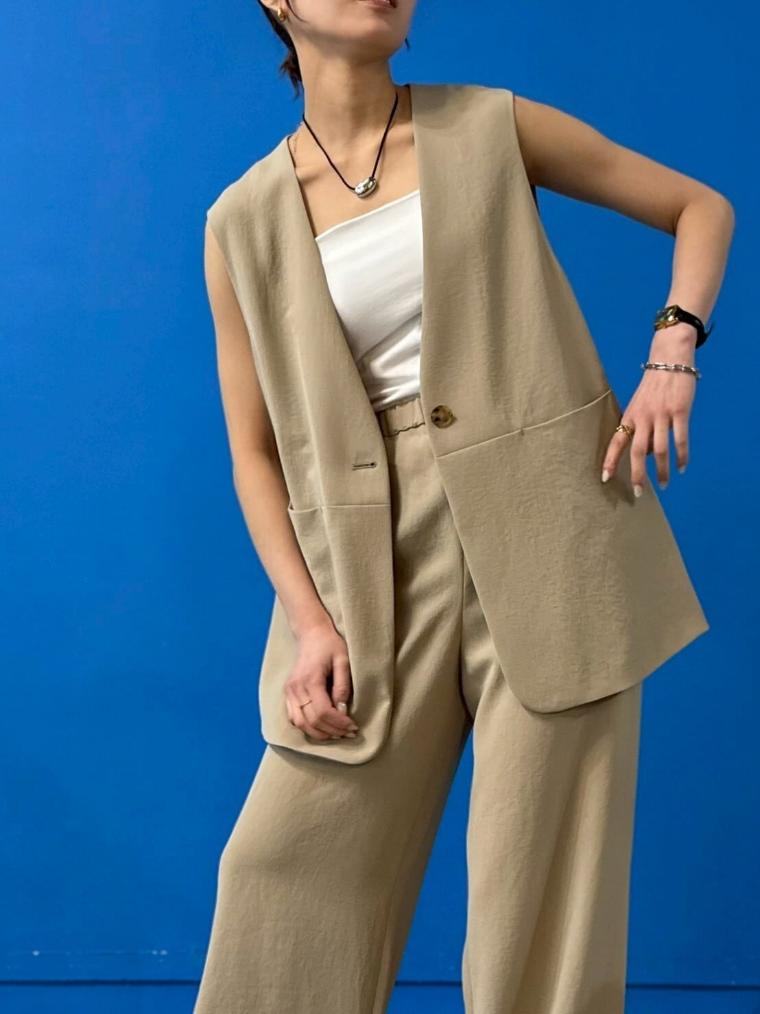 カジュアルなデニム合わせはもちろん、同素材パンツと合わせればオケージョンシーンにも対応可能。ロングシーズン活躍する、頼れるジレです〇