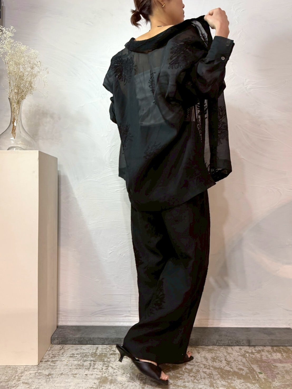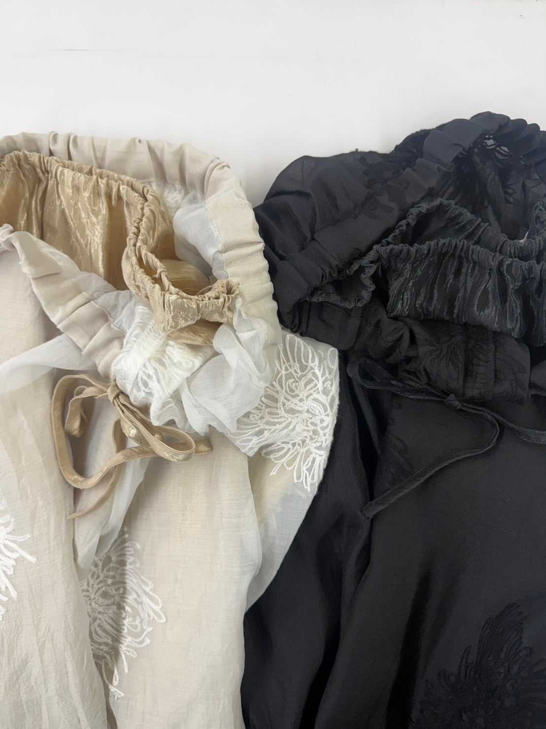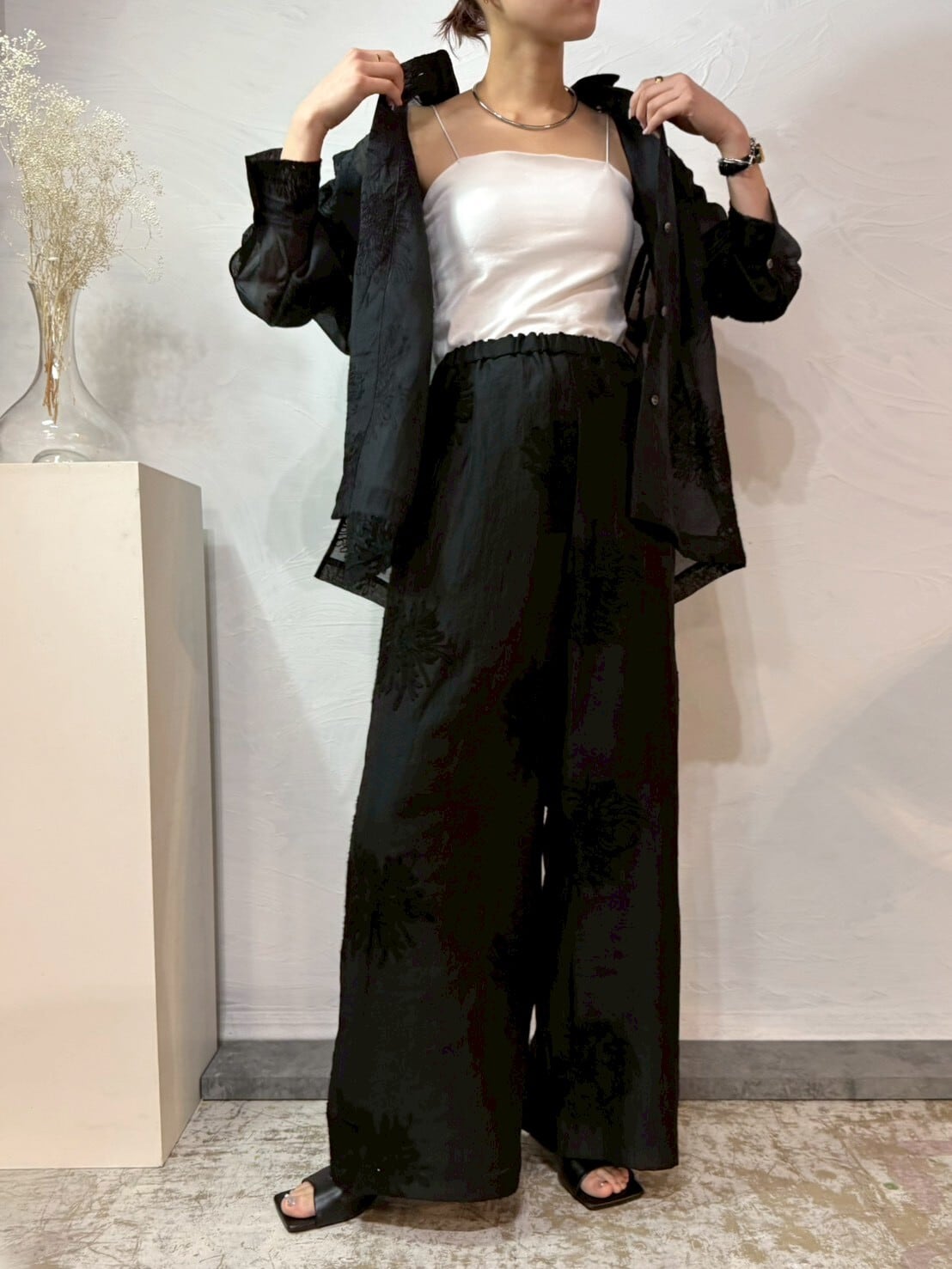 繊細なボタニカル刺繍×透け感シアー。