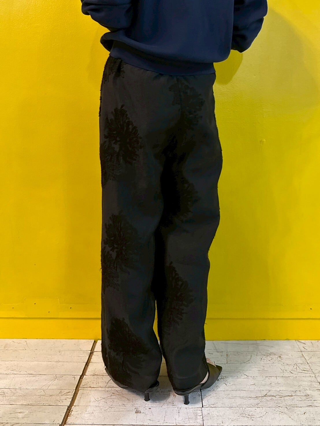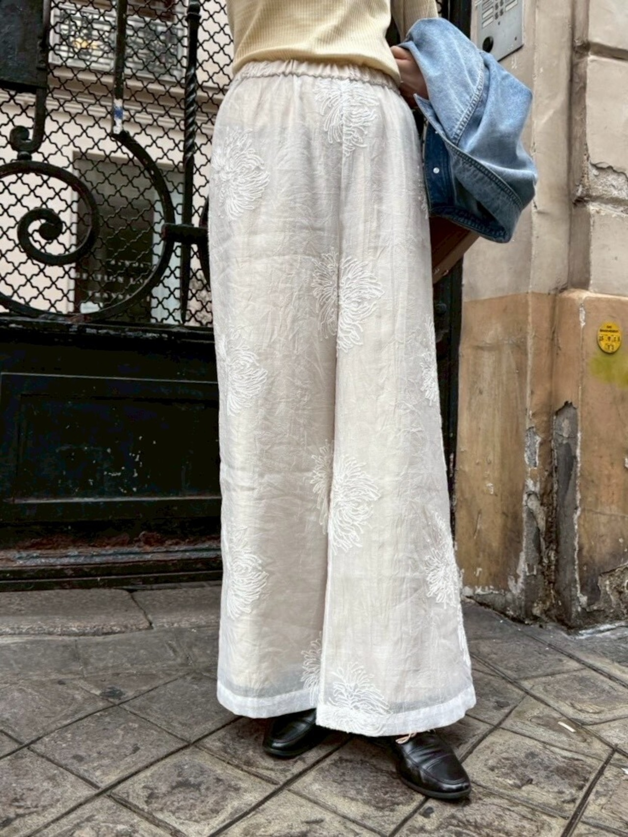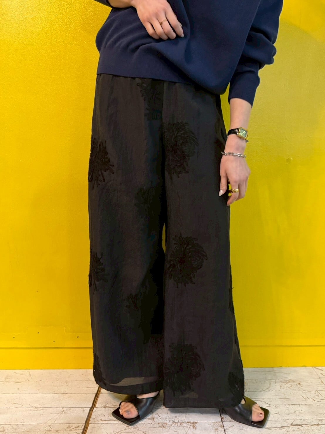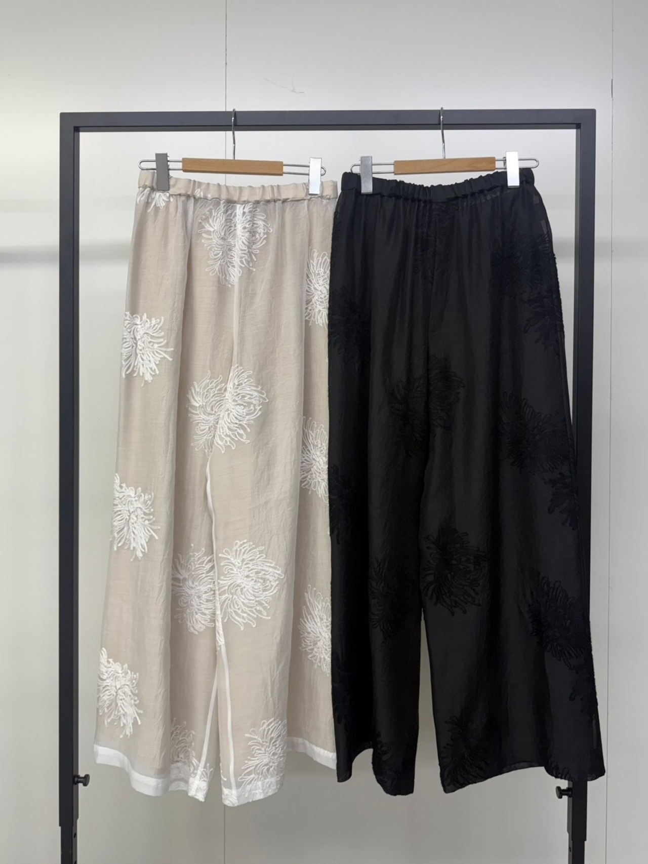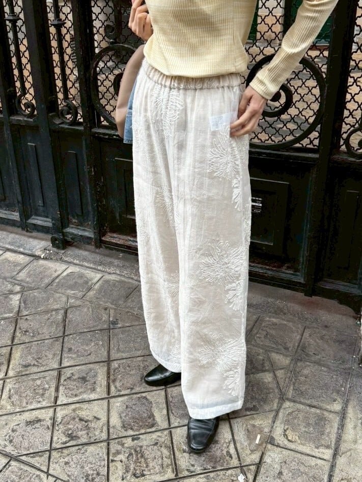 sheer embroidery layered pants