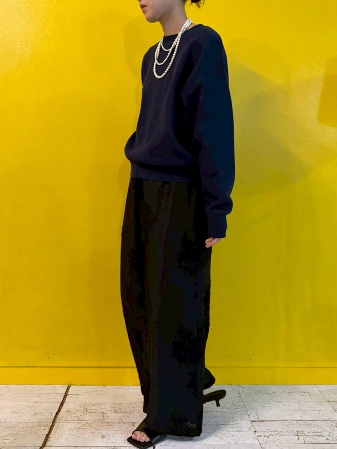 ✔ ロングトップス合わせで大人の余裕感