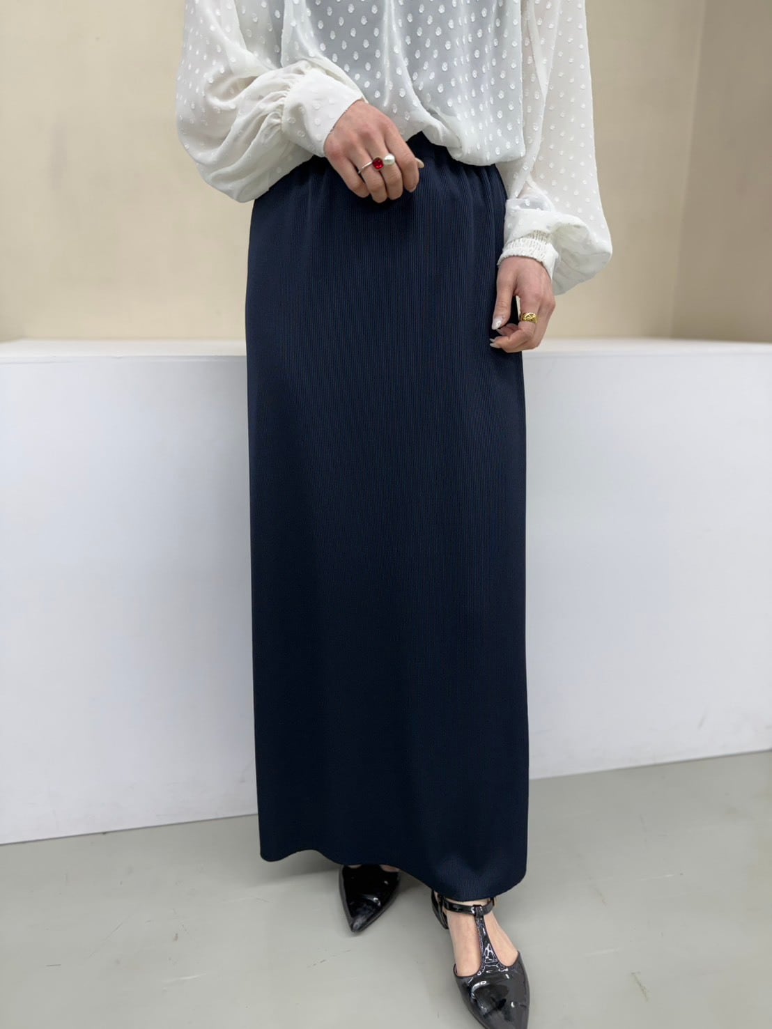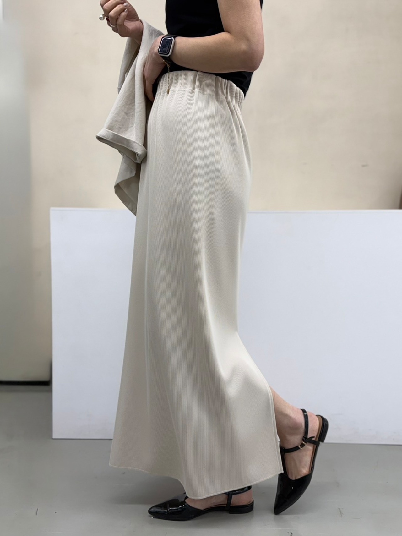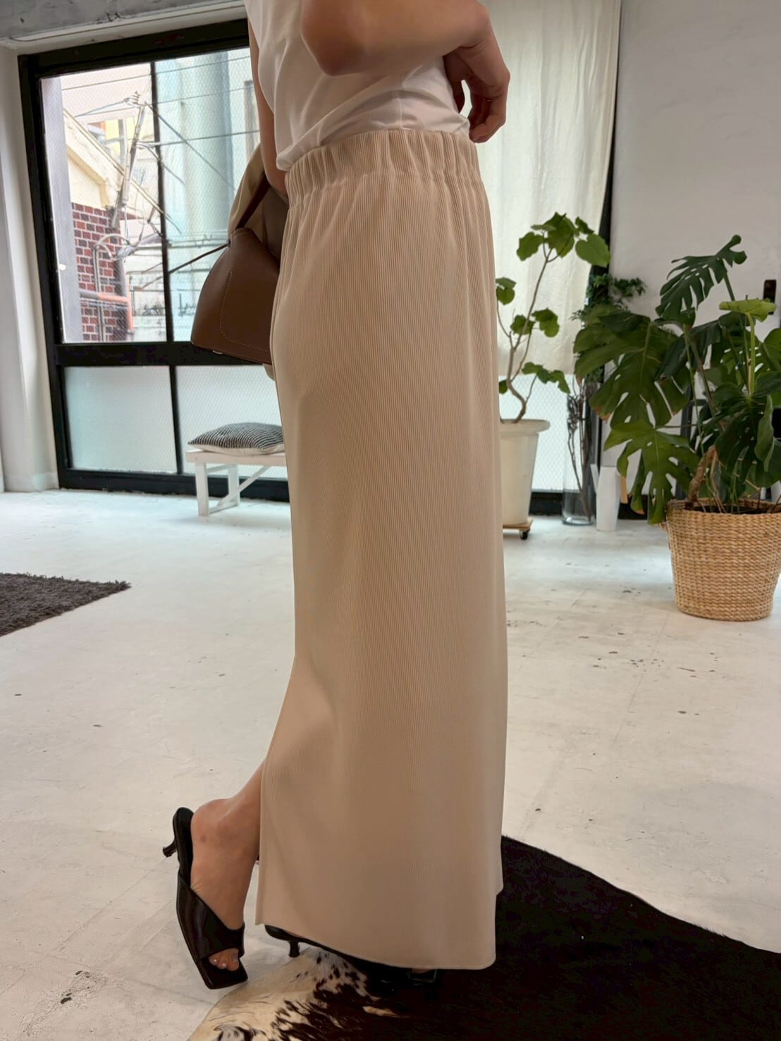 スリットは、穿く位置によって後ろやサイドに調整可能!その日の気分やスタイリングに合わせて、さりげない抜け感を楽しめるのもポイントです。