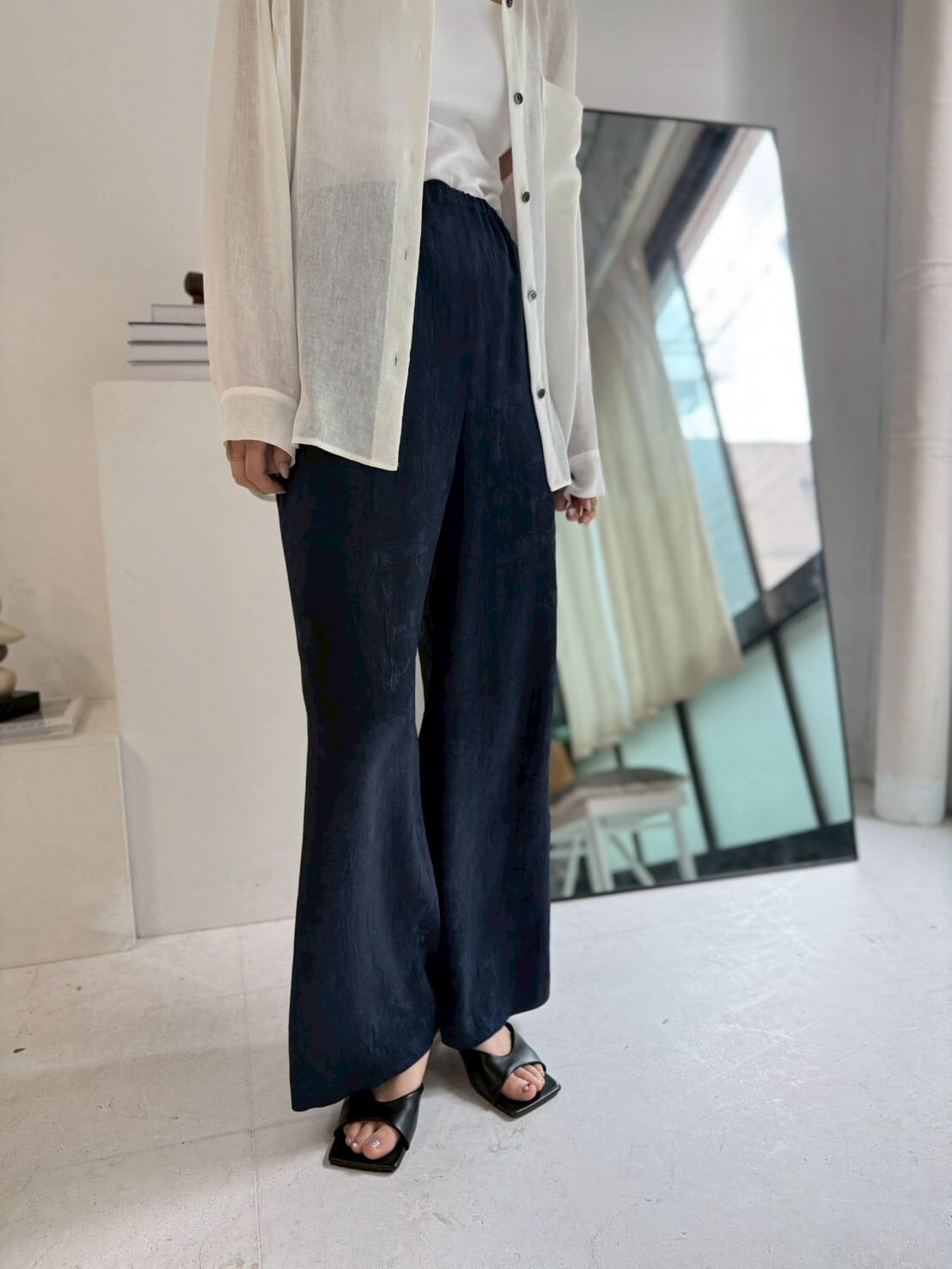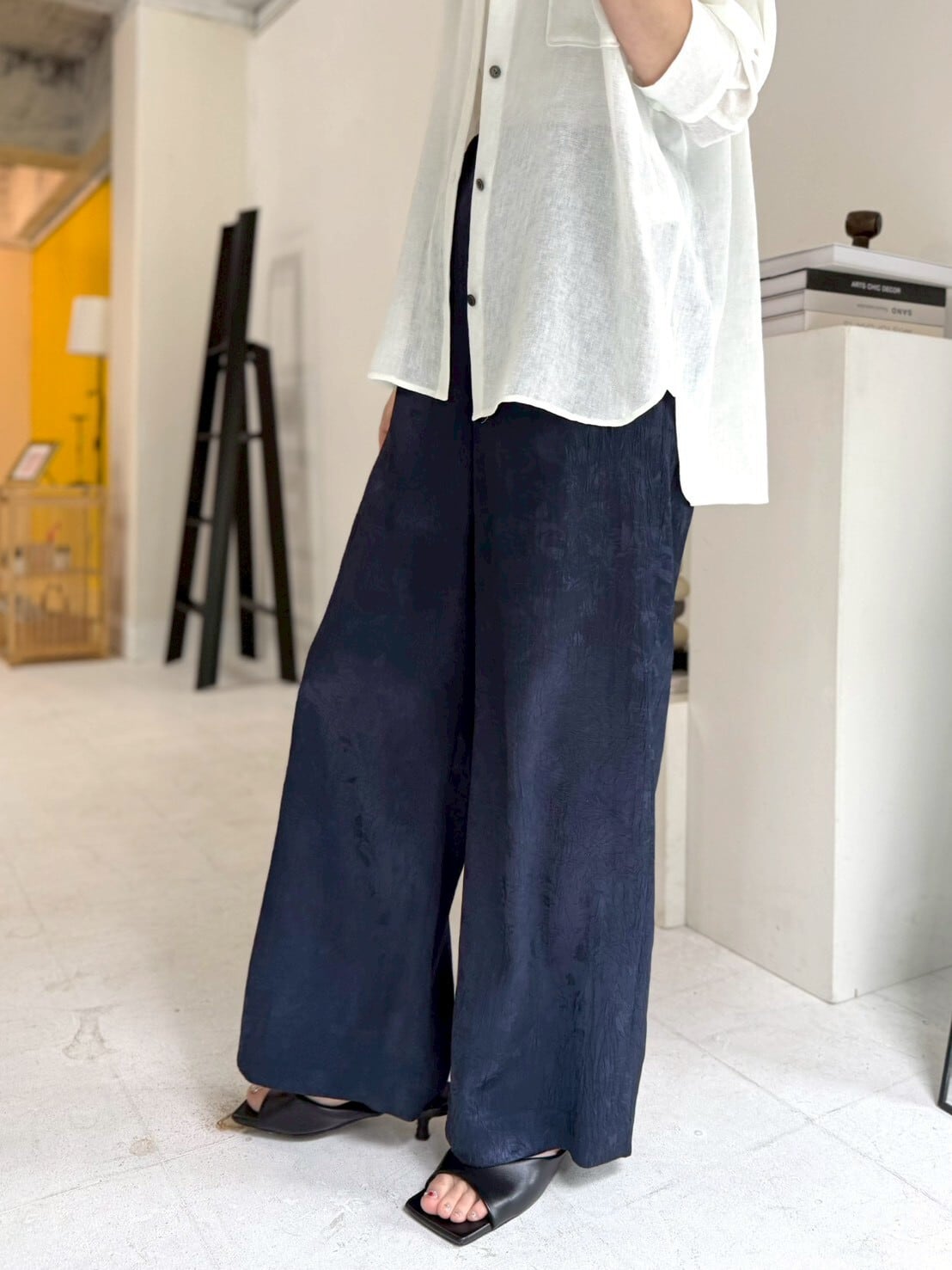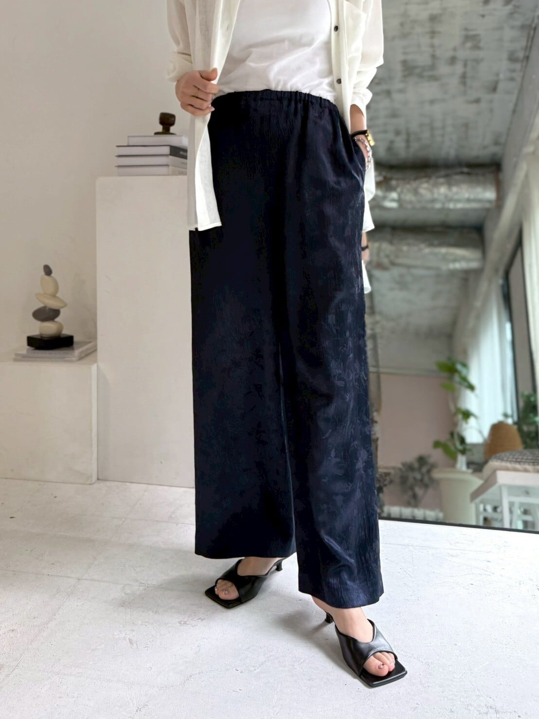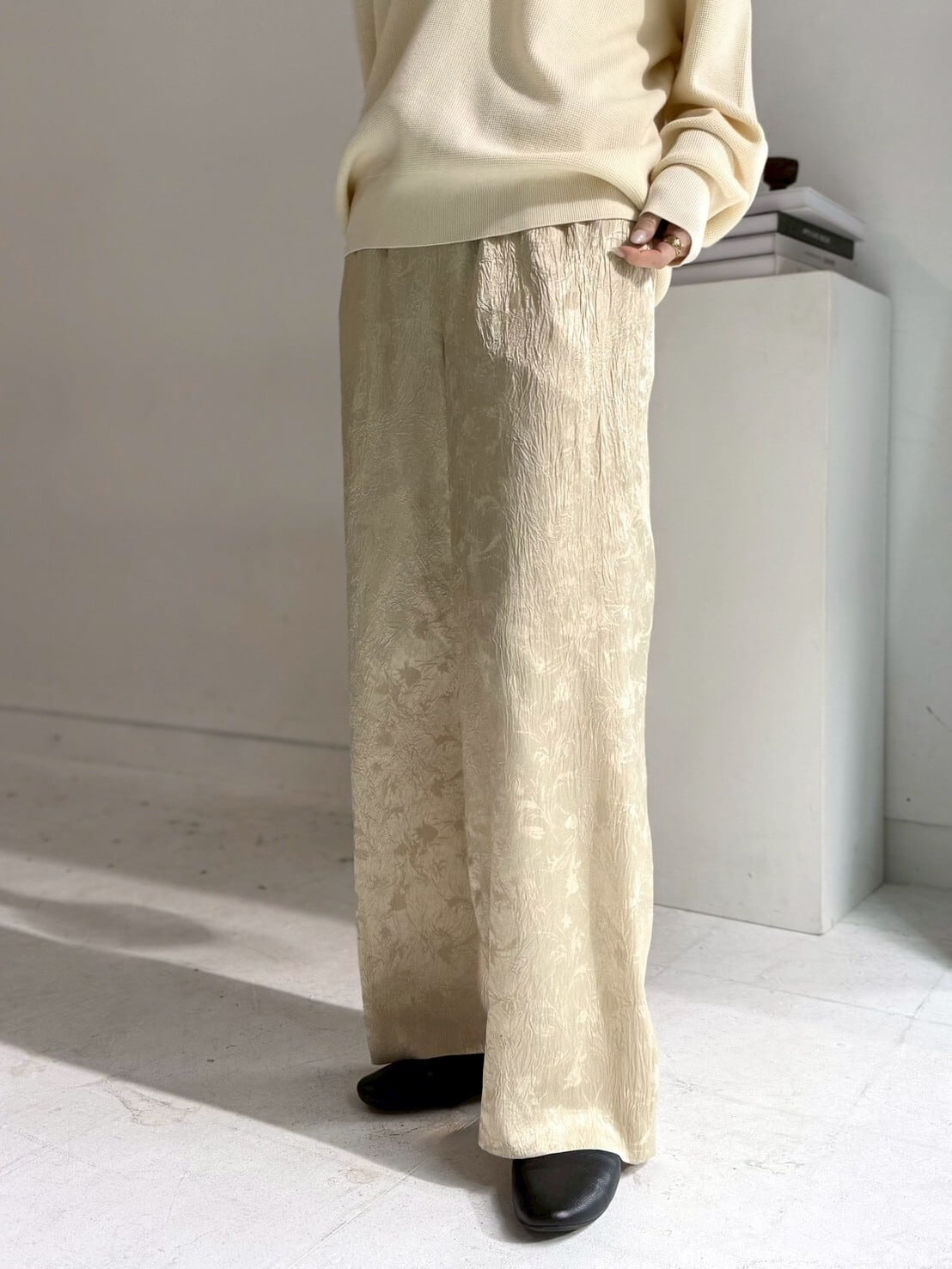 shiny jacquard relax pants