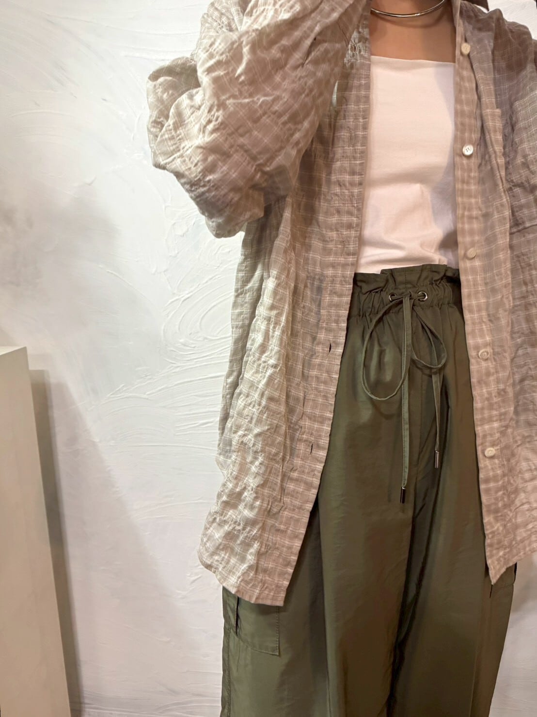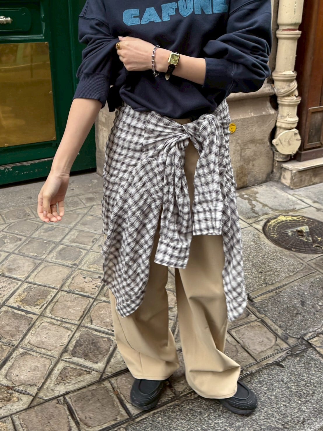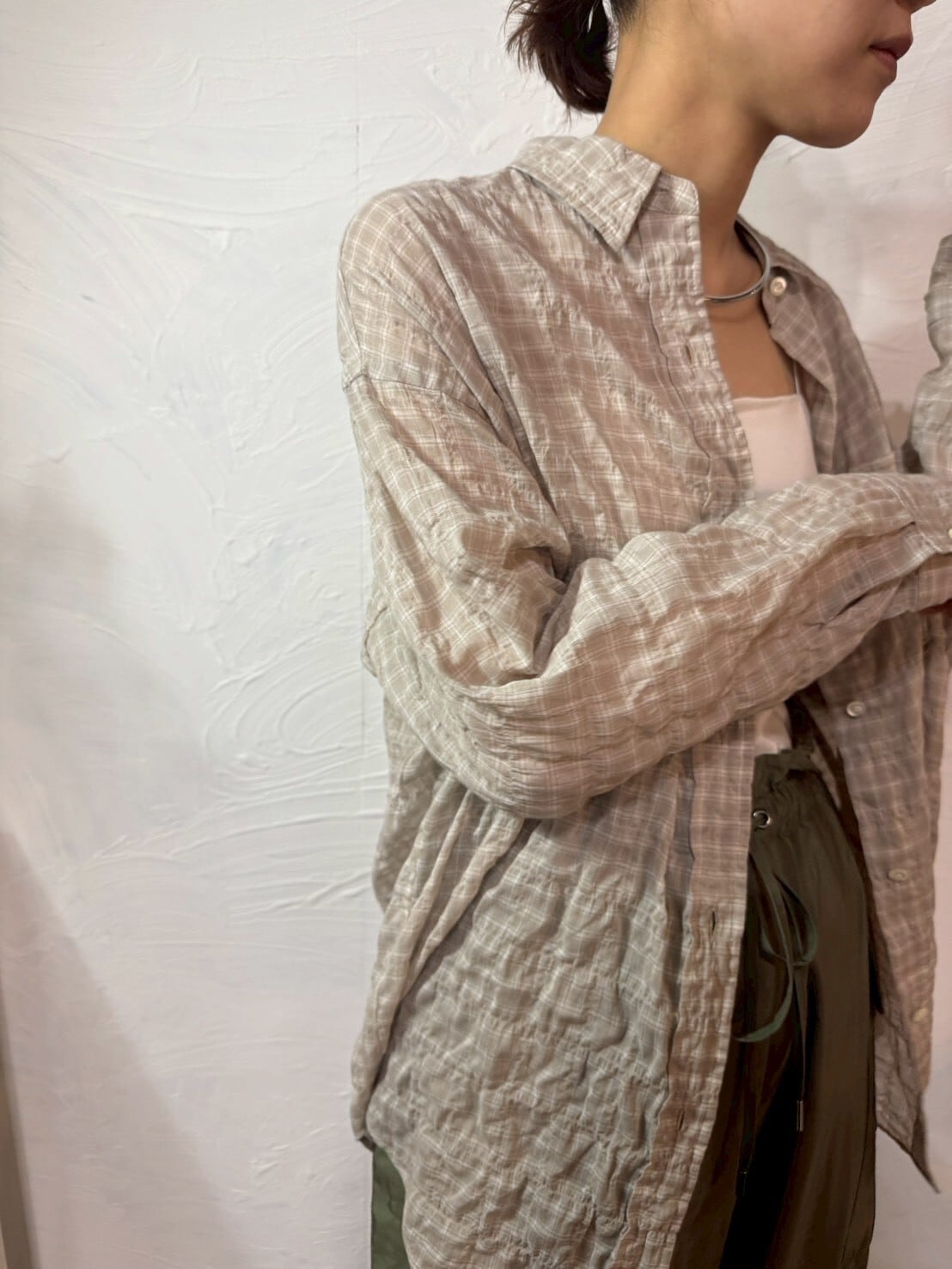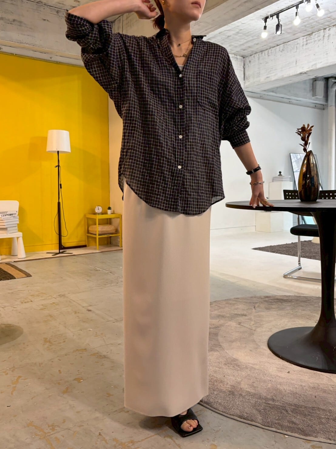やわらかく体に馴染んで、どこか“大人の余裕”を感じさせる一枚です。一枚でさらっと着るのはもちろん、腰巻きや肩掛けでこなれ感を足しても◎