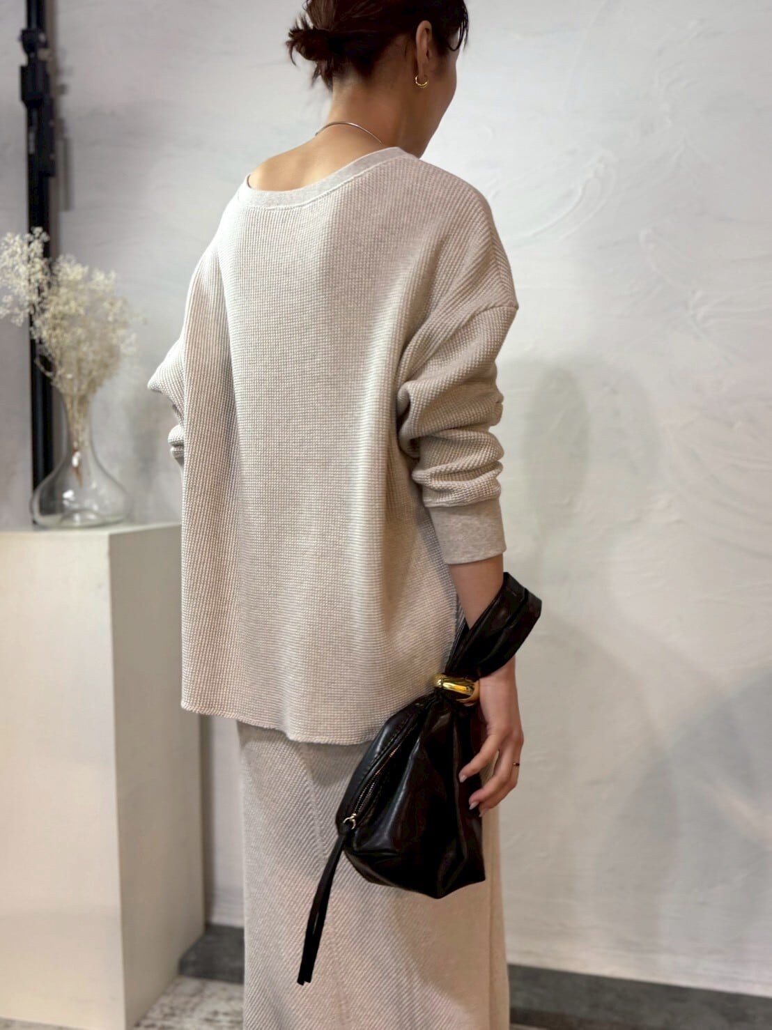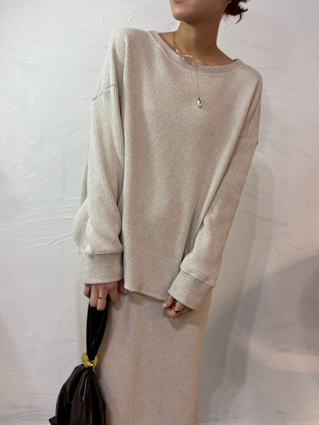 国内生産の上質なワッフル素材を使用し、表情のある質感がシンプルな中にも奥行きをプラス。ゆったりとしたシルエットで、着るだけでこなれた印象に仕上がります。