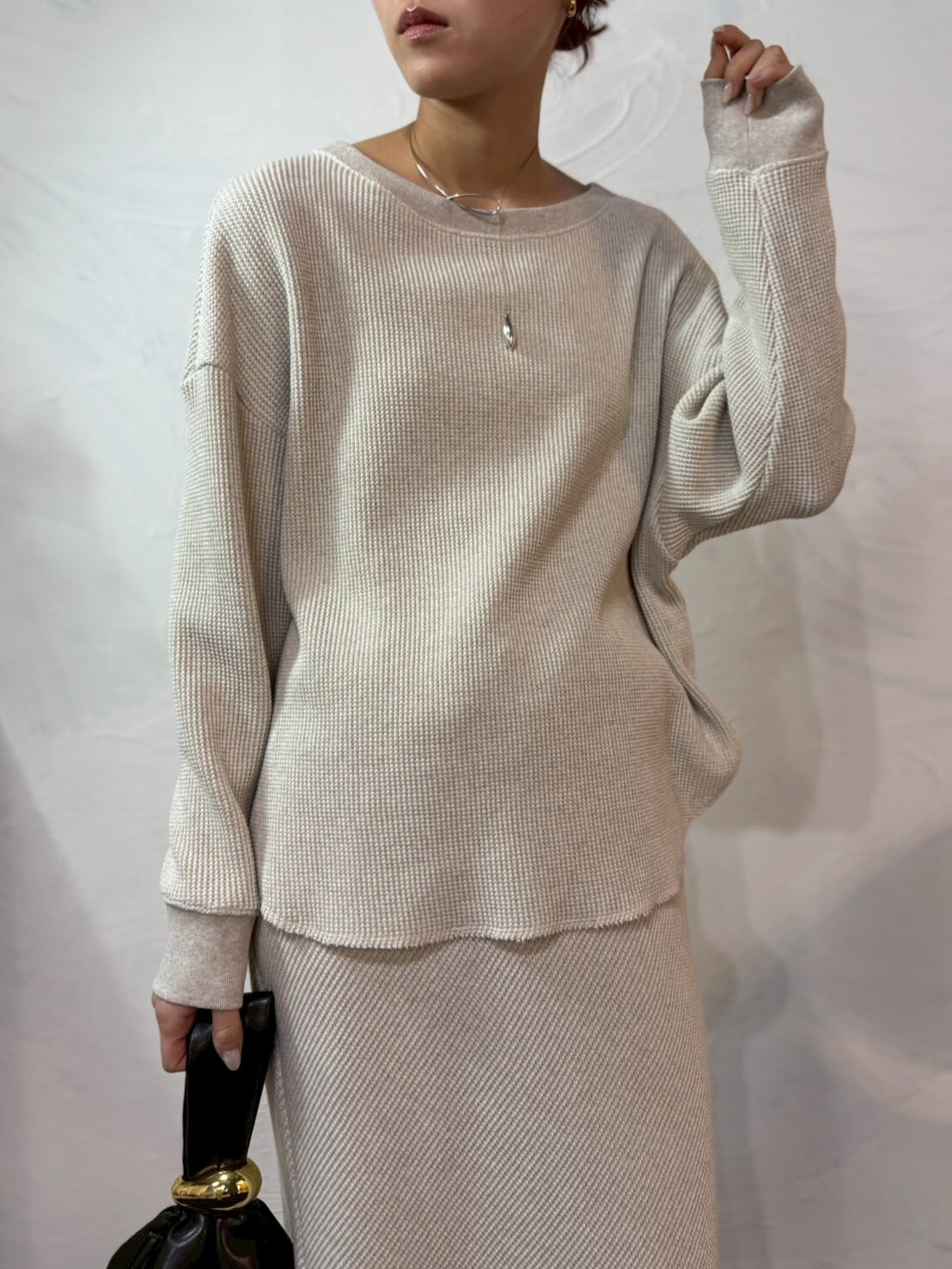 スウェットほどラフにならず、程よくきちんと感のある一枚。単品使いはもちろん同素材のスカートと合わせた春らしいセットアップスタイルもおすすめです。