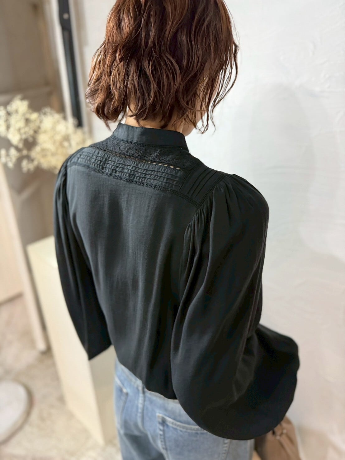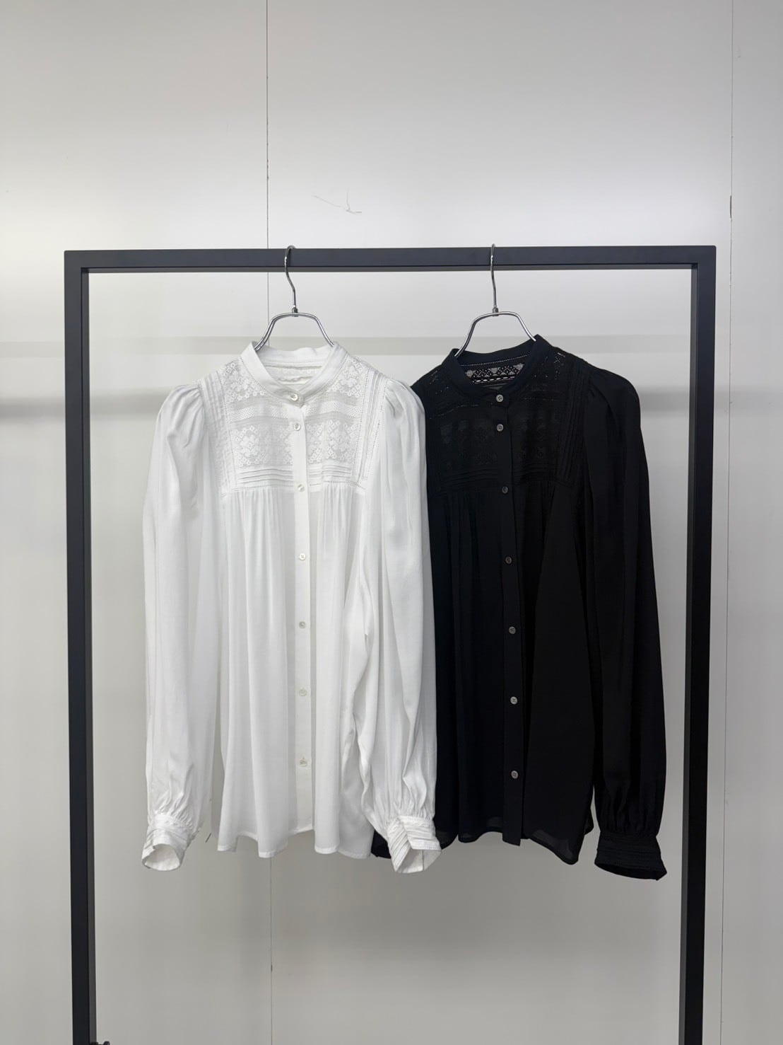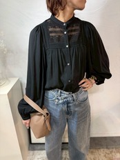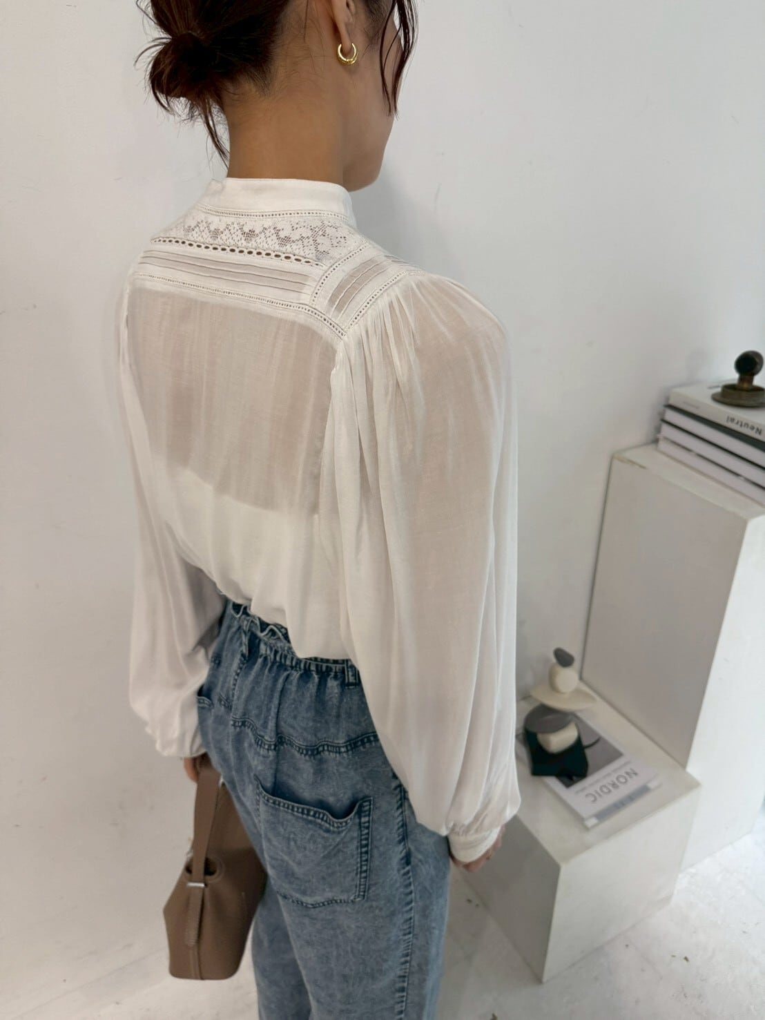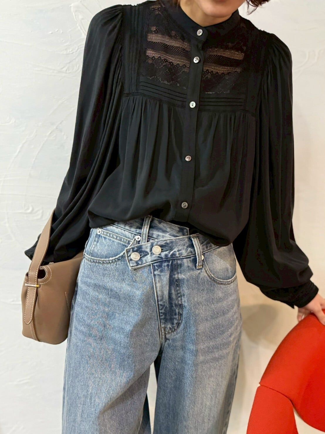 フロント、バック、そしてカフスにまで。繊細なレースと細やかなタックを贅沢にあしらった一枚で着映える主役ブラウス!
