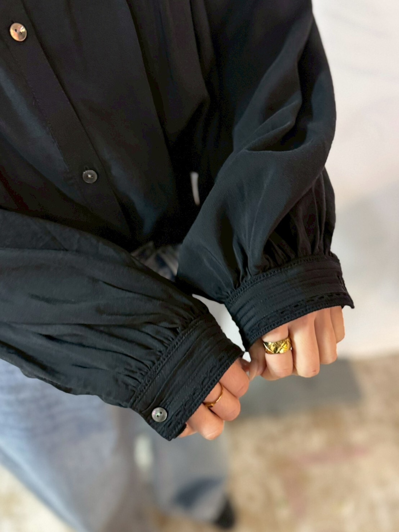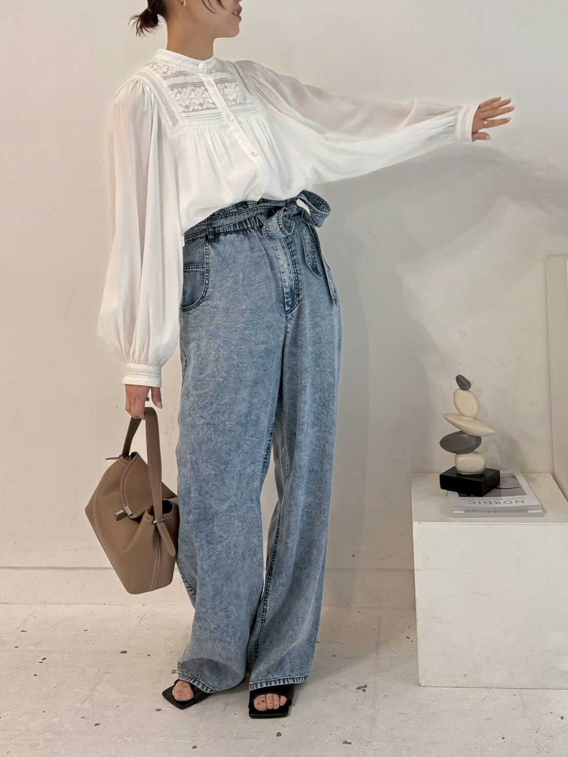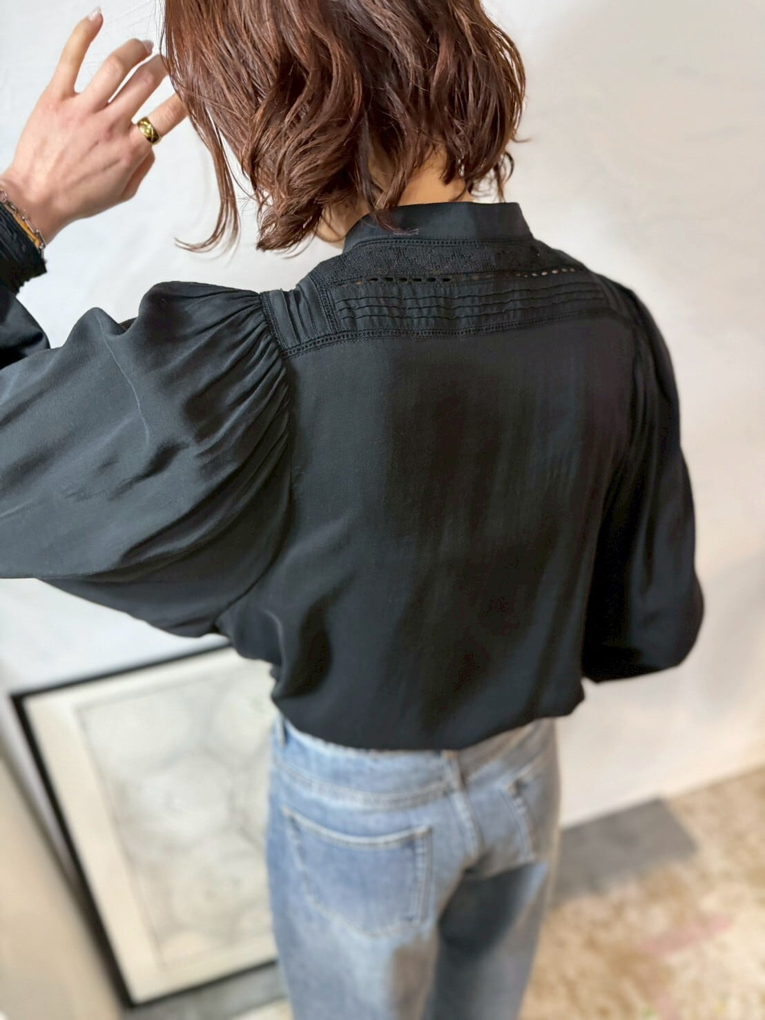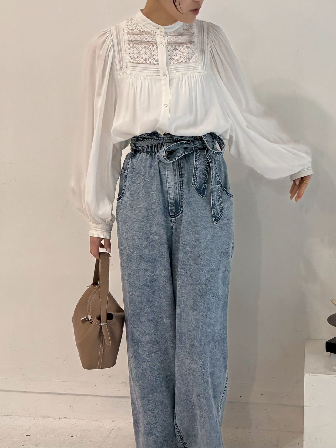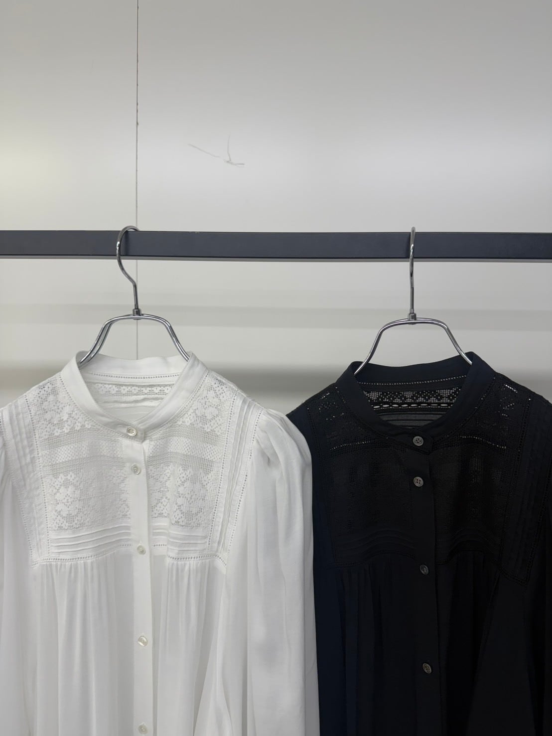 フロント、バック、そしてカフスにまで。繊細なレースと細やかなタックを贅沢にあしらった一枚で着映える主役ブラウス!