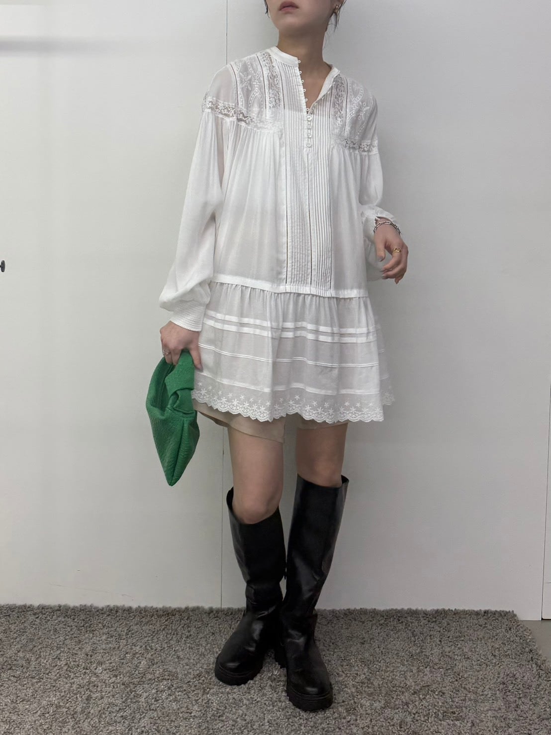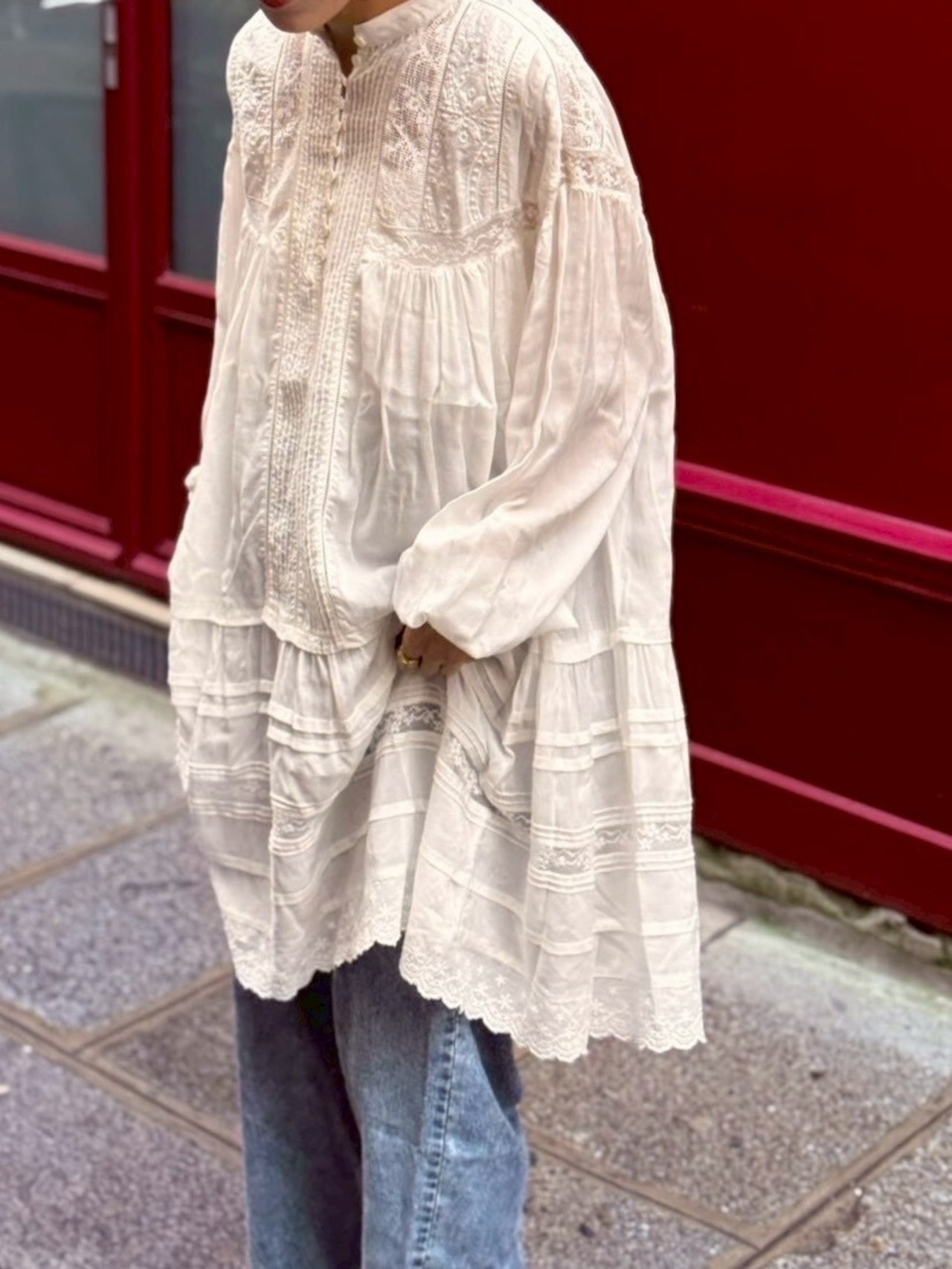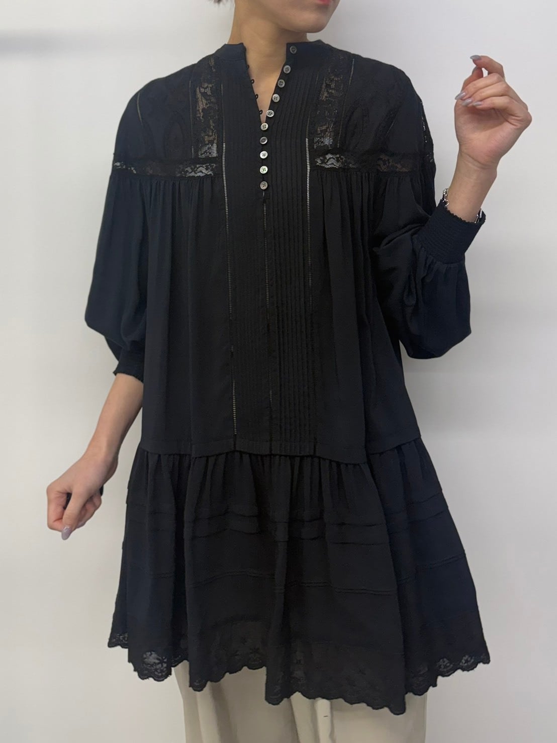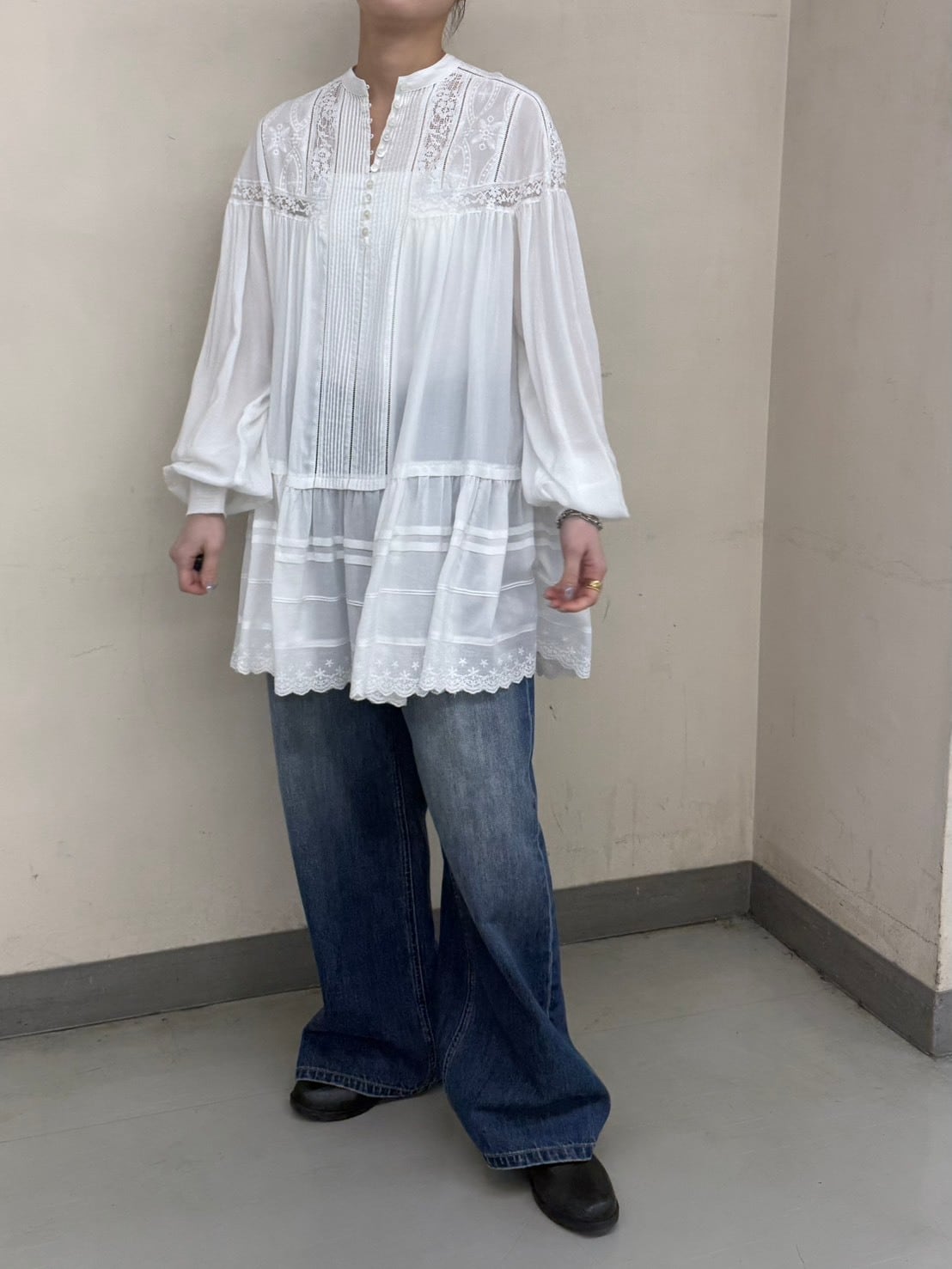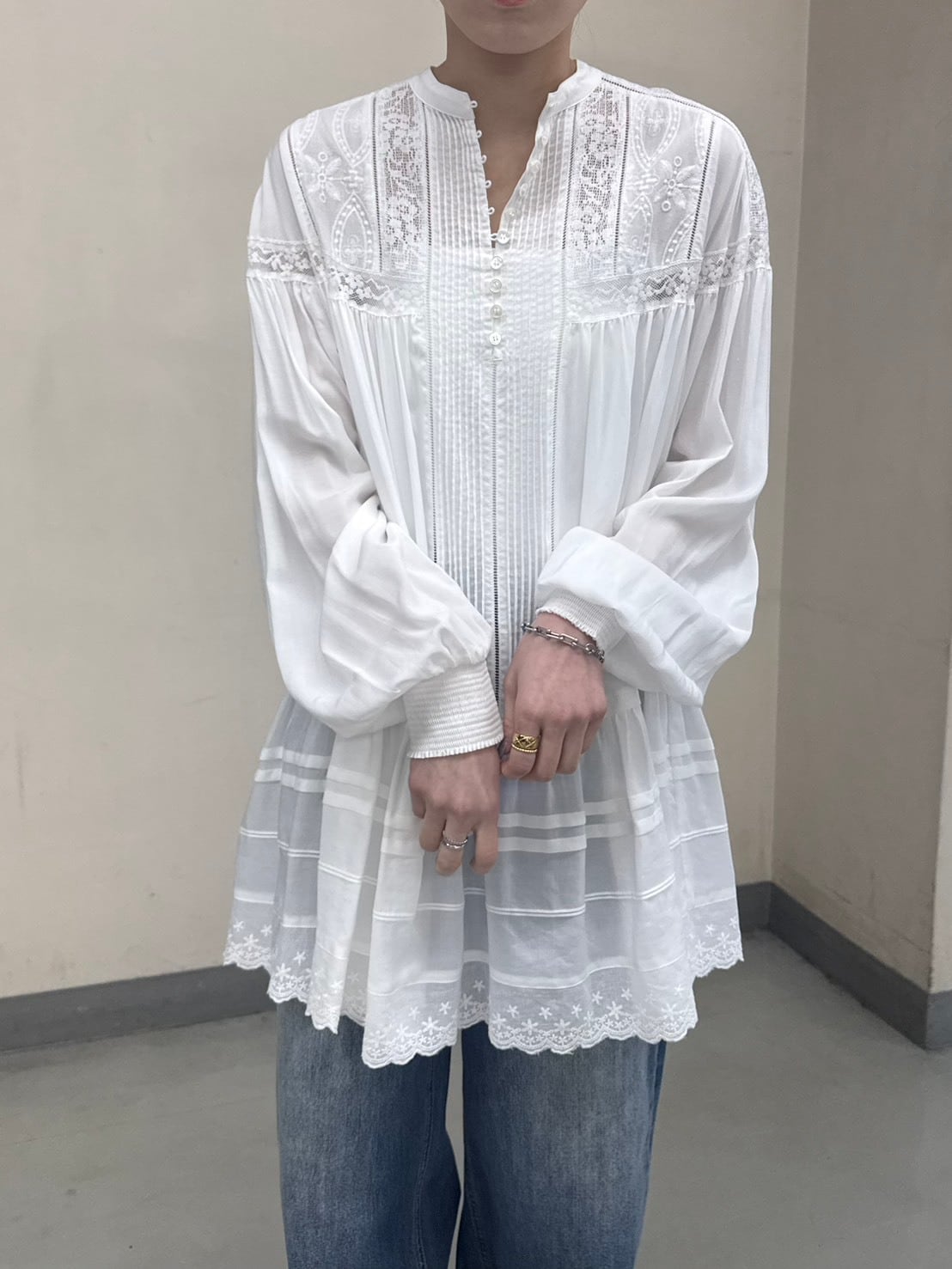 lace pintuck long blouse