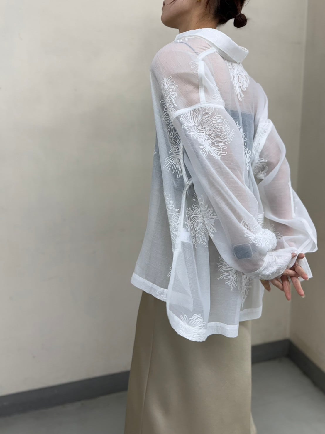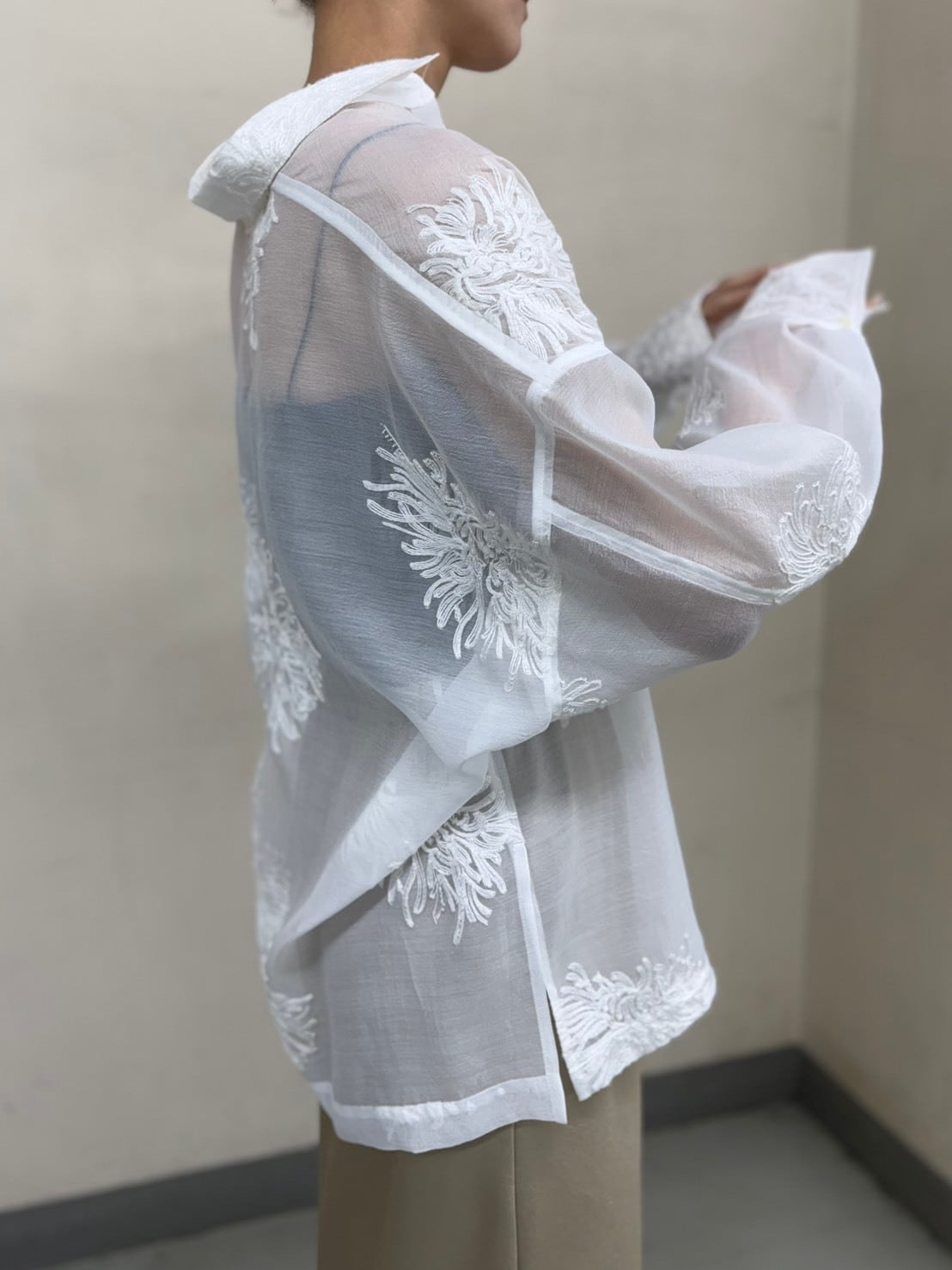 sheer embroidery shirt