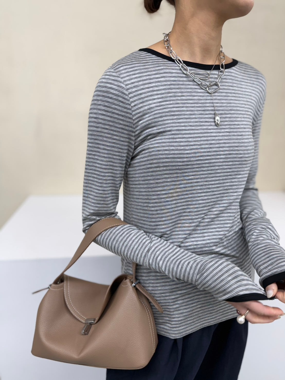 デニムで王道に。スラックスやスカートで大人っぽく。ジャケットのインにもすっと馴染む。“普通”に見えて、ちゃんと洒落てる。毎日のコーデをさりげなく底上げしてくれる頼れるデイリーアイテムです。