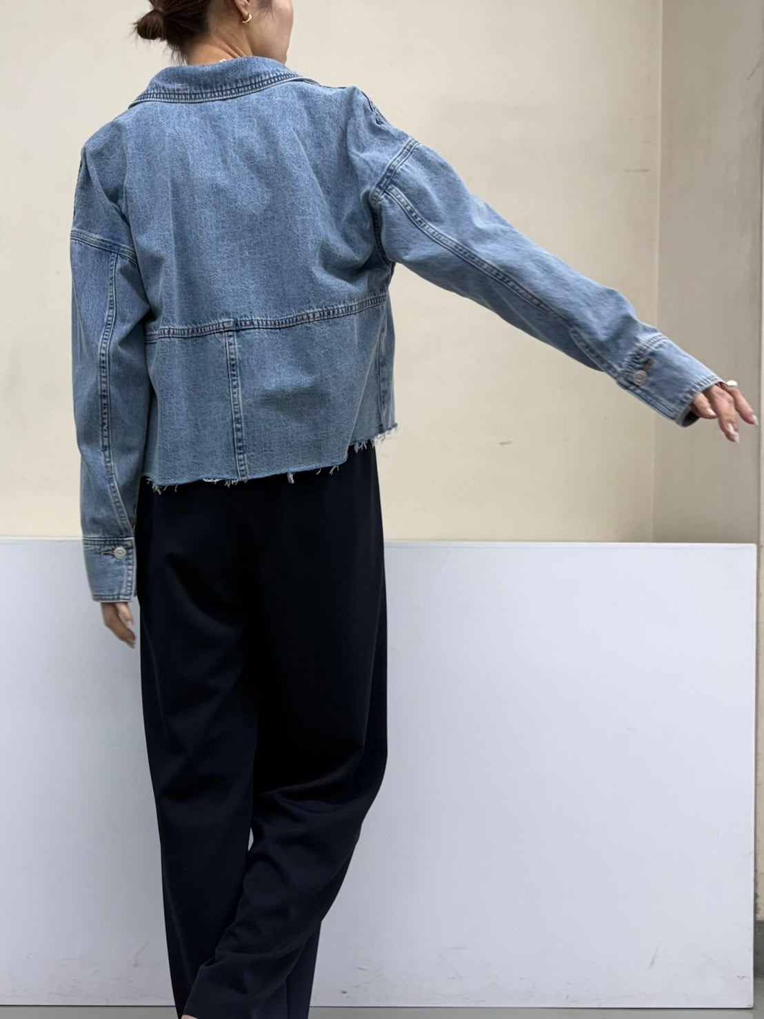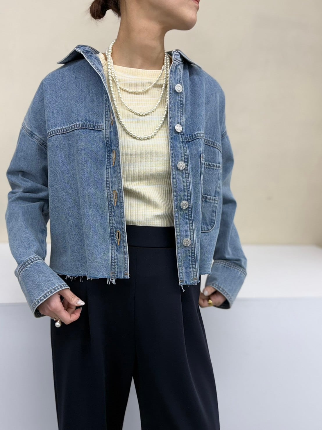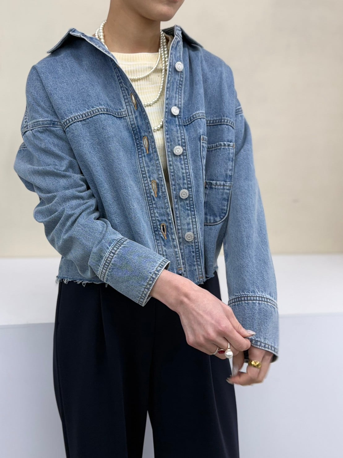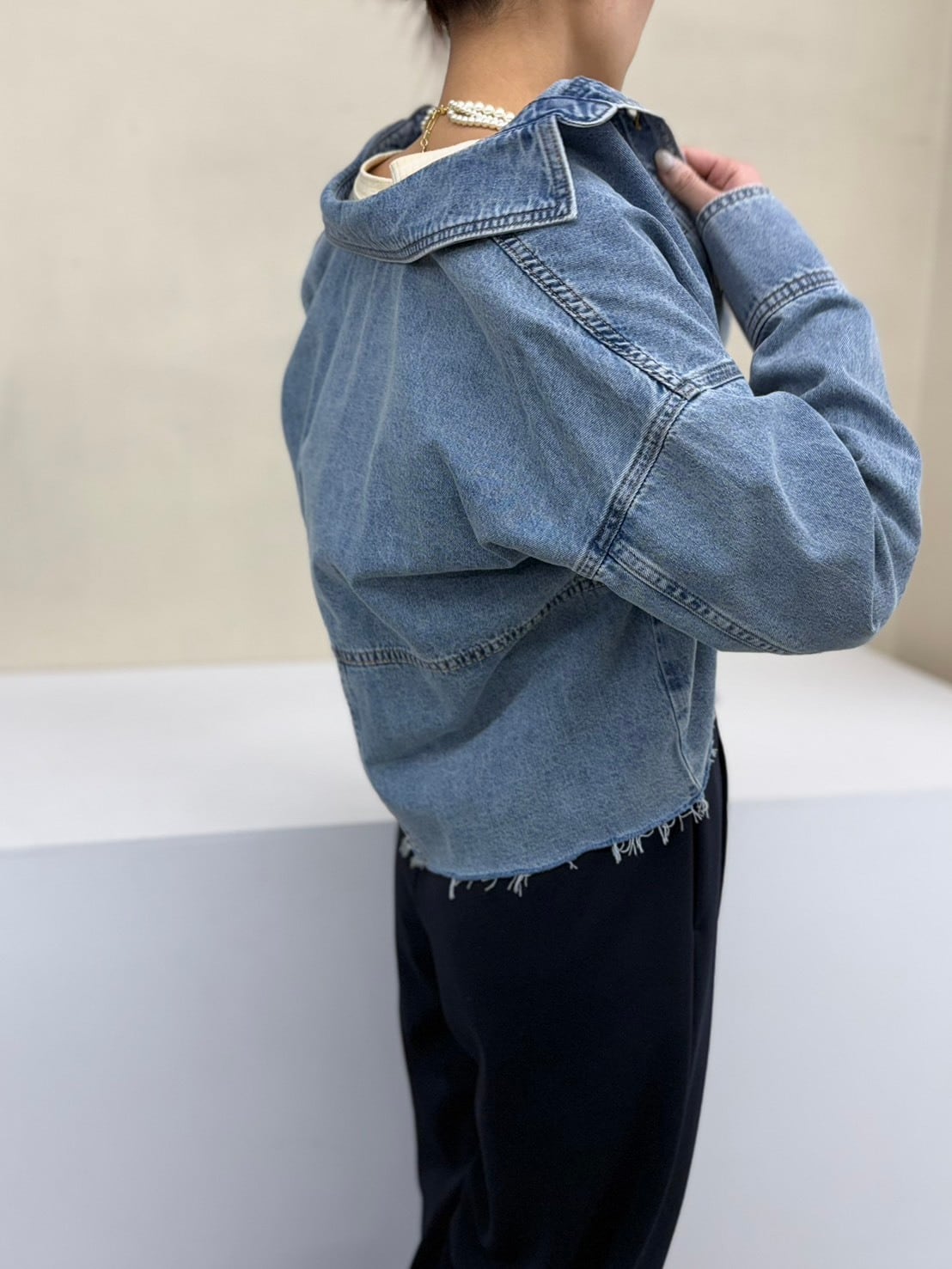 軽やかに着られるクロップドデニムシャツ。