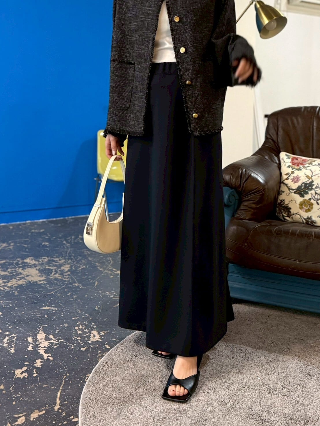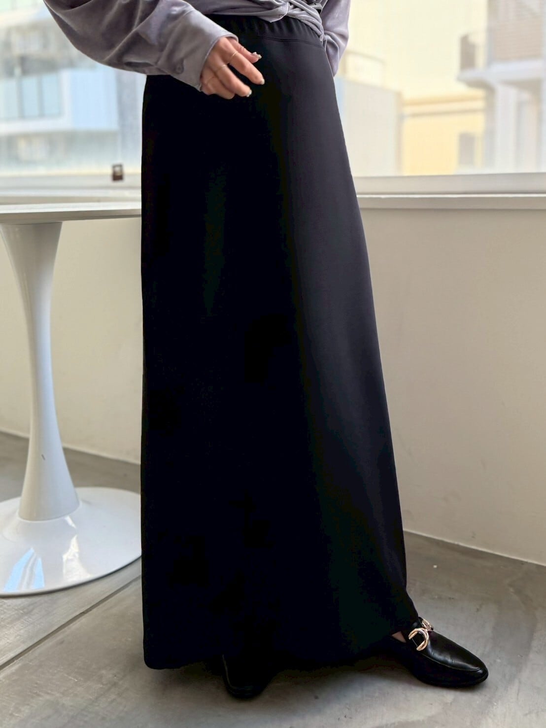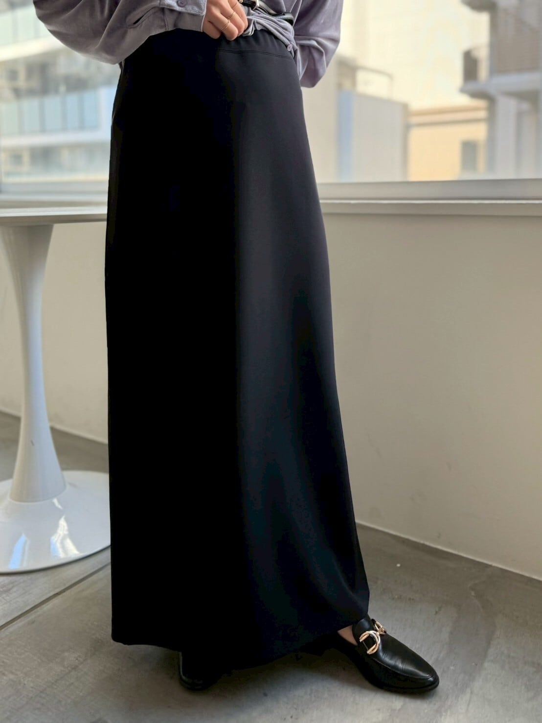 ウエストはゴム仕様でストレスフリー。シンプルなのに、着るだけでちょっと特別な気分になれる、大人カジュアルのマストアイテムです◎