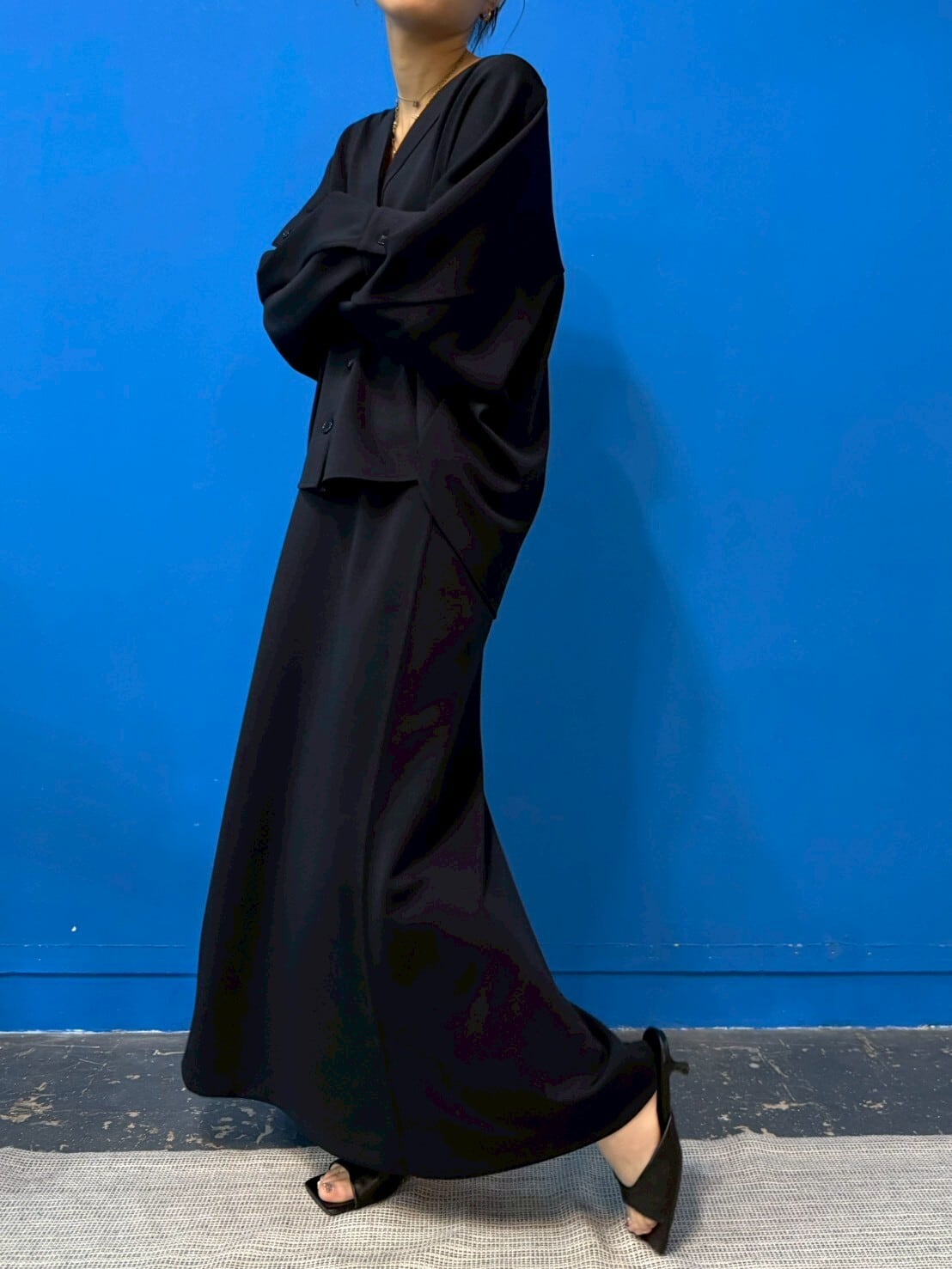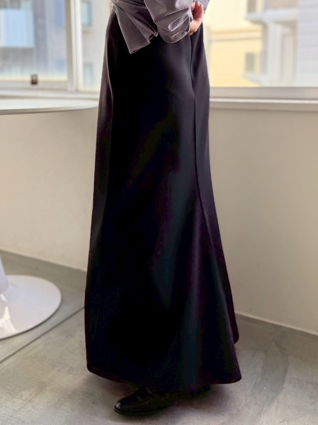 ファンも多いこちらのスカート。新色を交えて再登場!パウダリータッチのジャージ素材で柔らかく、体に心地よくフィット。裾に向かって広がるフレアと後ろタックの揺れが、歩くたびに女性らしさをそっと演出します。