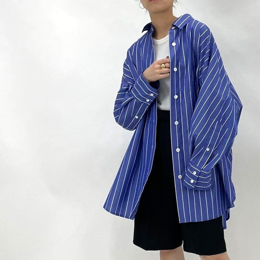 高密度なコットンタイプライターを使用したビッグシャツ。ゆったりとしたサイズ感と長めのスリーブのため、羽織っただけで自然と抜け感が出てこなれた印象を作ってくれます。