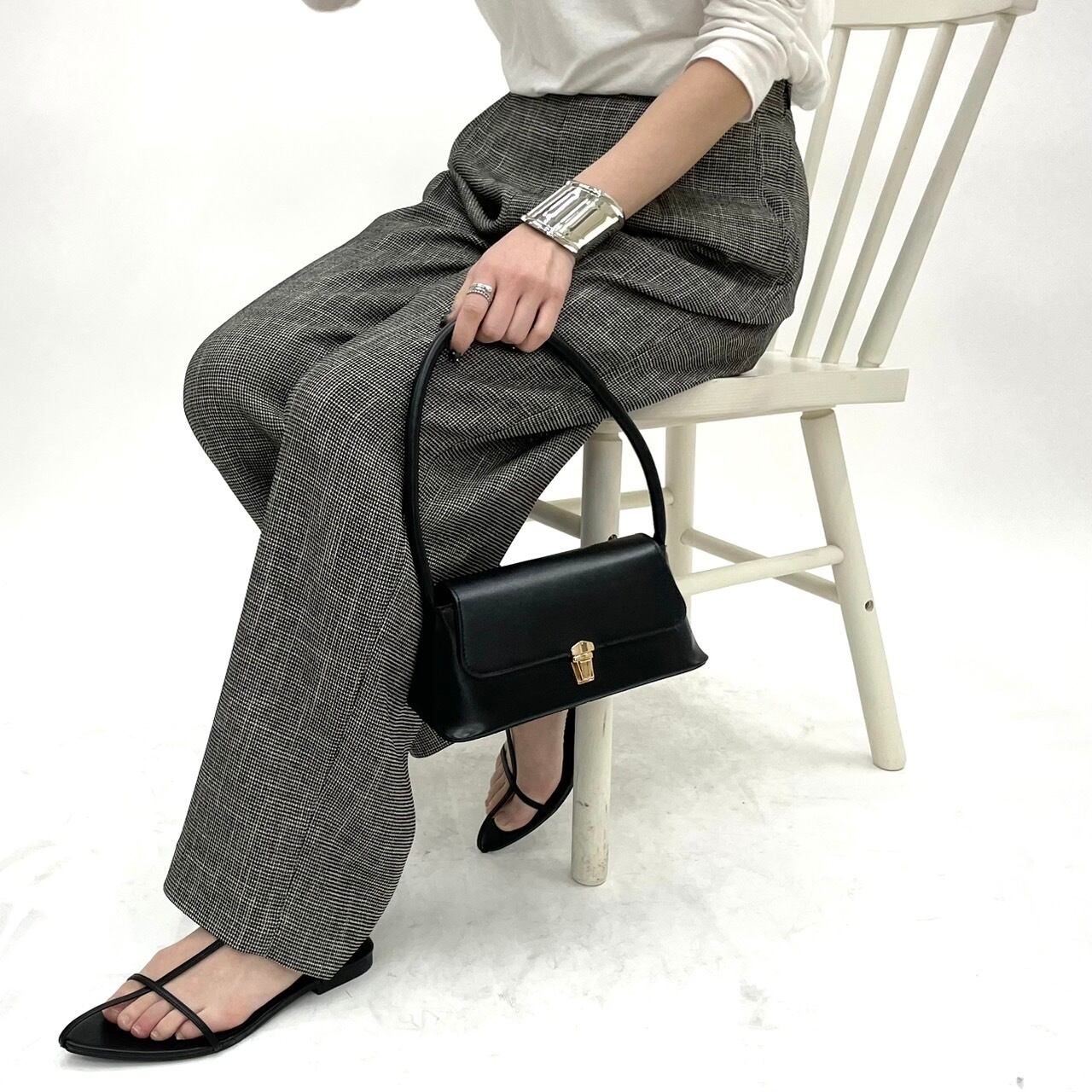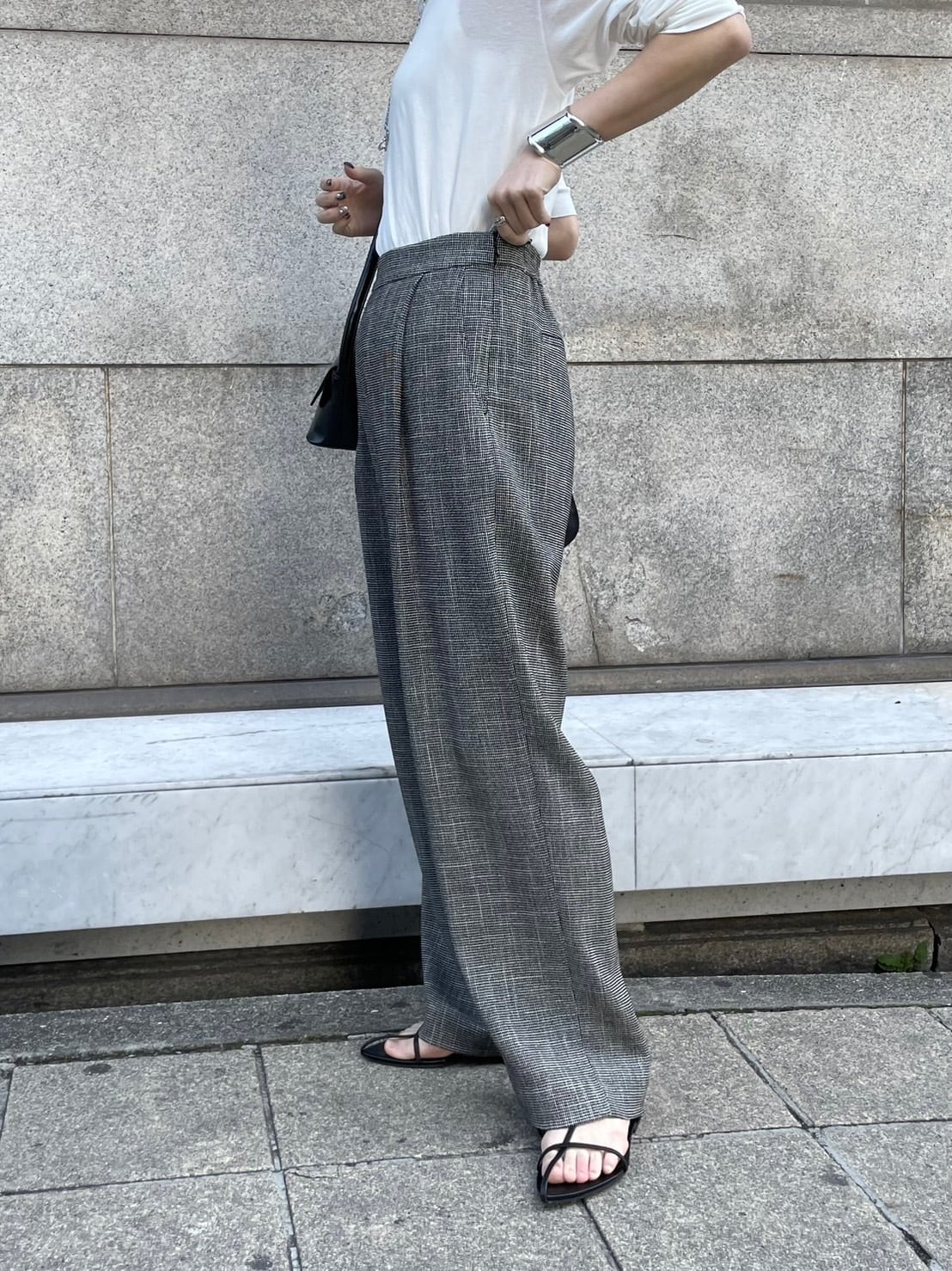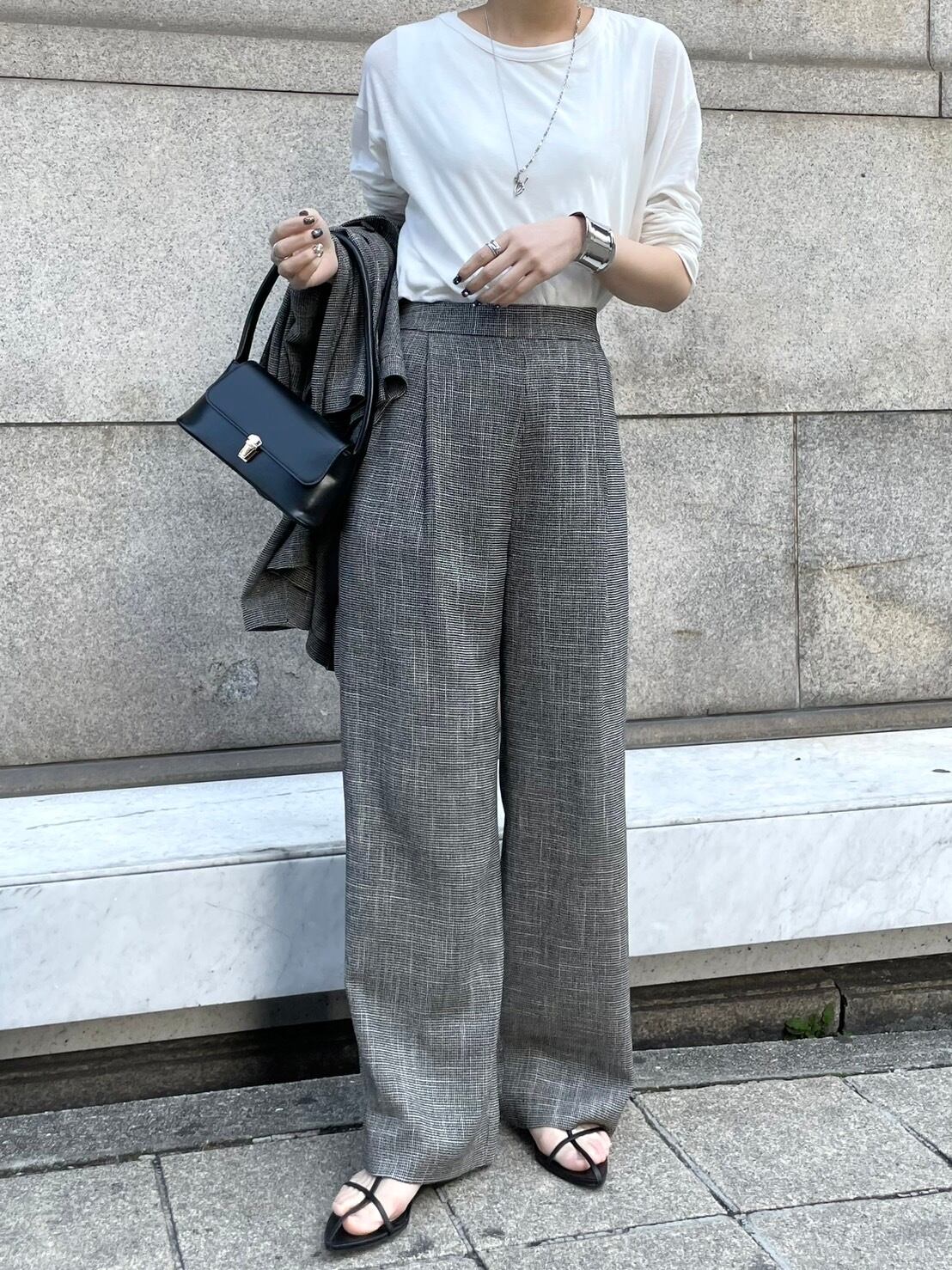 ざっくりと織られた表情のあるカラミ素材を使用したタックパンツ。レーヨンの程よいオチ感で、大人のリラクシーな雰囲気に。ウエストフロント部分はキレイめ見えしながらも、後ろ部分はゴム仕様のため楽な履き心地です。