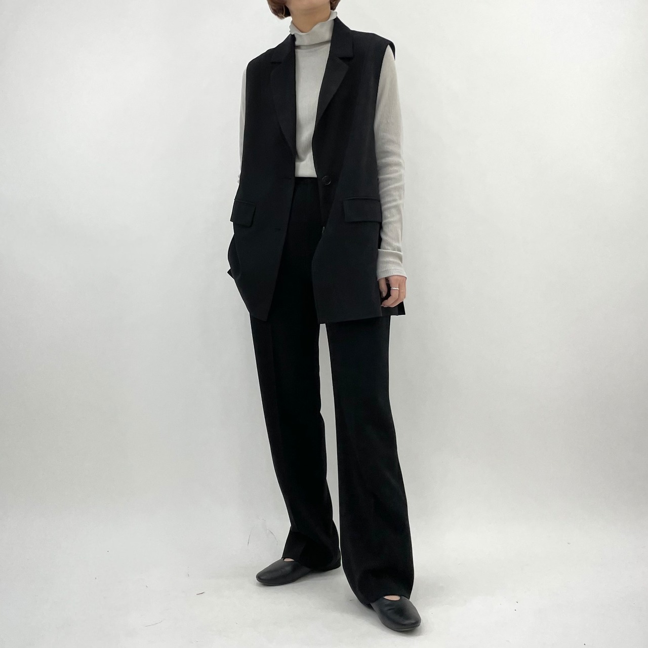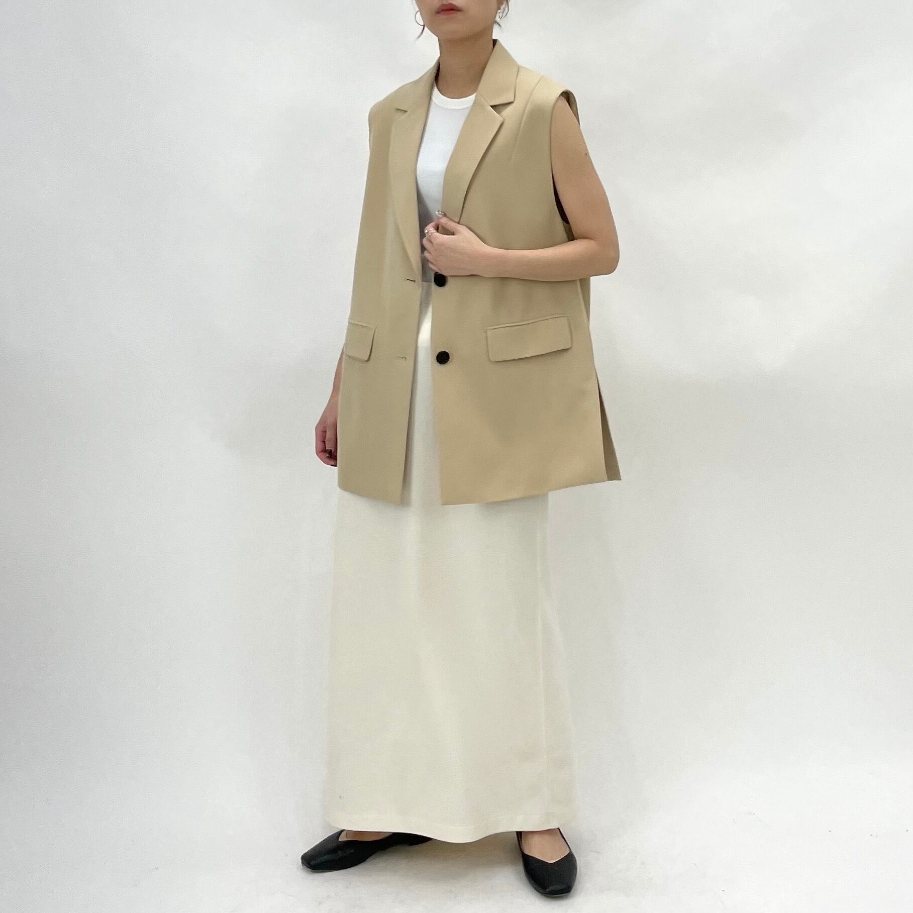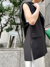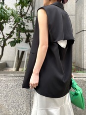 バックスタイルに入ったカットアウトデザインが特徴のテーラードジレ。いつものコーディネートにプラスするだけで印象的なスタイリングに。程良い着丈で合わせるボトムも選びません。裏地付きのため、ロングシーズンお使いいただけます!