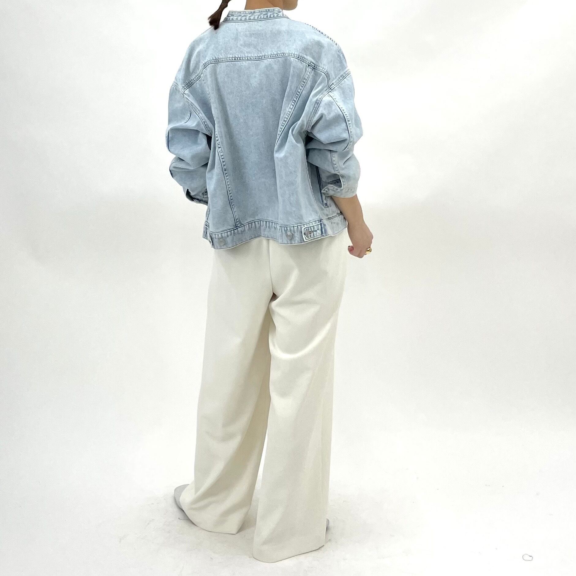 オチ感がありスッキリと綺麗に見えるワイドイージーパンツ。タテ・ヨコに伸縮性のあるさらりとした肌触り。表情のあるアムンゼン生地を使用しており、表はジョーゼット見え、裏はさらっとしたタッチの膨らみのある軽やかで伸縮性抜群のポリエステル素材。シワになりづらくイージーケアなのも◎ウエストはゴム仕様で楽な履き心地です。