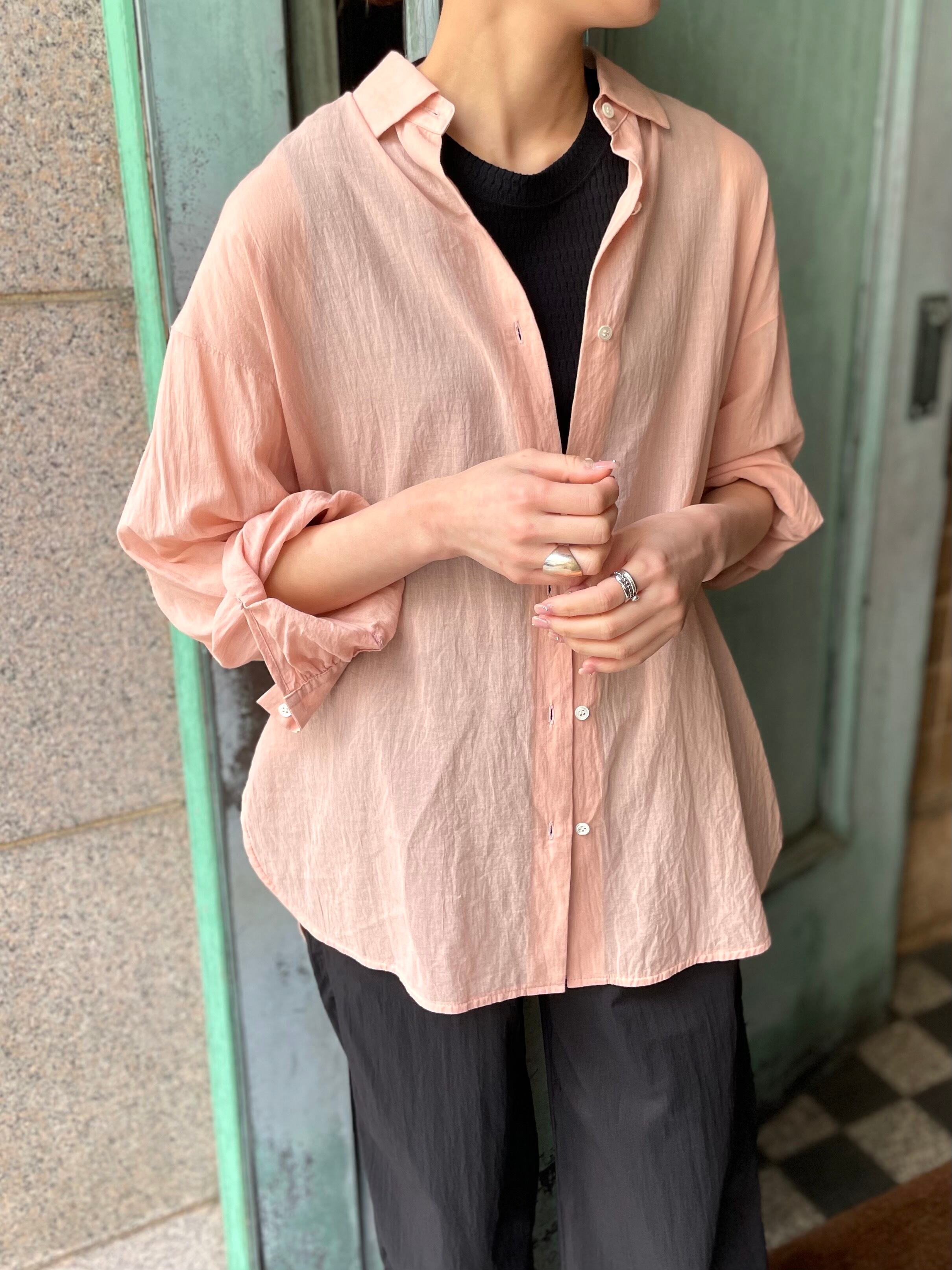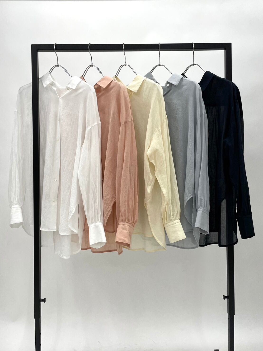 エアリーなコットンボイル素材を使用したベーシックシャツ。ナチュラルなシワが特徴で、適度なオチ感と肌に優しく馴染むソフトな風合いは着心地◎程よいシアーが涼し気な印象。差し色としてプラスワンしたり、トーンを合わせたコーディネートもお洒落。柔らかく優しいカラー展開になっております*