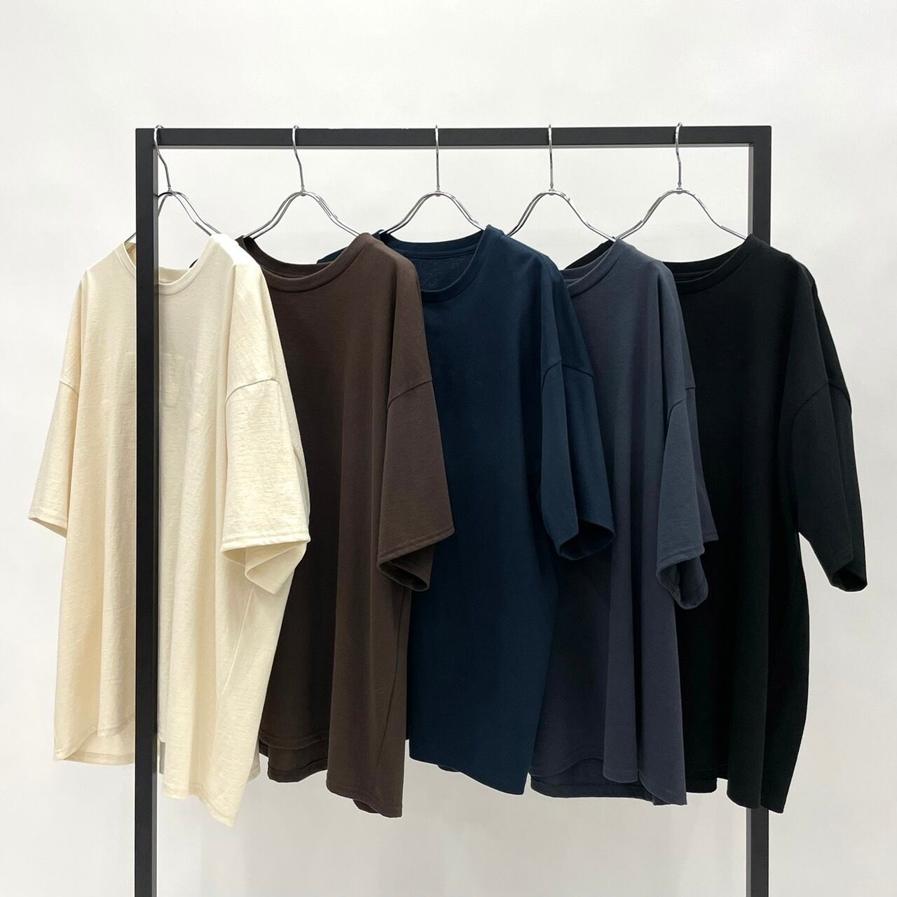 裏使いのボディにロゴプリントを施したワイドTシャツ。なんと表と裏で着⽤できる2way仕様です。(※裏で着用した際、透けやすいお色がございますので写真にてご確認ください)ゆったりとしたリラクシーなサイズながらソフトな⾵合いで、オチ感のある素材のため華奢⾒えしてくれます。cafuneで人気のタイトスカートやノースリーブワンピースの上から合わせるコーディネートもオススメです♪