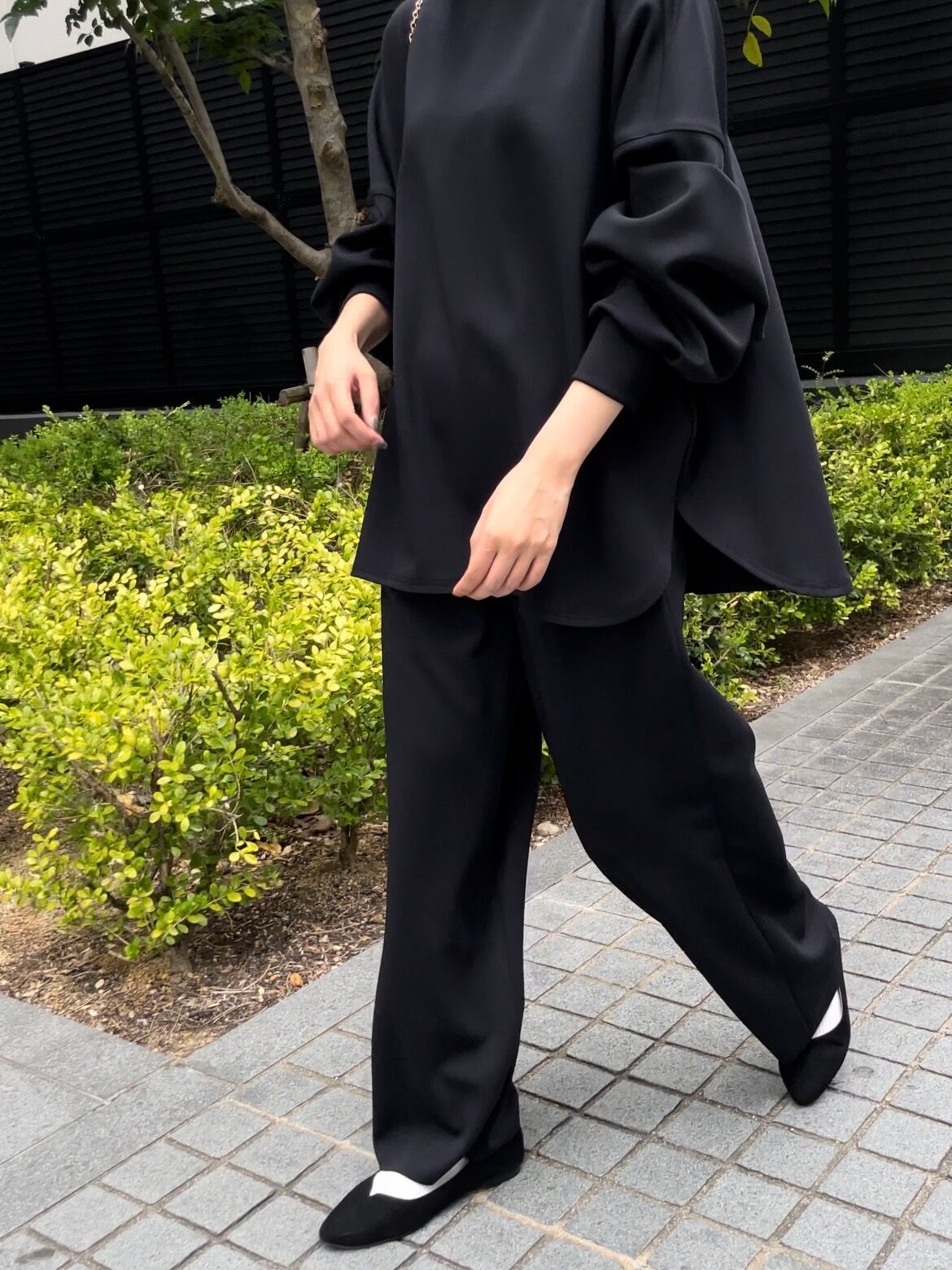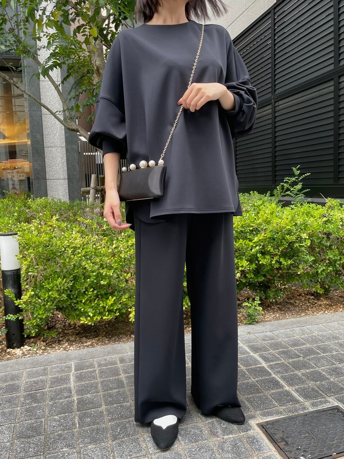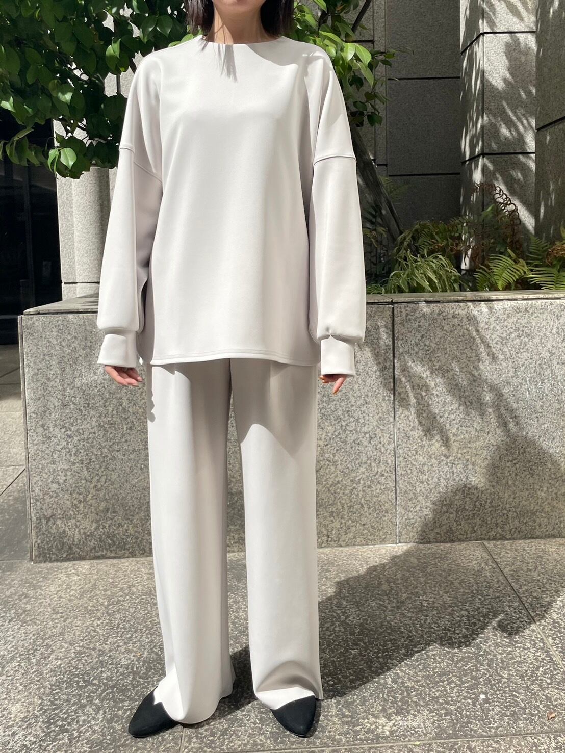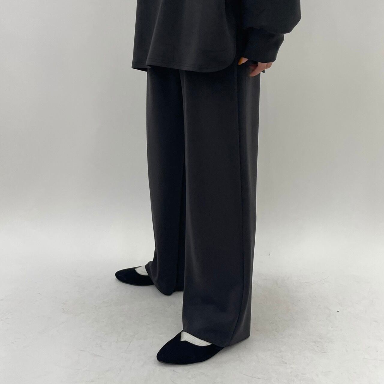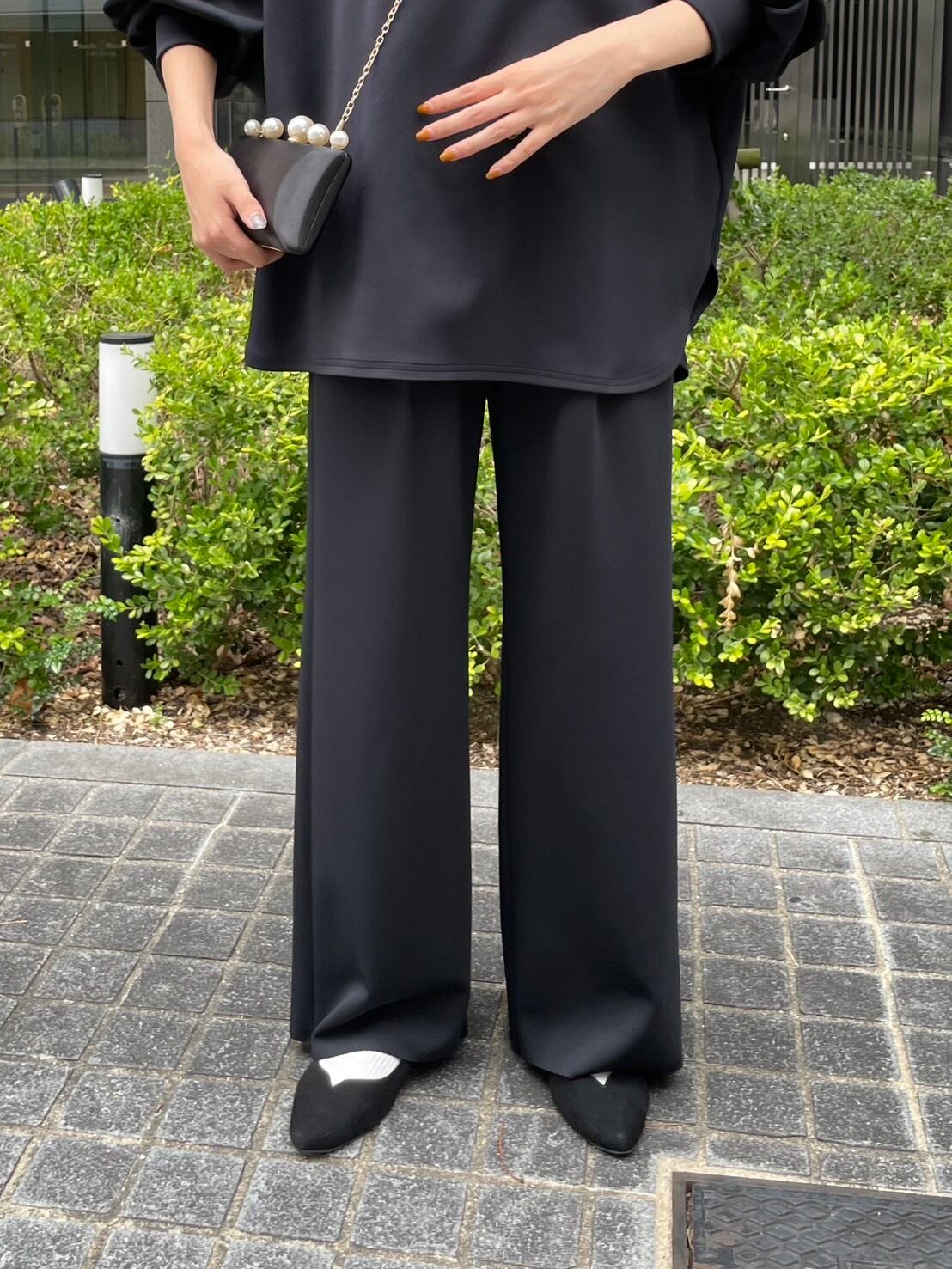 肌離れが良くさらっとしたジャージ素材を使⽤したワイドイージーパンツ。上品な光沢とドレープでエレガントな仕上がりに♪フロントに⼊ったタックがウエスト周りをすっきりとした印象にしてくれます。真っすぐ落ちるストレートなシルエットが脚を⻑く綺麗に⾒せてくれるデイリー使いにぴったりな⼀枚です☺︎