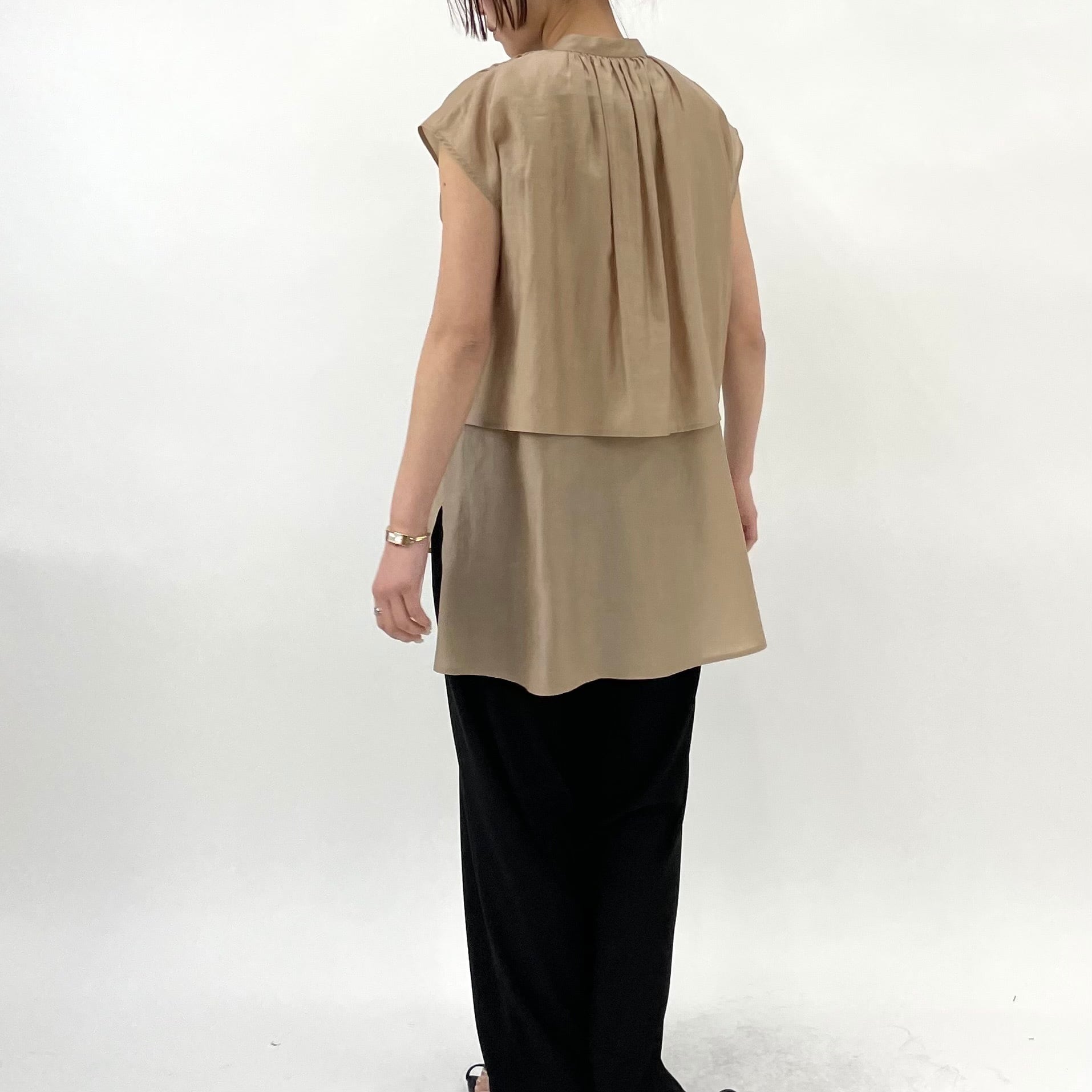 程よい透け感と光沢が美しくリヨセルの質感が肌触りの良いブラウス。2枚仕⽴てに仕上げたデザインが歩く度に揺れ動き⼥性らしい印象に。下の部分をインして上の部分を出すスタイルがこなれ感たっぷりな印象に୨୧˖*少し光沢のある素材でとても上品に魅せてくれます。肩先にかかるフレンチスリーブのため気になる⼆の腕もカバーしてくれます◎
