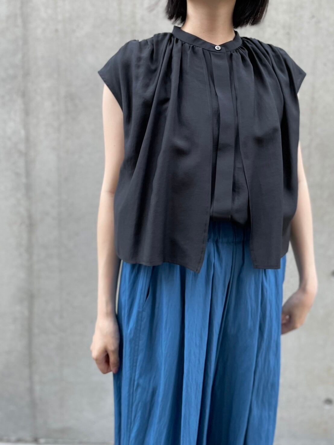 sheer shiny gather blouse