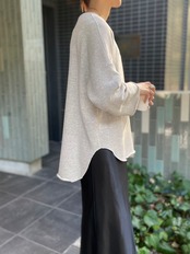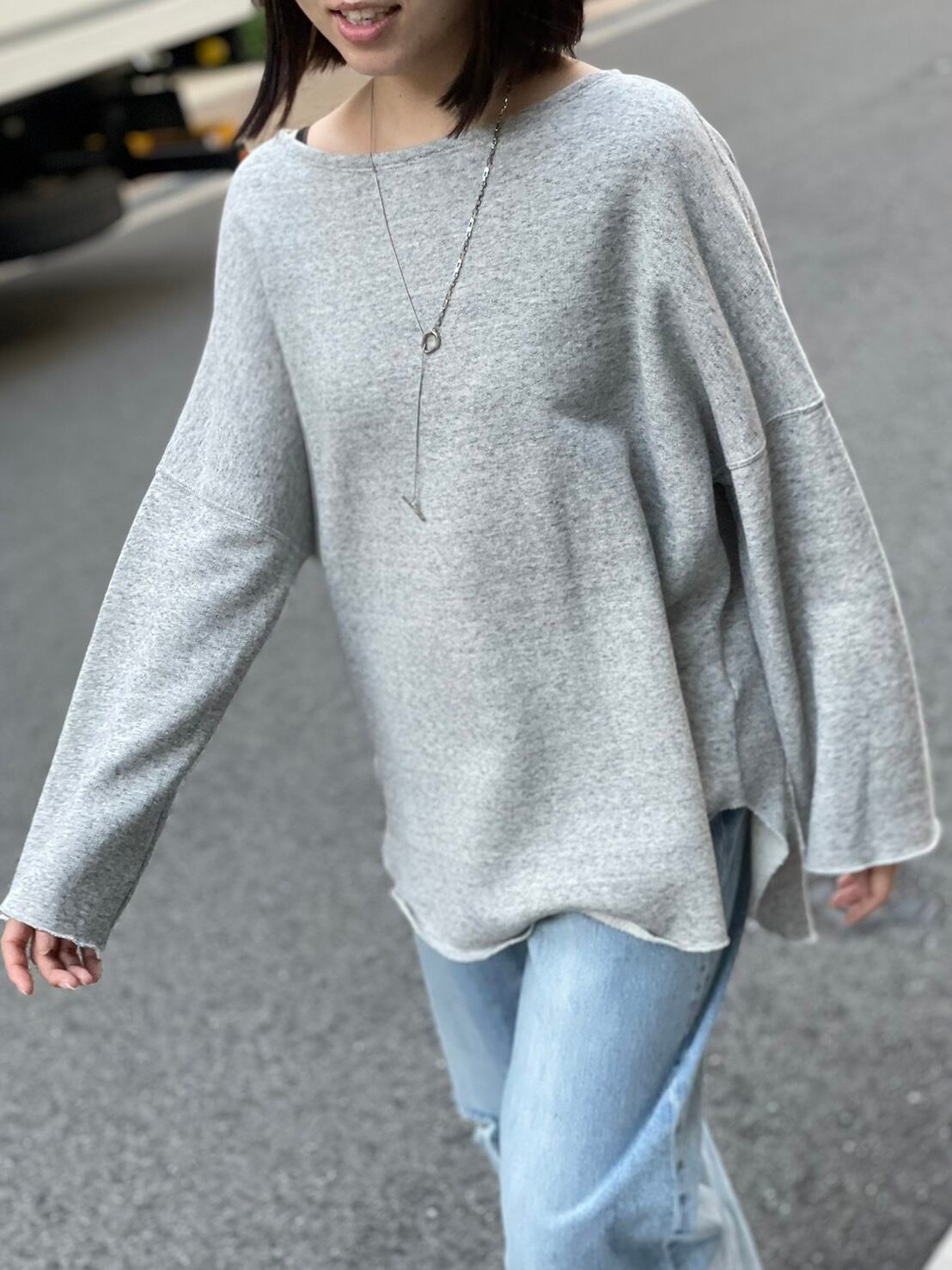 ゆったりとしたサイジングで程よい抜け感をプラスしてくれるスウェットプルオーバー。コットンリヨセルの粗挽き杢を使⽤し柔らかな⾵合い・膨らみなどを追求した差別化素材を使⽤!パンツはもちろんスカートと合わせた⼥性らしいスタイリングもオススメ◎早めの時期から着れる一枚です♪