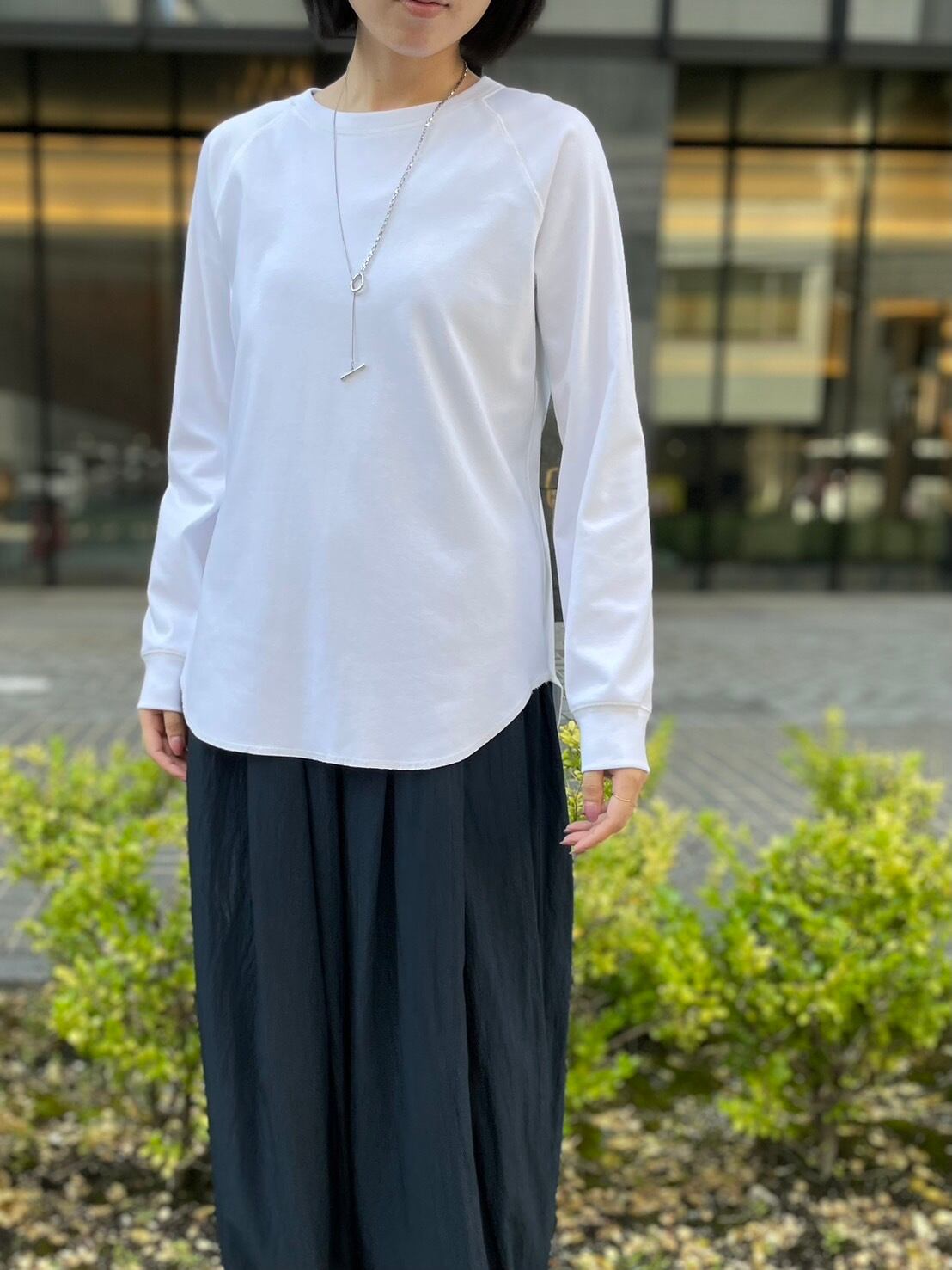 ⼀枚でもレイヤードにもおすすめのロングTシャツ。ストレッチ性に優れたソフトな⾵合いの滑らかな肌触りの素材でとにかく気持ちの良い着⼼地です♪ラグランスリーブのクルーネックでシンプルながらもカジュアルスタイルにもきれいめにも活躍してくれる⼀枚。季節を問わず何かと使える万能アイテムです◎