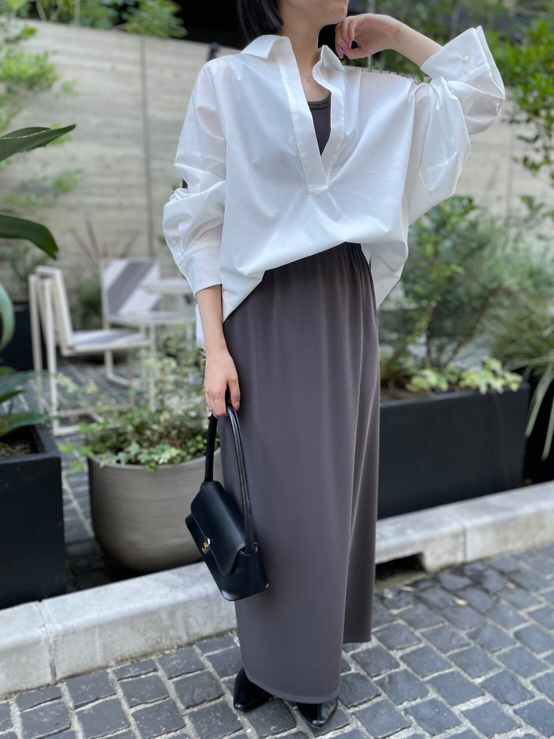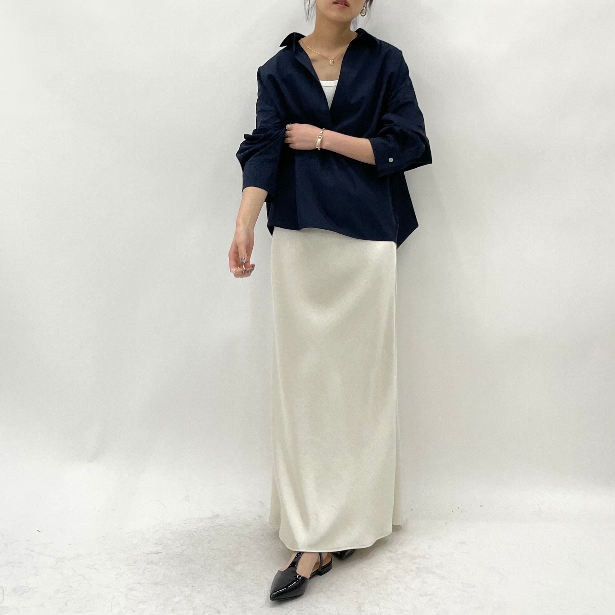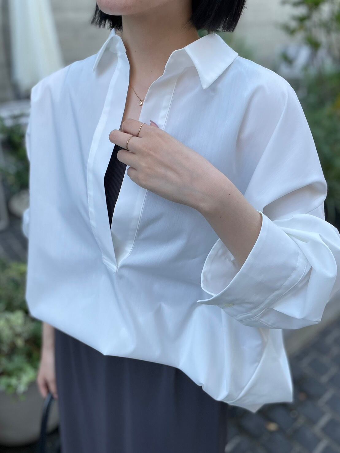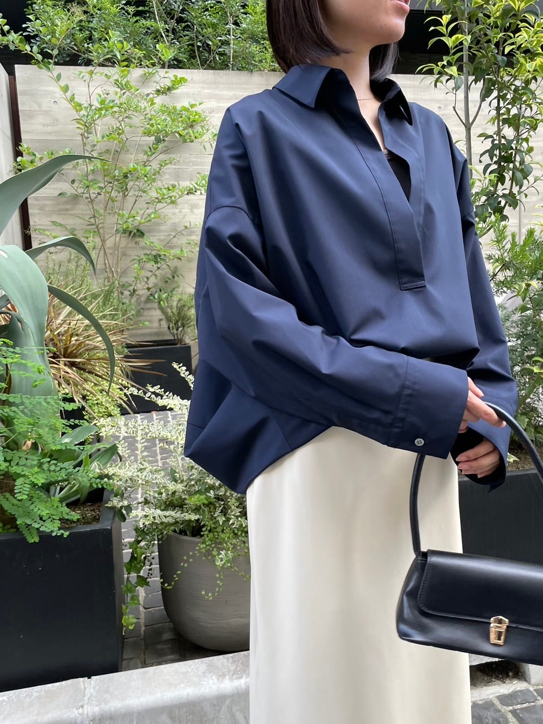 着映え感のあるスキッパーブラウス。フォルムが綺麗に出るよう程よいハリとオチ感を併せ持ったシャープな素材を使⽤した⼥性らしいシルエットの⼀枚✨微光沢とストレッチ性もある上質な素材は、シワにもなりづらくイージーケア◎ベーシックなアイテムながらも素材とフォルムにこだわった⼀枚はこの秋活躍すること間違いなし!