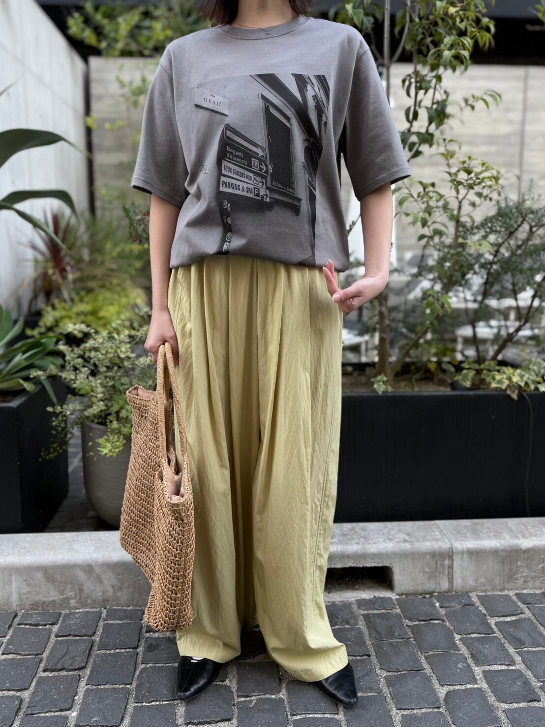 ⼤⼈が着やすいフォトTシャツ。薄⼿のソフトでオチ感のある素材でラフになりすぎないキレイめの仕上がりです!さりげなくcafuneロゴのプリントも!シックな配⾊なのでコーディネートに取り⼊れやすく着回し⼒坂群のアイテム。