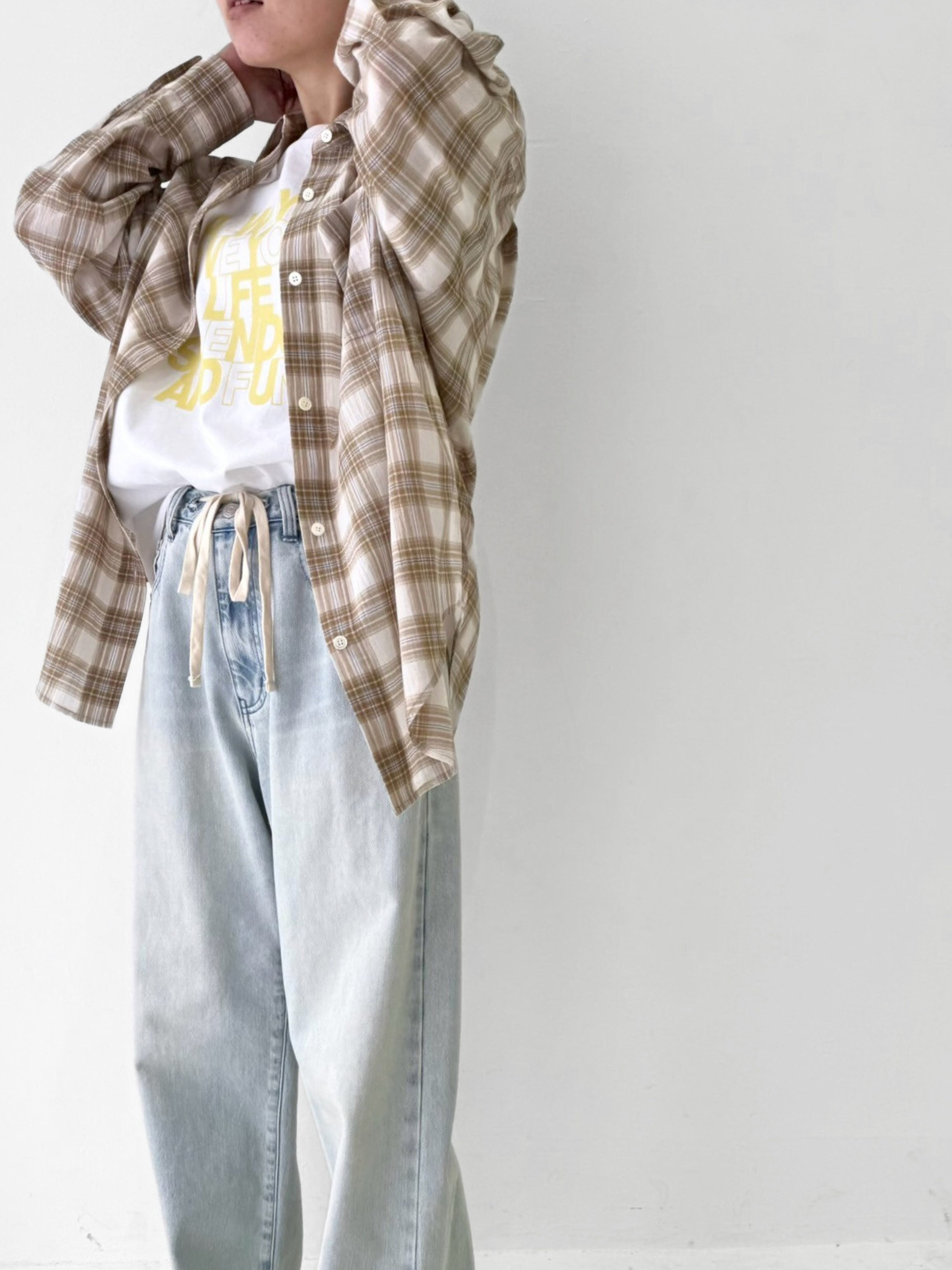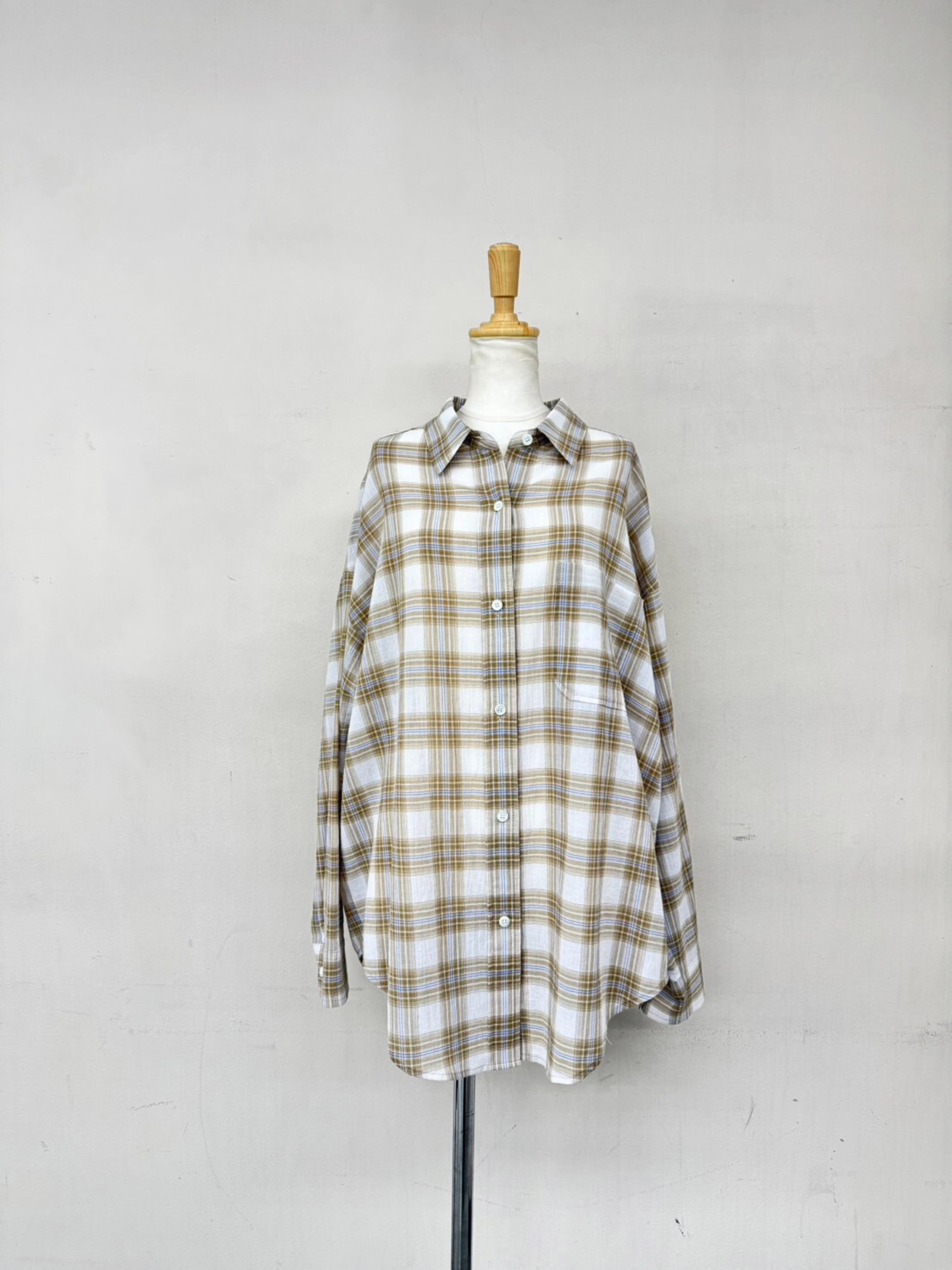 エアリーなコットンボイルチェック素材を使⽤したベーシックシャツ✽適度なオチ感と肌に優しく馴染むソフトな⾵合いで着⼼地◎シンプルなコーディネートのアクセントになってくれる取り入れやすいチェック柄です。シワになりづらいため暑い日の羽織として、持ち運びしやすいのも嬉しいポイント♪